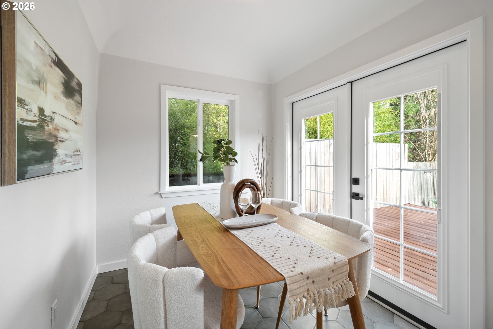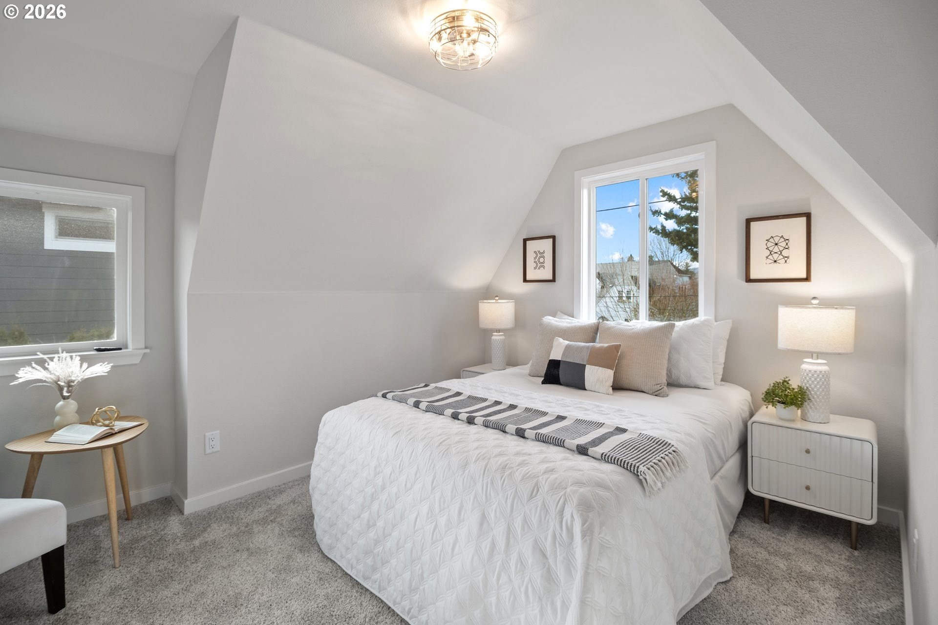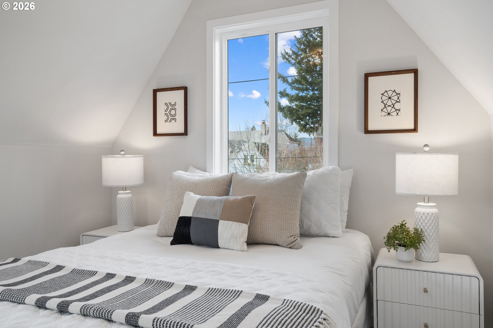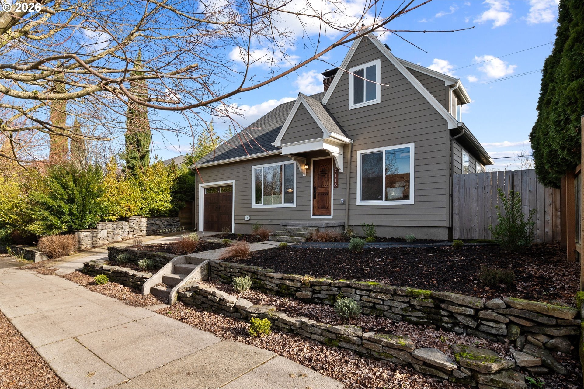 Beautifully remodeled top-to-bottom 1930s English Tudor in the heart of Arbor Lodge. Classic charm meets high-end modern updates, plus rare potential for an ADU or lot split with separate street access on N Villard Ave. The main level features newly installed hardwood floors, solid core doors with crystal knobs, and a brand-new kitchen with tiled flooring, farmhouse sink, granite countertops, stainless steel appliances, and an open layout to the dining room. Step out to the expansive back deck-ideal for gatherings or quiet evenings. Two bedrooms and a fully updated bathroom complete the main floor. Upstairs offers a bright family room with skylight and a spacious primary suite with en-suite bath and closet storage. The super-clean basement provides abundant storage and a dedicated laundry area, with room to expand if desired. A one-car garage with tall ceilings and a quiet-open door adds convenience and extra storage options. Located in a fantastic neighborhood just about a mile from New Seasons, four blocks to Arbor Lodge Park, and roughly 12 minutes to downtown Portland, this home delivers charm, comfort, and opportunity in one of North Portland's most desirable communities. See our virtual tour links for more information! [Home Energy Score = 3. HES Report