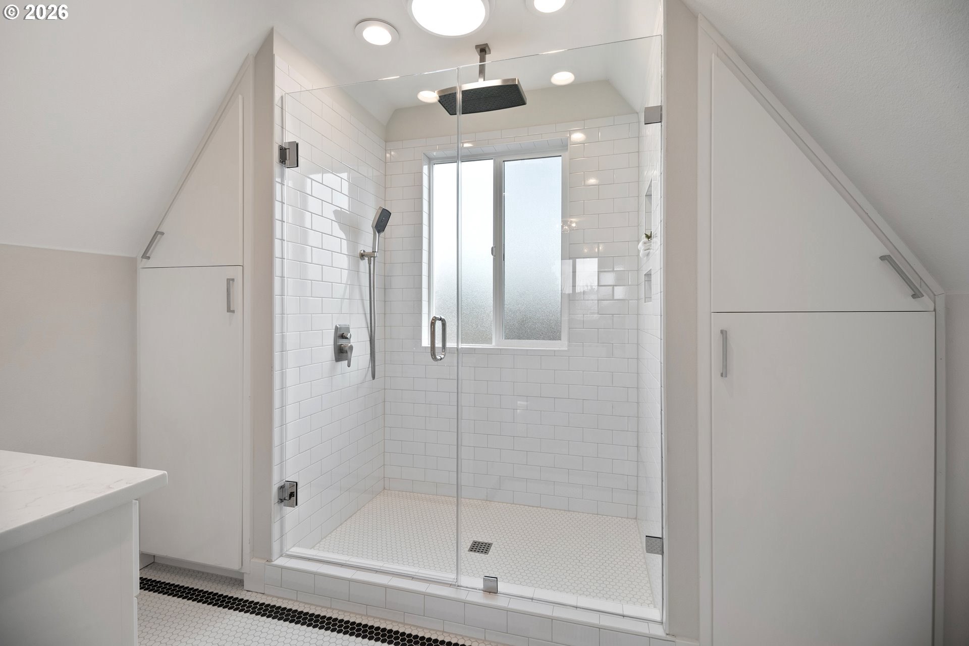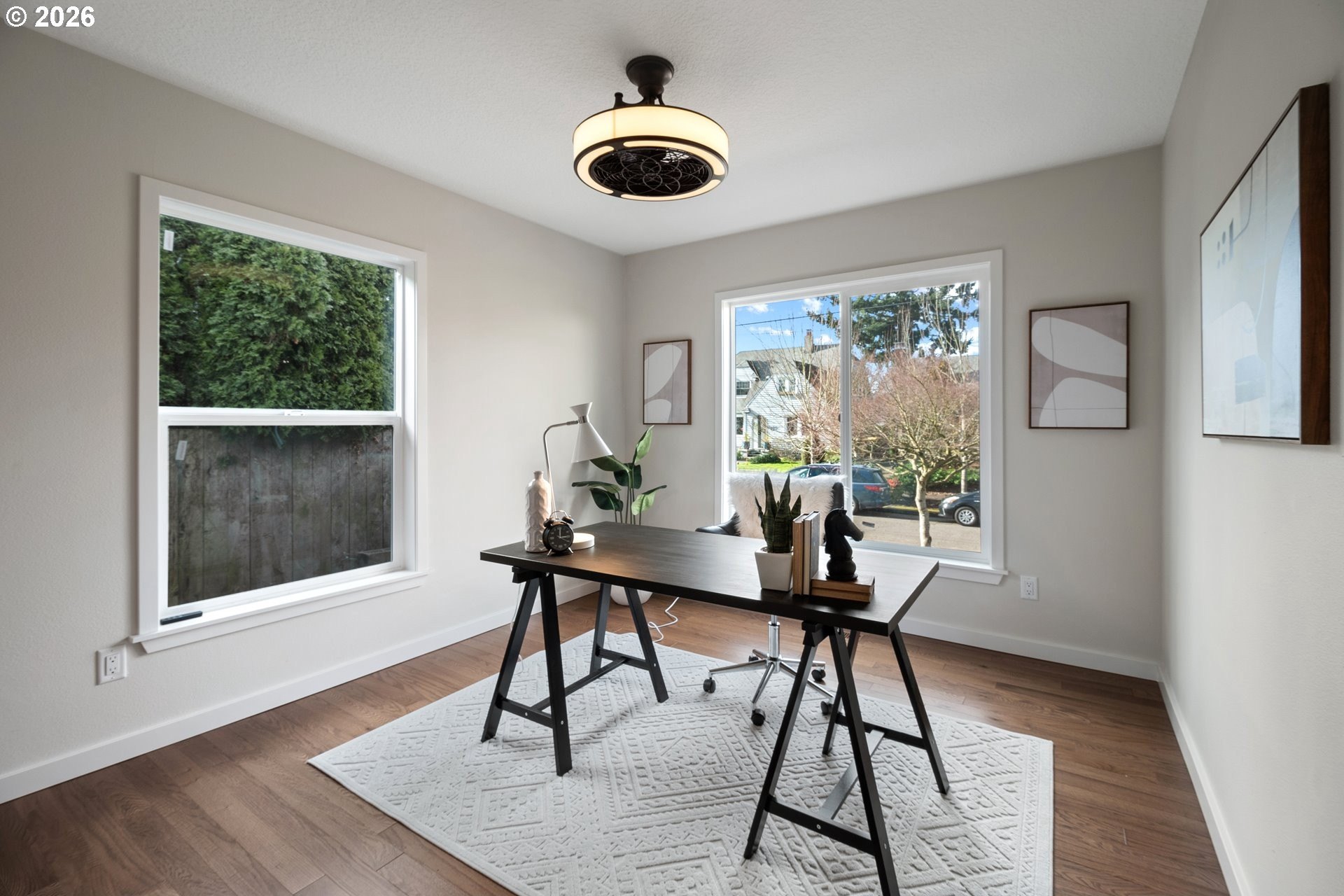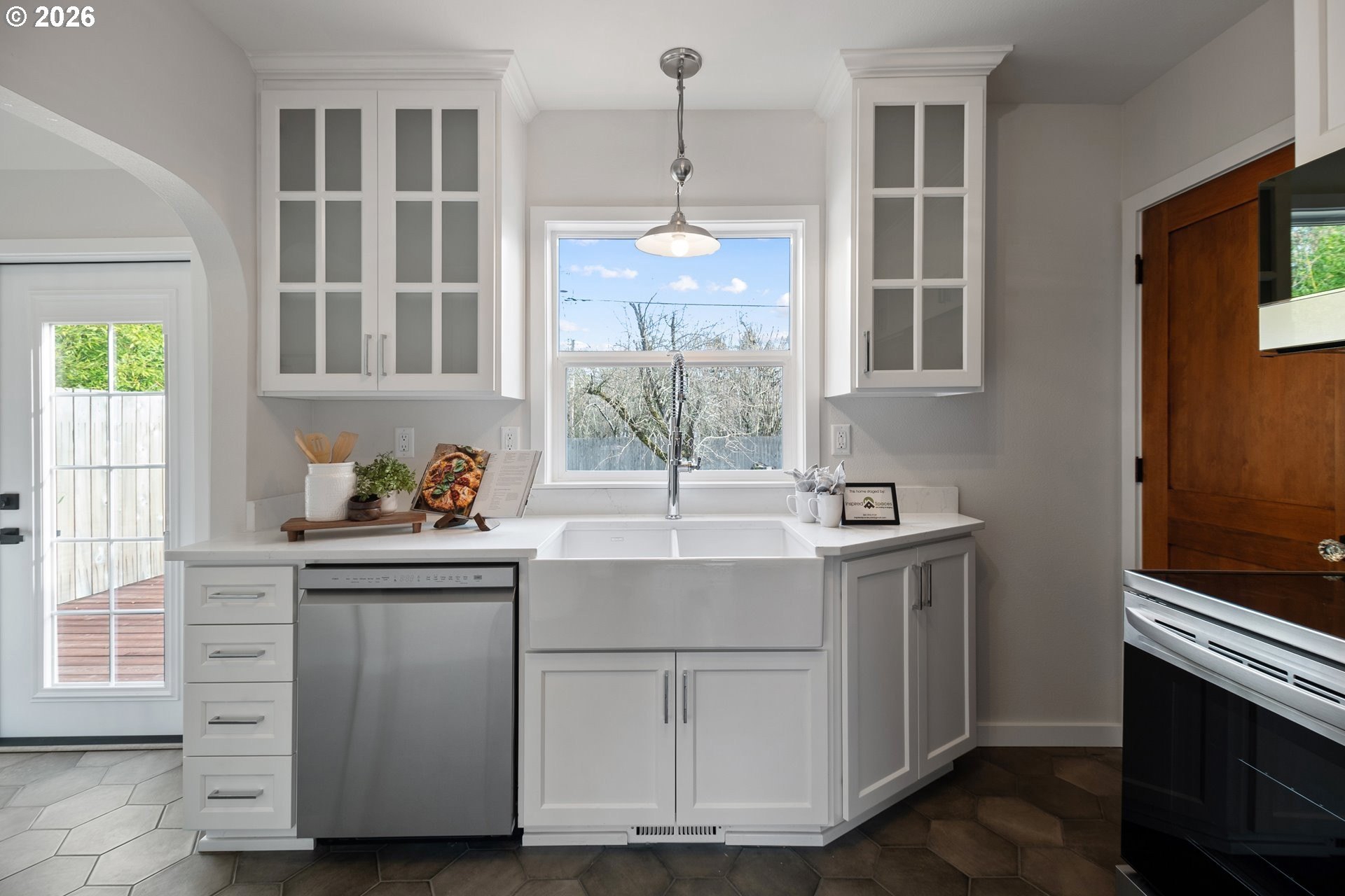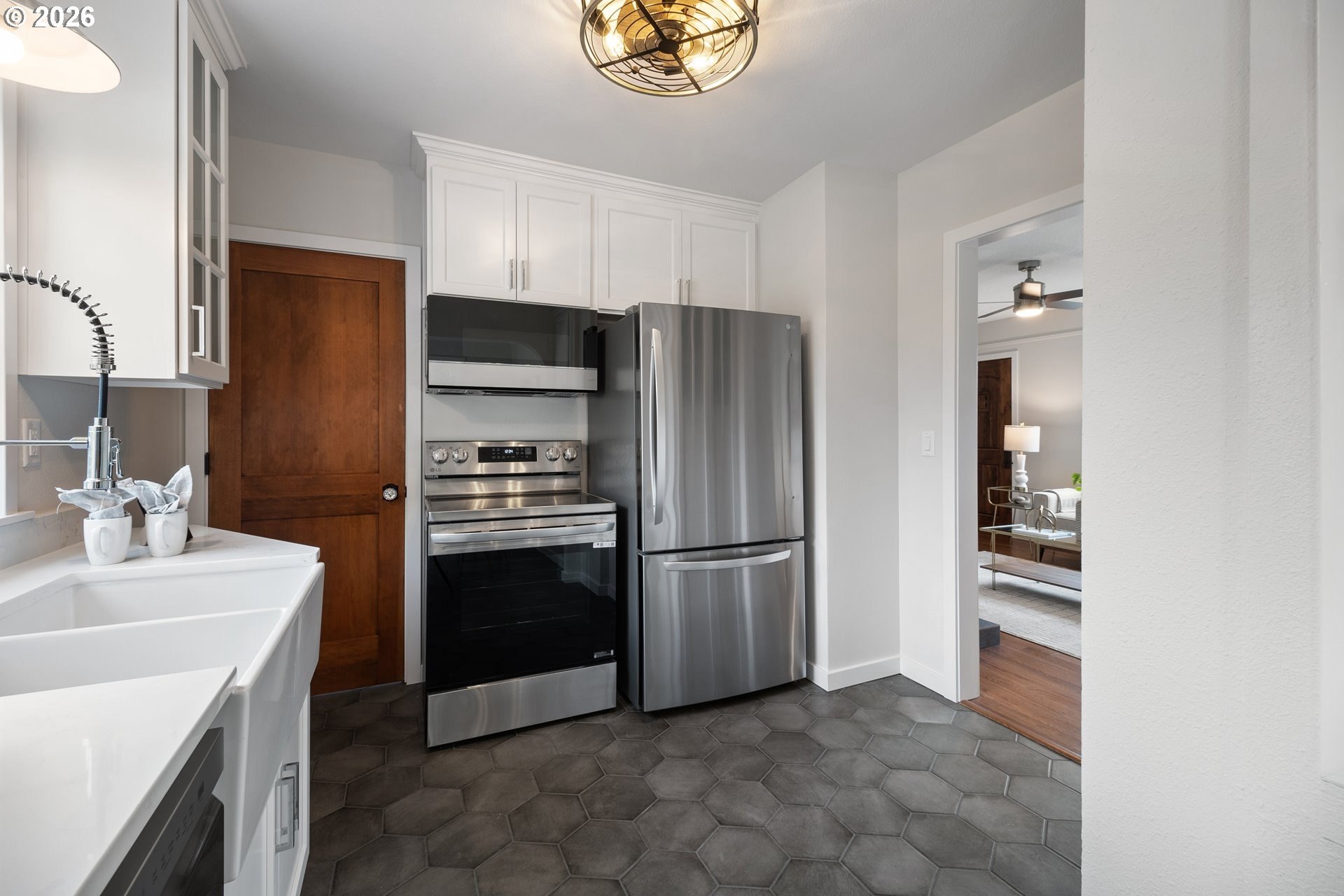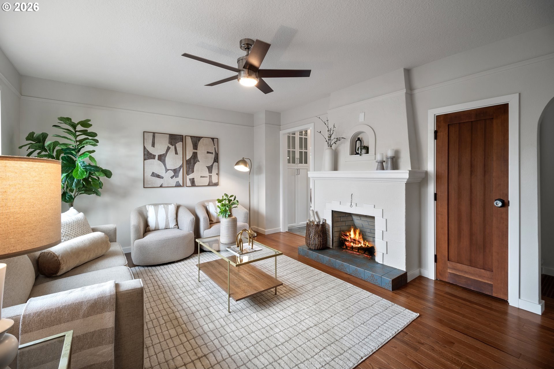 Beautifully remodeled top-to-bottom 1930s English Tudor in the heart of Arbor Lodge. Classic charm meets high-end modern updates, plus rare potential for an ADU or lot split with separate street access on N Villard Ave. The main level features newly installed hardwood floors, solid core doors with crystal knobs, and a brand-new kitchen with tiled flooring, farmhouse sink, granite countertops, stainless steel appliances, and an open layout to the dining room. Step out to the expansive back deck-ideal for gatherings or quiet evenings. Two bedrooms and a fully updated bathroom complete the main floor. Upstairs offers a bright family room with skylight and a spacious primary suite with en-suite bath and closet storage. The super-clean basement provides abundant storage and a dedicated laundry area, with room to expand if desired. A one-car garage with tall ceilings and a quiet-open door adds convenience and extra storage options. Located in a fantastic neighborhood just about a mile from New Seasons, four blocks to Arbor Lodge Park, and roughly 12 minutes to downtown Portland, this home delivers charm, comfort, and opportunity in one of North Portland's most desirable communities. See our virtual tour links for more information! [Home Energy Score = 3. HES Report