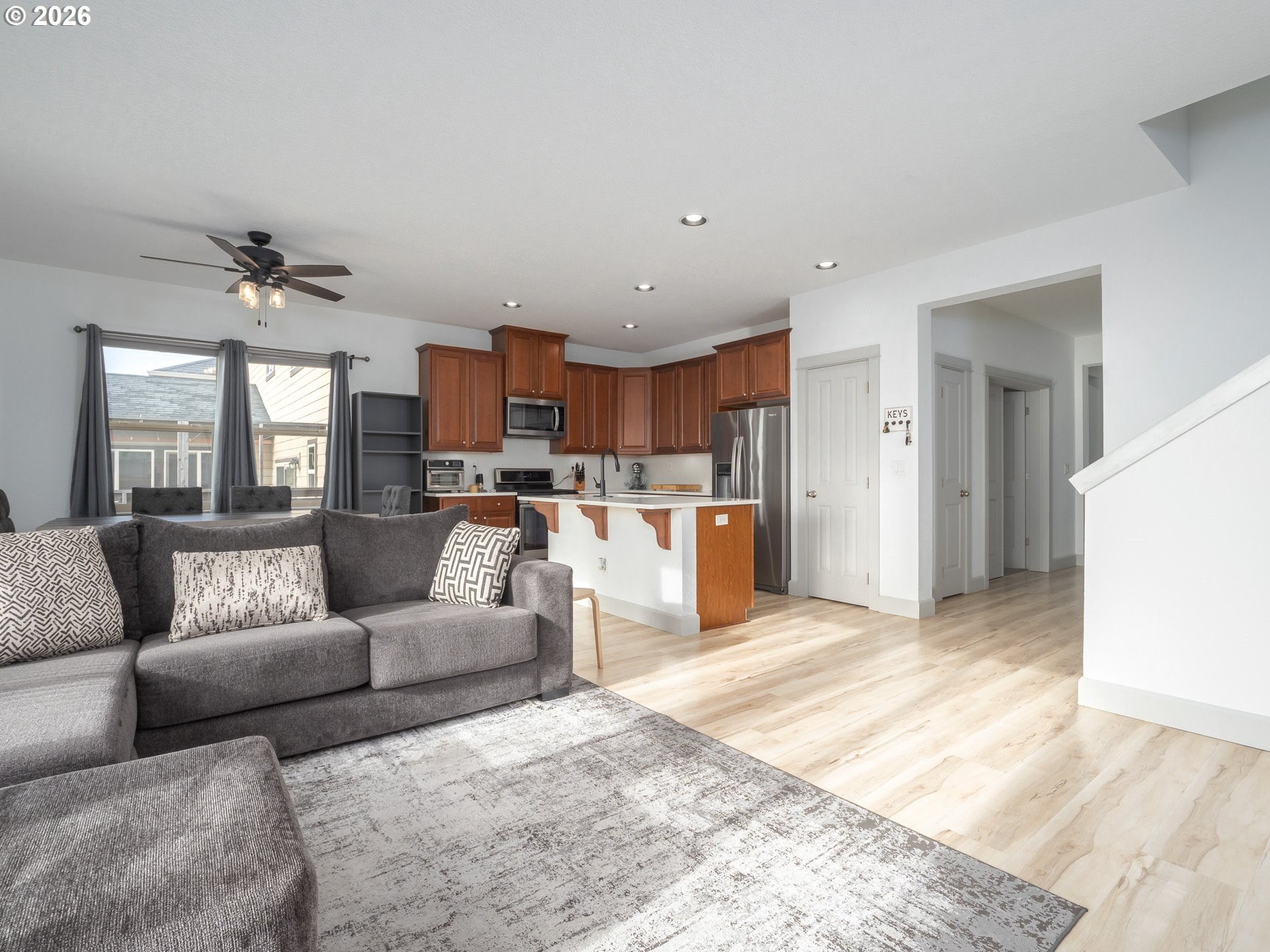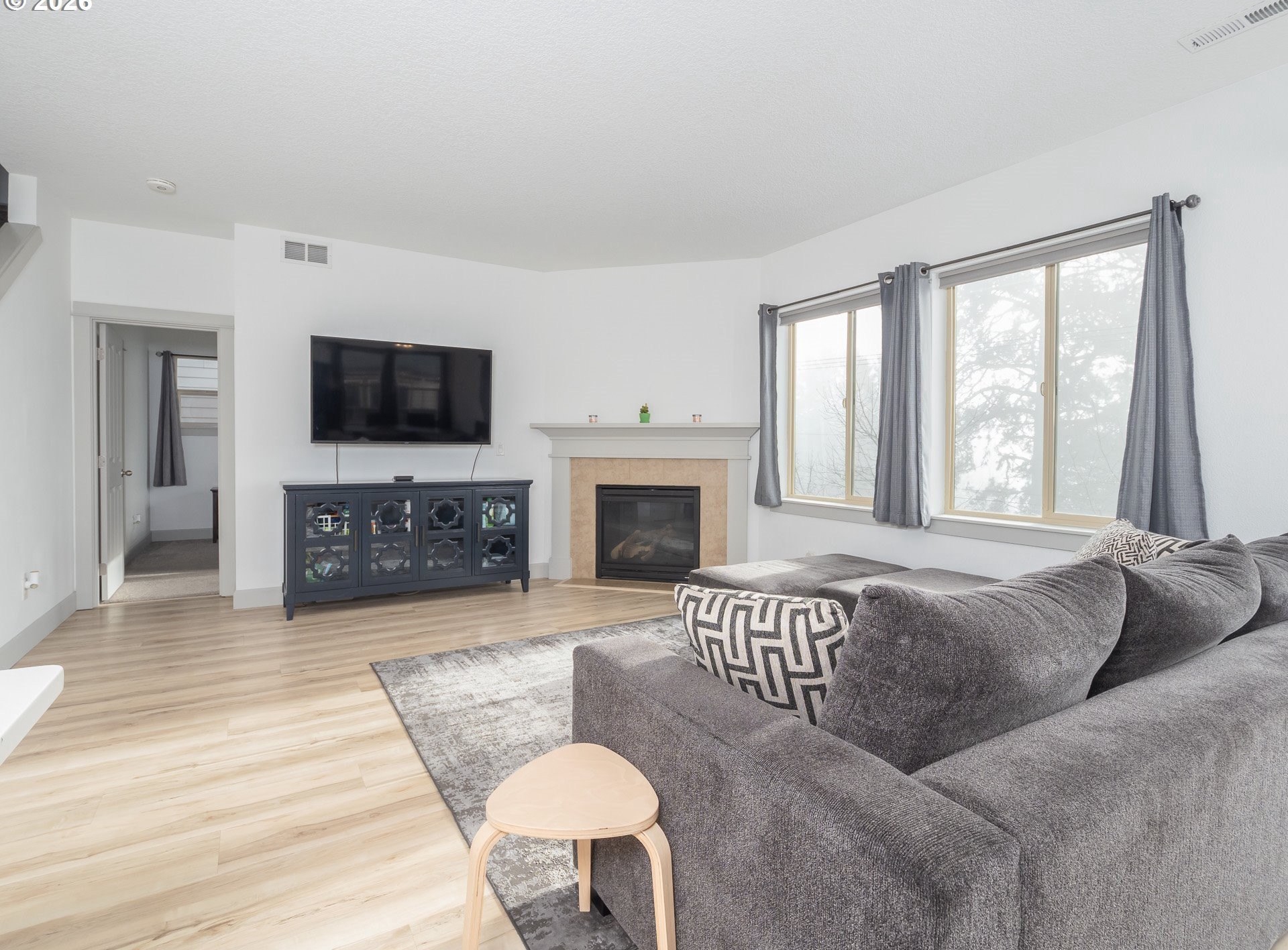 Incredible opportunity to assume a 3.625% FHA mortgage and save thousands in your mortgage payment. Beautifully maintained Bull Mountain home with sweeping territorial and valley views! Exceptional, flexible floor plan featuring primary suite on the main level plus second bedroom, full bath, and den-ideal for guests, multi-generational living, or home office. Light and bright great-room layout with gas fireplace flows into open kitchen with island, pantry, stainless appliances, and gas range. Dining area opens to deck-perfect for entertaining and enjoying sunsets. Upstairs offers two additional bedrooms and a huge bonus room for media, play, or second living space. Level, terraced backyard is fully usable. Owned solar panels provide major energy savings. Move-in ready with A/C, attached 2-car garage, and low-maintenance landscaping. Fantastic Bull Mountain location near shopping, dining, and easy commuter routes.