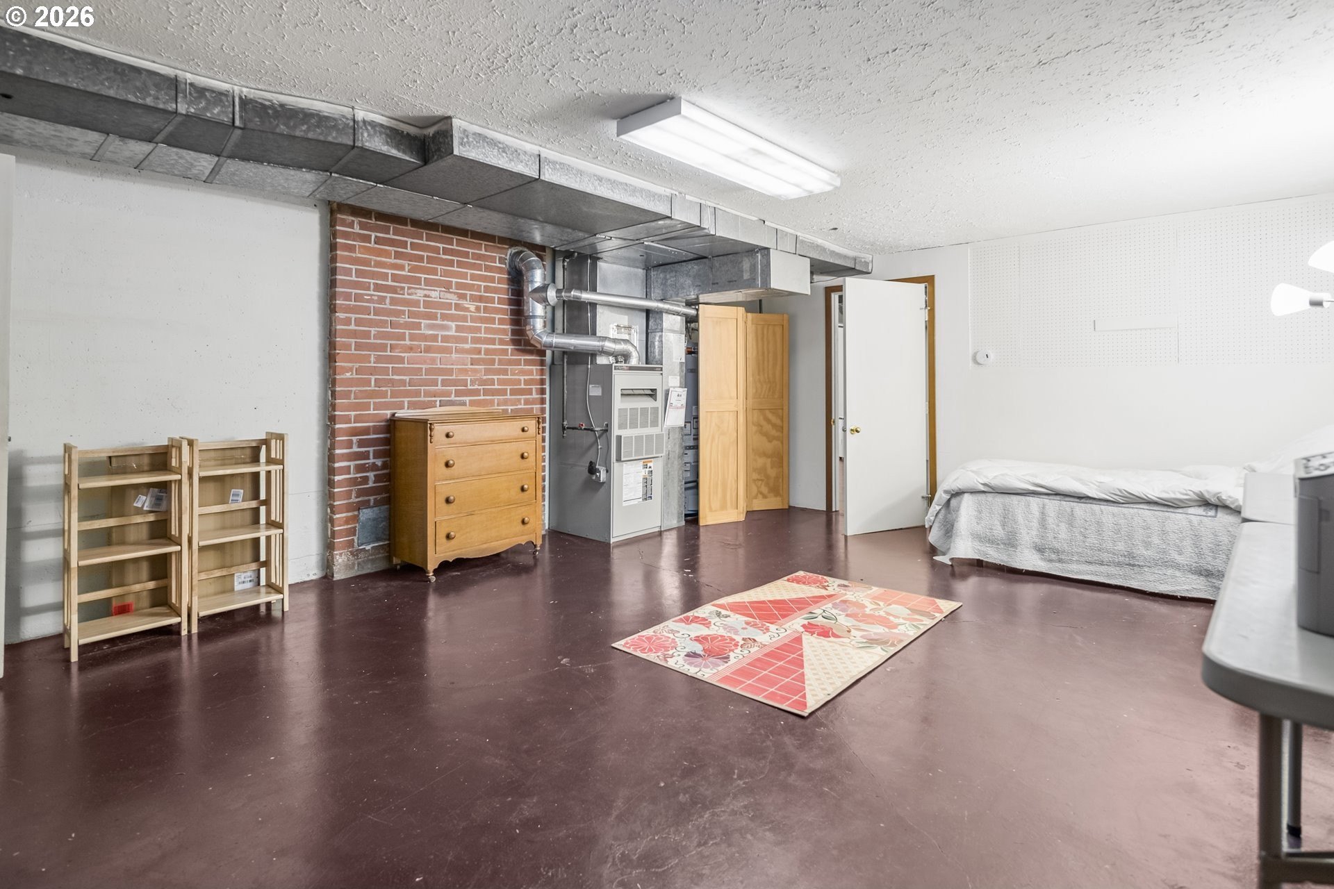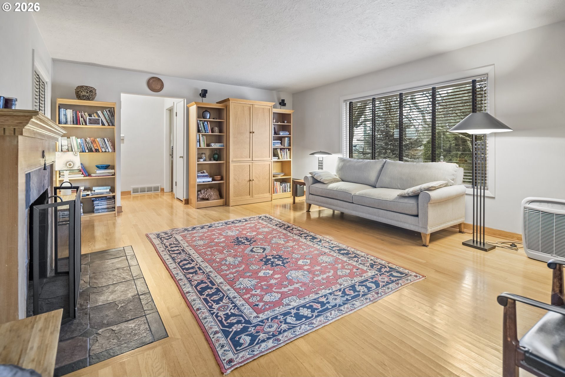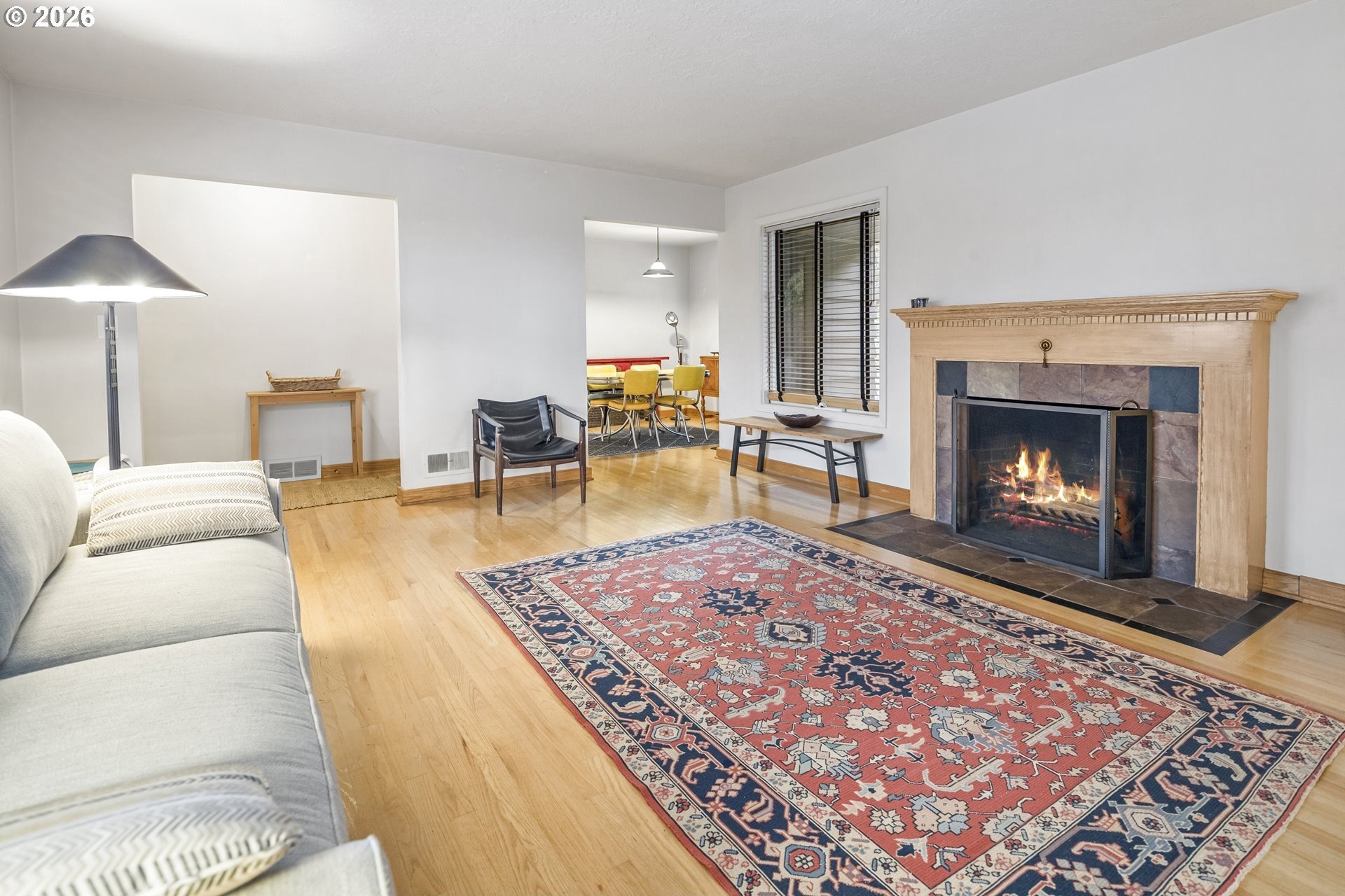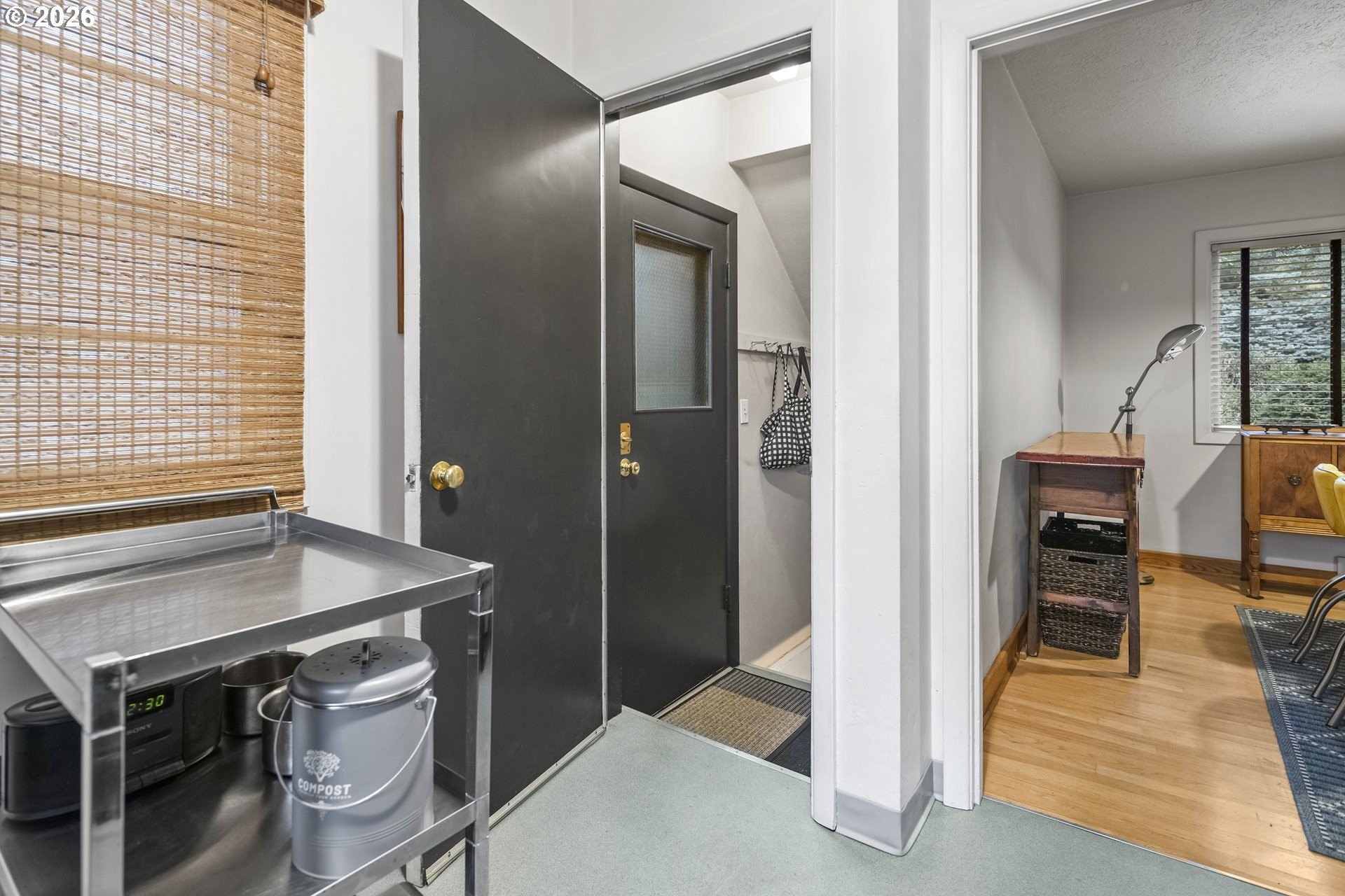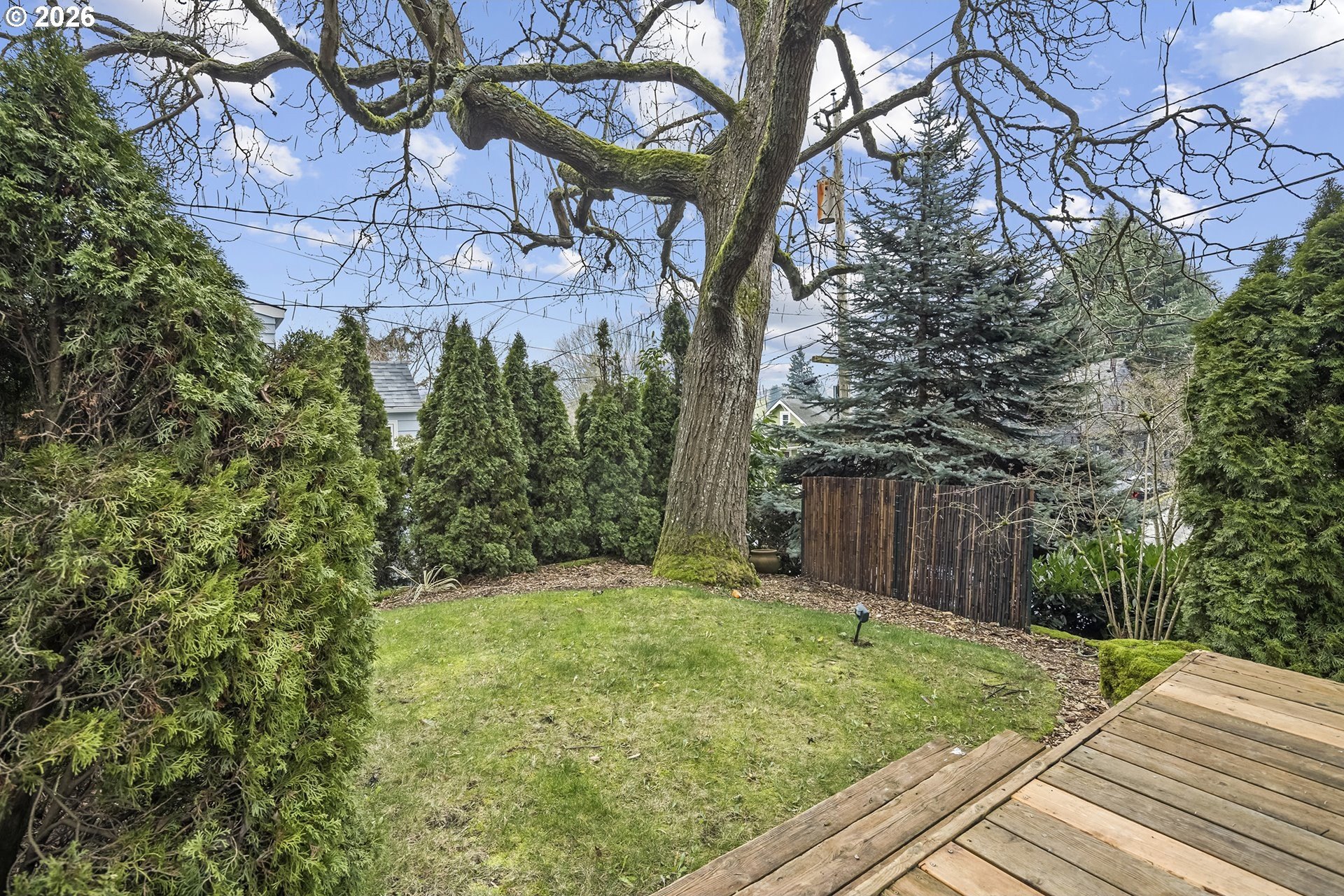 Private urban retreat with exceptional value. Tucked away on quiet NE 18th Ave, this home offers a rare, forest-like setting with mature trees and a peaceful, secluded feel, yet close to neighborhood parks, cafes, and restaurants, with easy access to transit and downtown. The main level features high ceilings, hardwood floors, a defined dining area, and a functional kitchen with a gas range. Original wood-frame windows with storm panels add classic character, while the shaded setting helps keep the home naturally cool. Generously sized bedroom and updated bath with tile floors, tub, and built-ins. The finished lower level adds approx 737 sq ft of flexible living space. Large family/rec room offers options for bonus space, guests, or home office (egress required for legal bedroom). Tuck-under garage with storage and an electric car charger.Enjoy a fully fenced backyard with a deck offering city views, a covered patio, and multiple access points perfect for entertaining or relaxing in a tranquil, tree-filled setting. Cedar lap siding, a front deck, forced-air gas heat, attic fan, updated electrical panel, and a gas water heater complete this unique offering.Nearly 1,827 sq ft of livable space in a serene Northeast Portland location