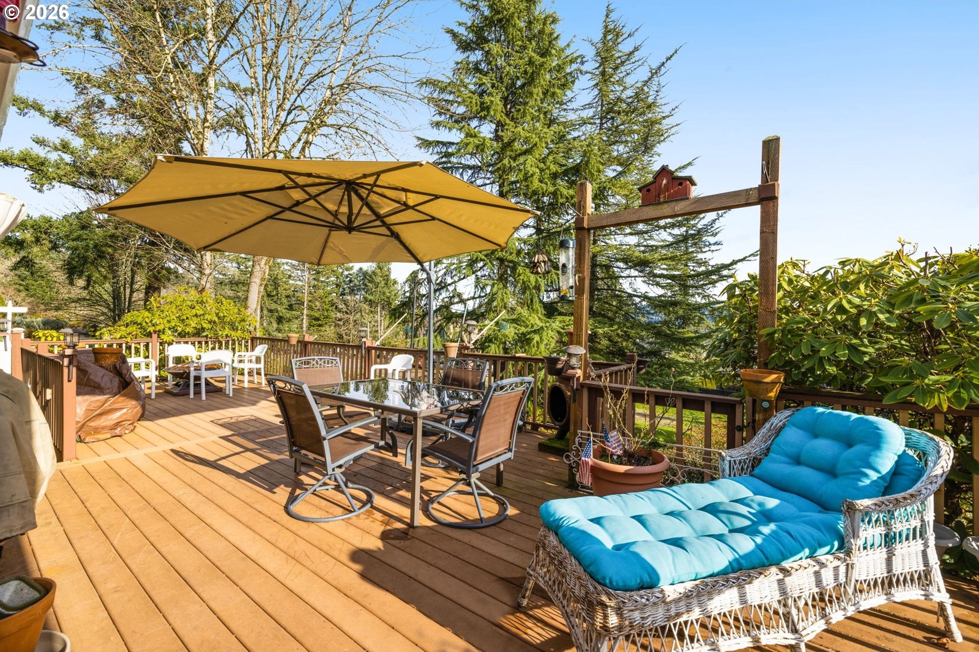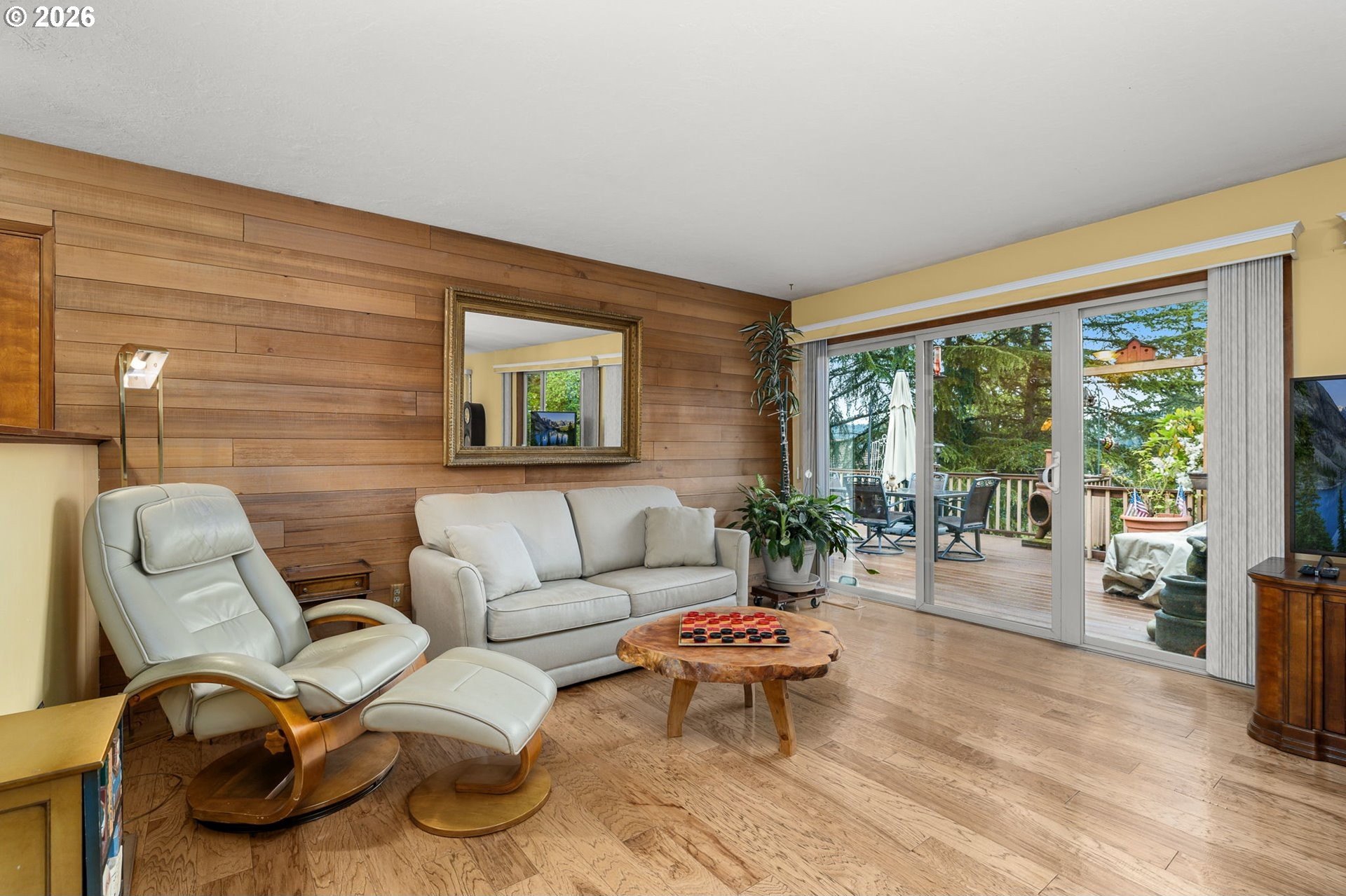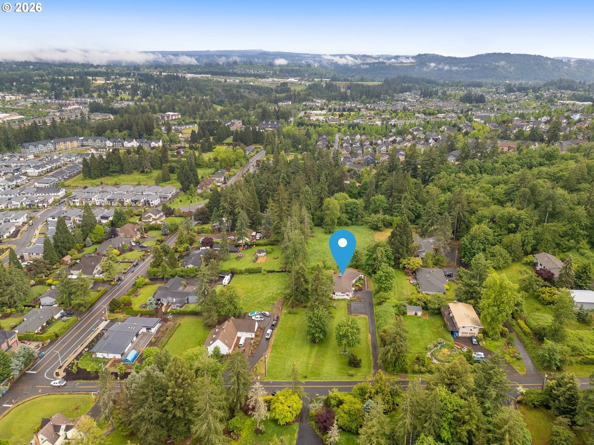 Sweet Spot! Room to play, garden, hobby, or just relax on this one acre slice of heaven, a stone's throw from Happy Valley shops, dining and nature park. First time on the market in 40 years! Daylight ranch with deep setback from the street, yielding privacy along with vast valley and mountain views. Sweet retro floor-to-ceiling white quartz mantle in sunken formal living room. Ground floor dining & family room combo off the kitchen opens to pleasant 30' wise composite deck. One level living, with daylight basement space for hosting, gaming or entertaining! Apple and pear trees, berries galore and irises in bloom. Seller willing to part with riding John Deere mower. Fail safe systems include gas powered backup generator with automatic transfer switch, and backup gas water heater. ADA walk-in tub at hallway bathroom. Gutters just replaced. All appliances included, along with brand new GE Profile stainless steel gas range!
