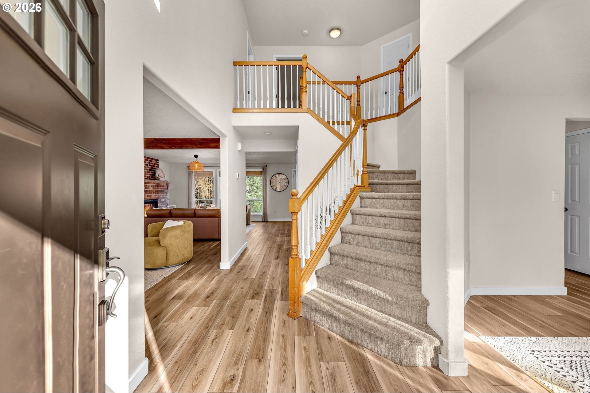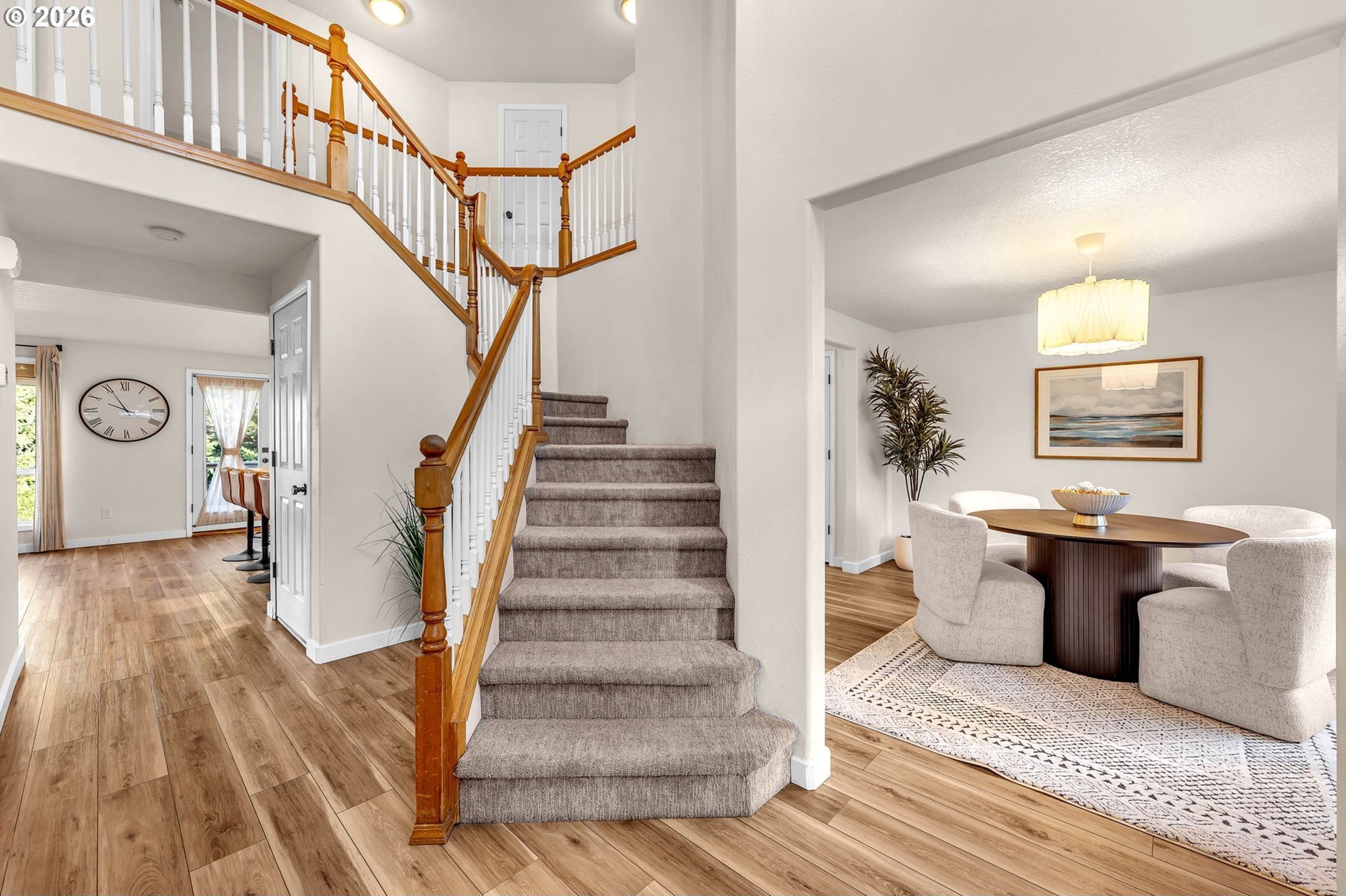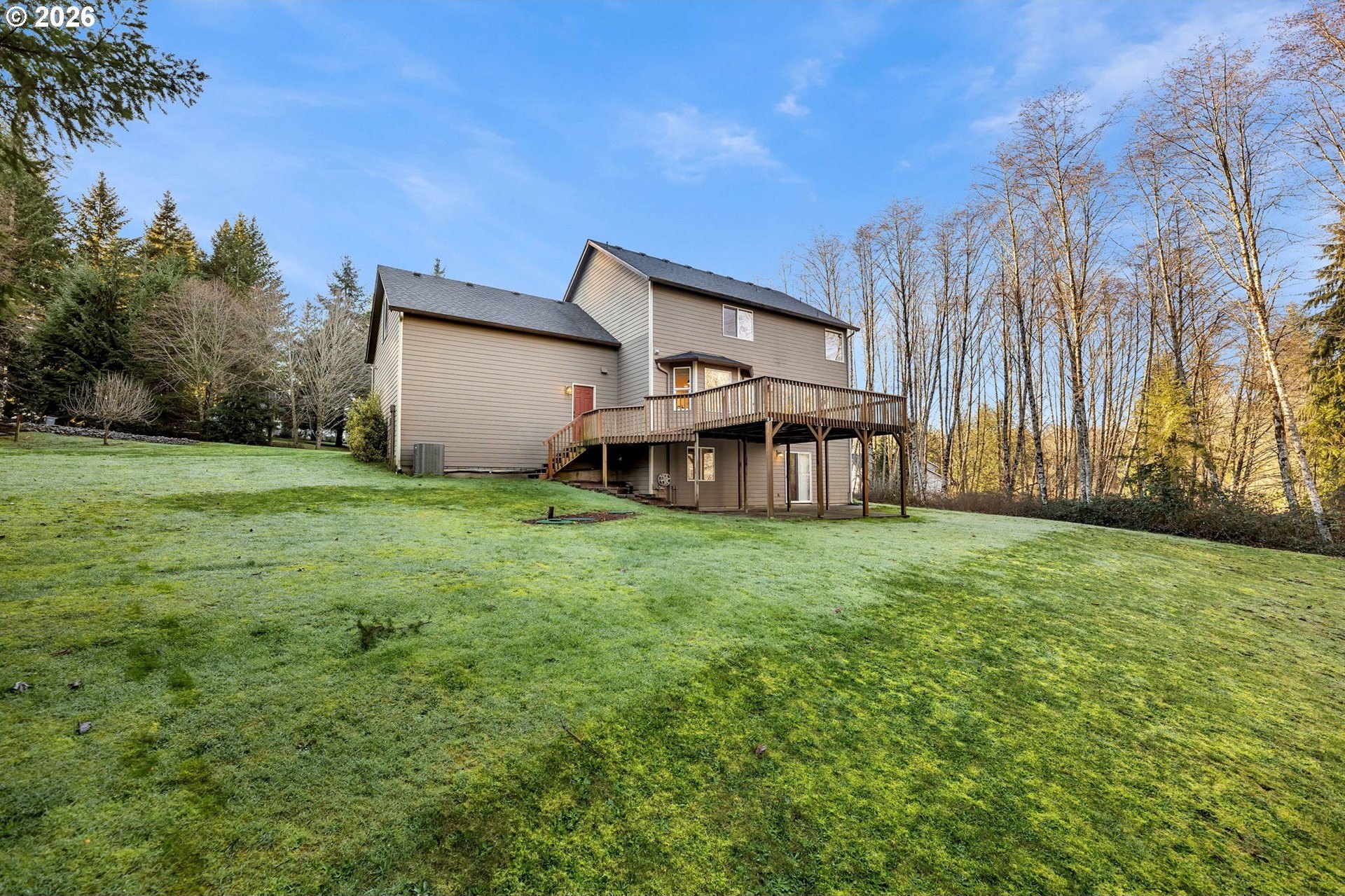 1 acre slice of property with a tastefully remodeled home. Gently rolling property with garden area, separate tool shed and above ground pool leading to a seasonal creek. Find yourself able to relax at home with a new roof, new HVAC, recently inspected and pumped septic system, new kitchen appliances, and new interior paint and newer carpet. Main level features easy care LVP flooring, propane fireplace, remodeled kitchen (new appliances, cabinets, counters, backsplash, under cabinet lighting), and formal living and dining spaces. Upstairs Primary suite with vaulted ceiling, modern fixtures, jetted tub, dual sinks and walk in closet. Additional 3 bedrooms upstairs with 1 of 2 laundry rooms upstairs. Travel down to the basement for a 5th bedroom, bonus area, another flex space, 2nd laundry area, full bathroom, sauna and walk out to lower level patio.