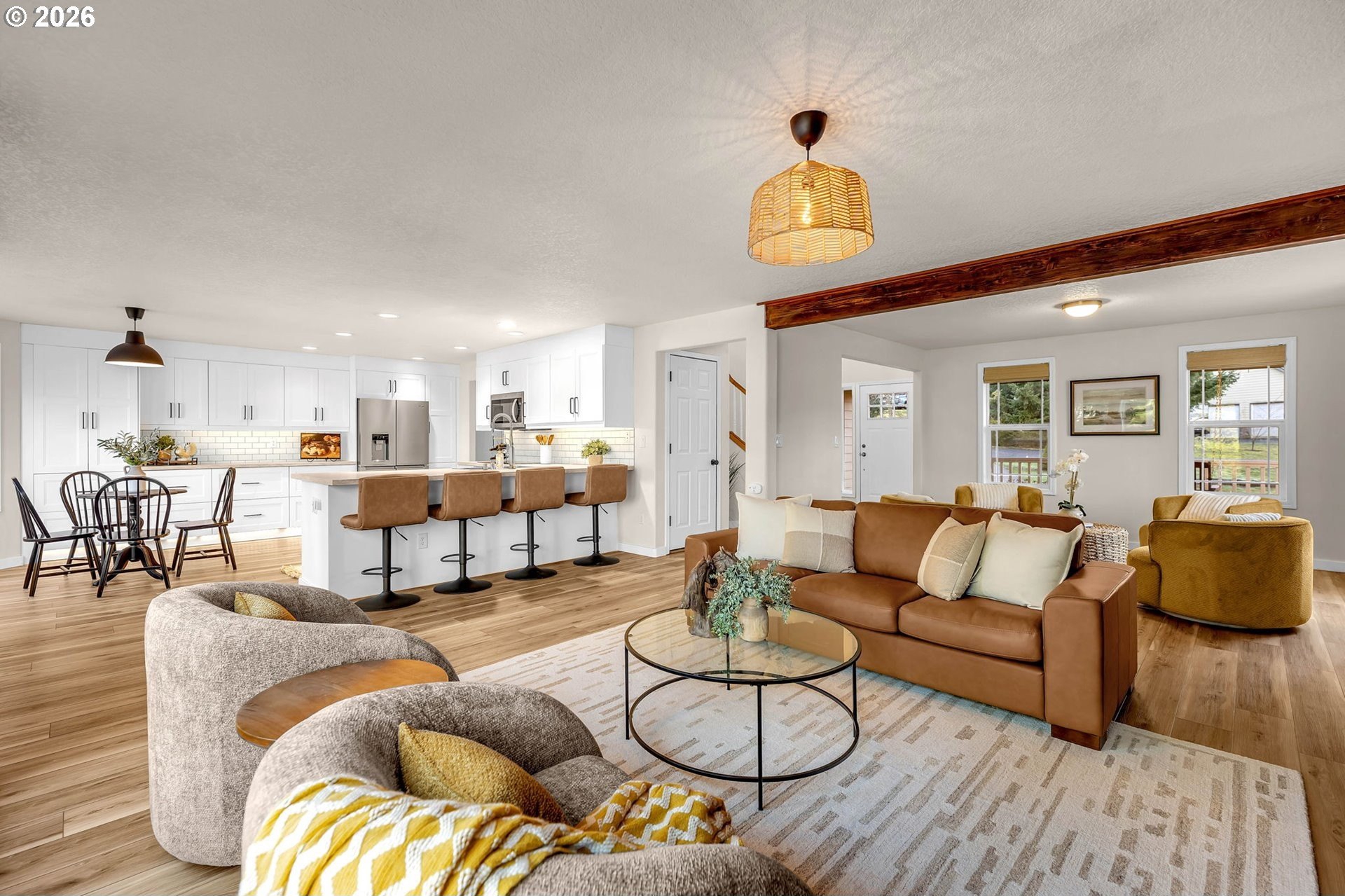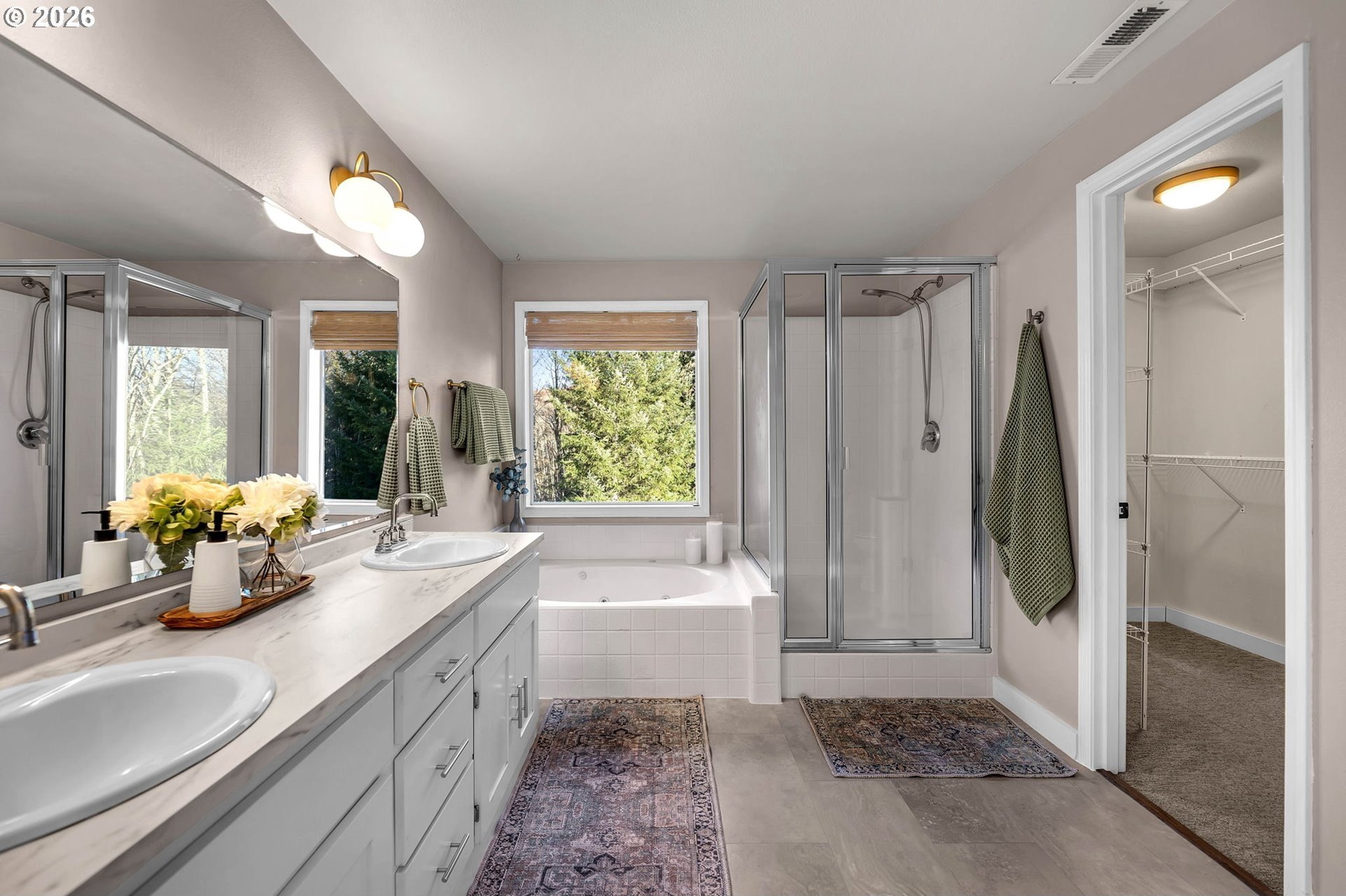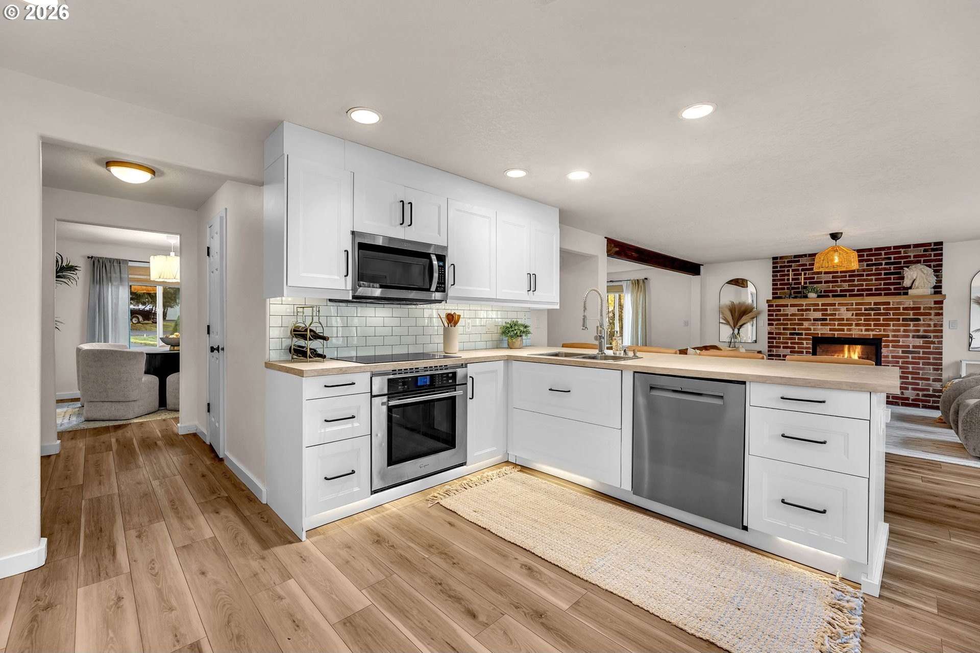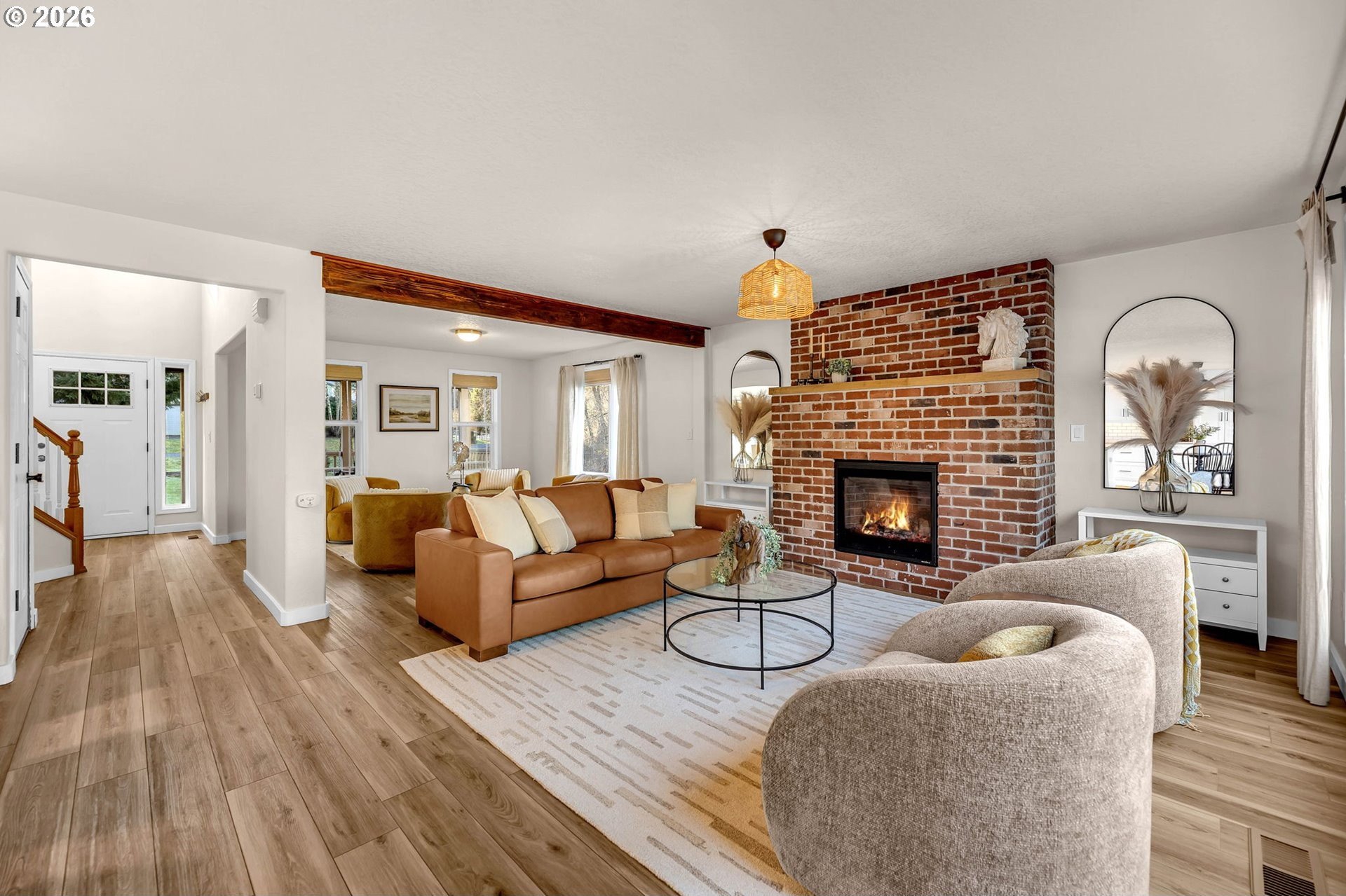 1 acre slice of property with a tastefully remodeled home. Gently rolling property with garden area, separate tool shed and above ground pool leading to a seasonal creek. Find yourself able to relax at home with a new roof, new HVAC, recently inspected and pumped septic system, new kitchen appliances, and new interior paint and newer carpet. Main level features easy care LVP flooring, propane fireplace, remodeled kitchen (new appliances, cabinets, counters, backsplash, under cabinet lighting), and formal living and dining spaces. Upstairs Primary suite with vaulted ceiling, modern fixtures, jetted tub, dual sinks and walk in closet. Additional 3 bedrooms upstairs with 1 of 2 laundry rooms upstairs. Travel down to the basement for a 5th bedroom, bonus area, another flex space, 2nd laundry area, full bathroom, sauna and walk out to lower level patio.