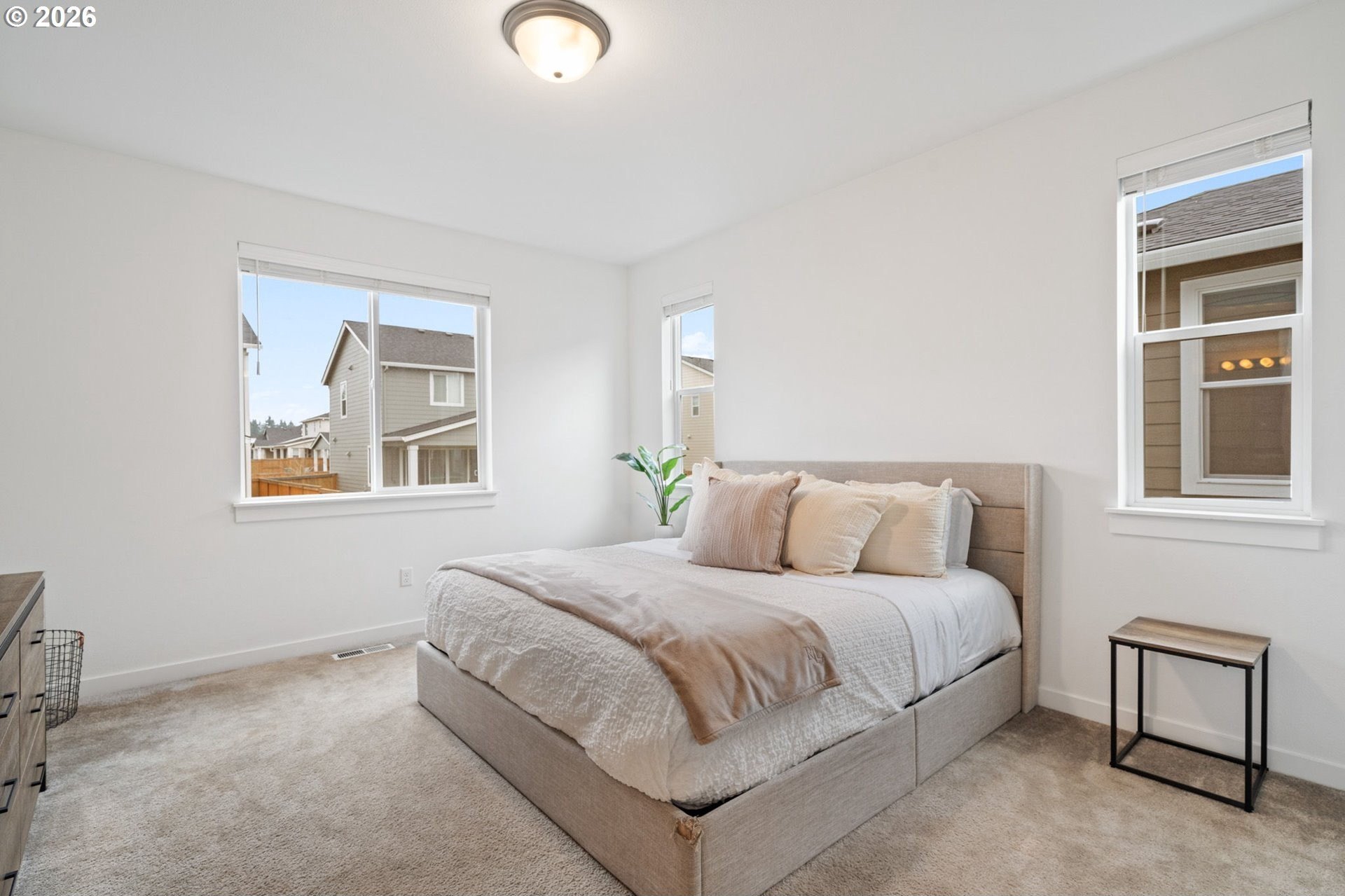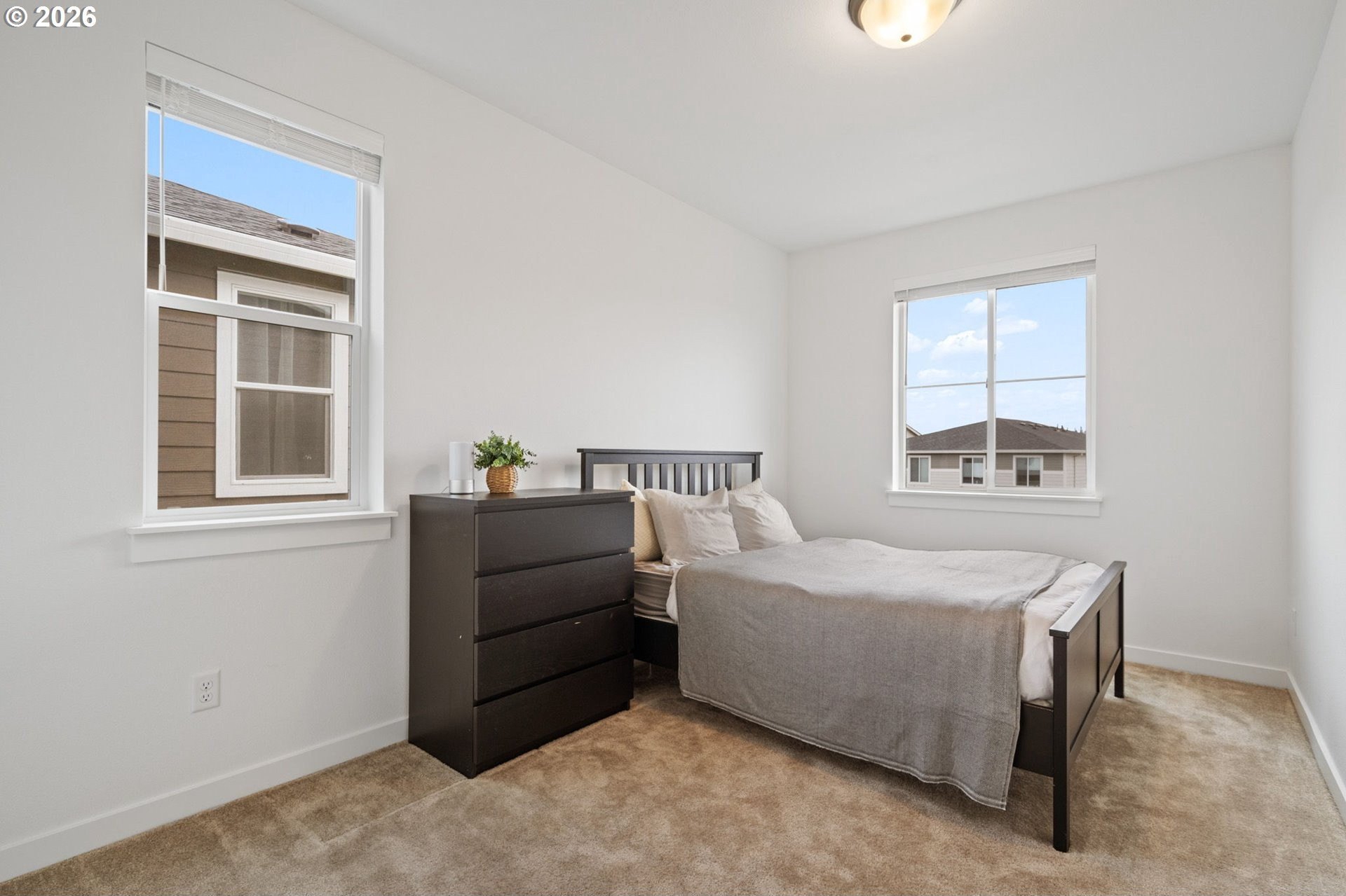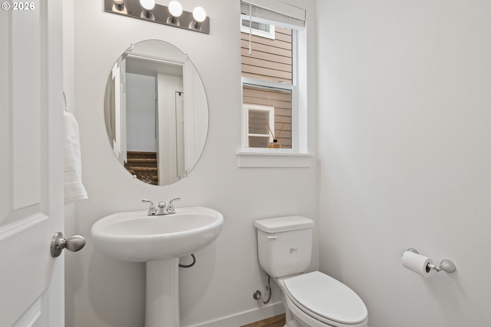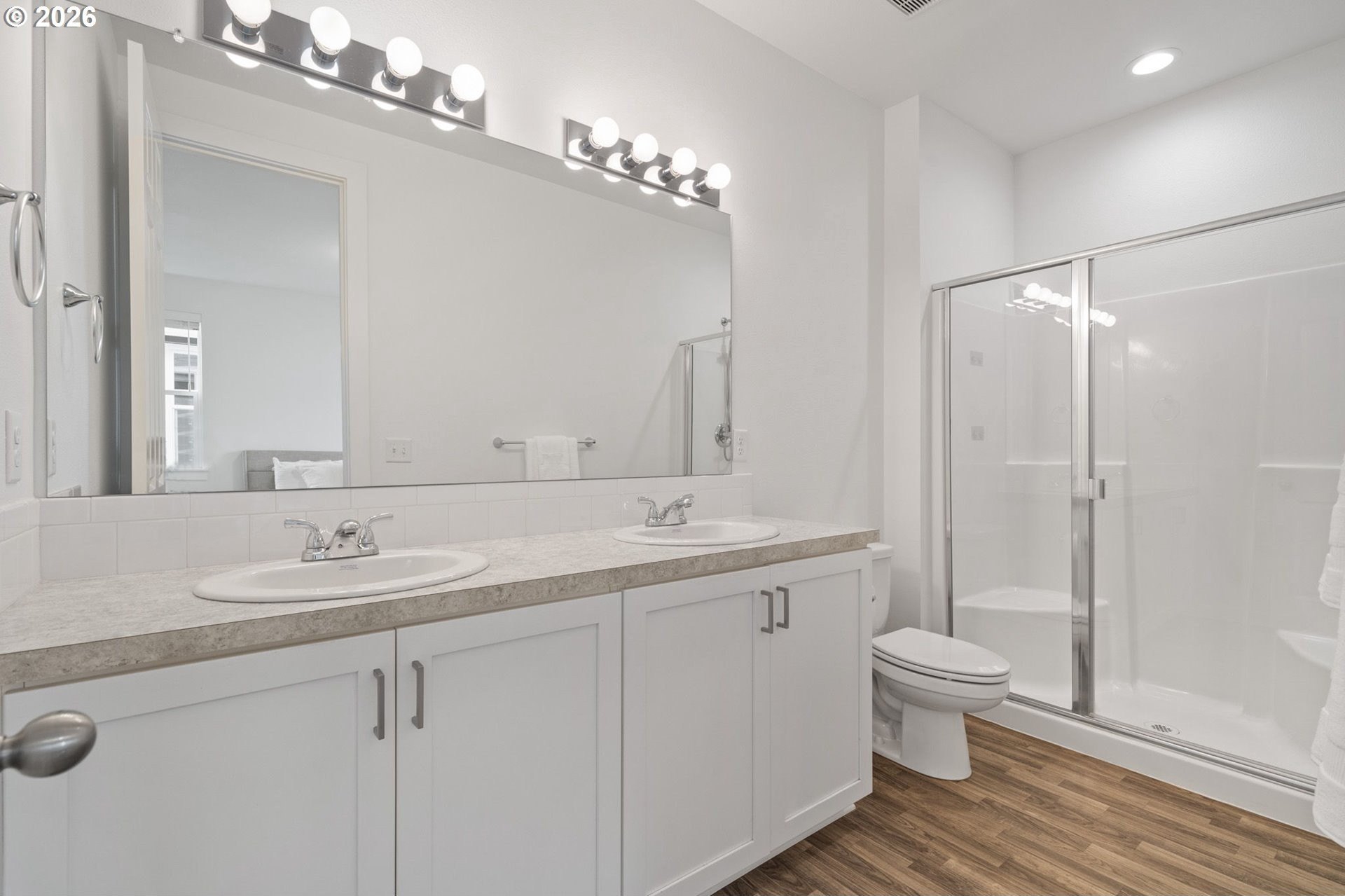 This beautiful, newer townhome truly stands out from the competition, offering many upgrades for its price point. Features include 9-foot ceilings, tall doors, and a light, bright interior with laminate flooring throughout the main. The kitchen and bathrooms showcase quartz countertops and crisp white painted cabinetry. The inviting great room includes a cozy fireplace and flows seamlessly into the dining area, making it ideal for everyday living and entertaining. A convenient powder bath is located on the main level. Upstairs, you'll find a spacious layout highlighted by a lovely primary suite with a generous walk-in closet. The laundry room is conveniently located on the upper level. A hallway bathroom offers a double-sink vanity and a tub/shower combination. Outside, enjoy a covered patio and a low-maintenance backyard featuring fresh, green AstroTurf that looks great year-round. Ideally located with excellent access to freeways, shopping, trails, and downtown Ridgefield, this home offers both comfort and convenience.