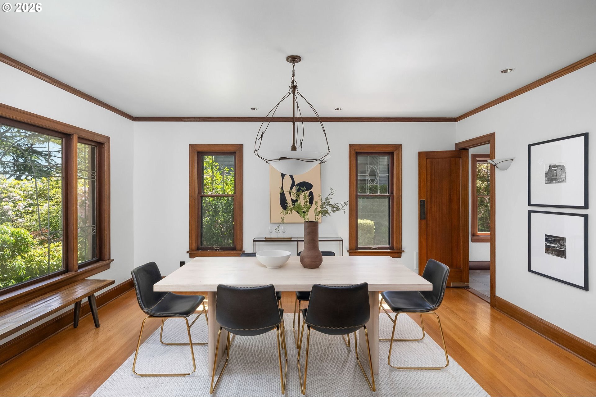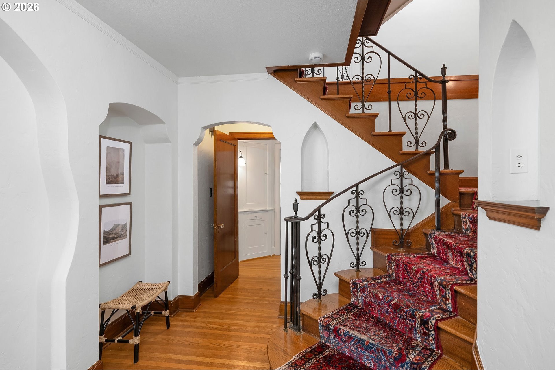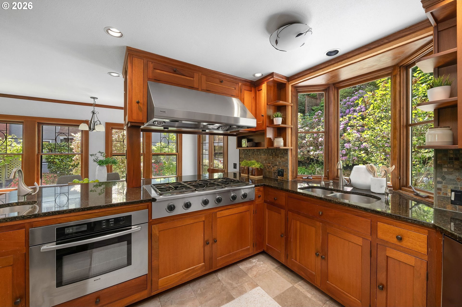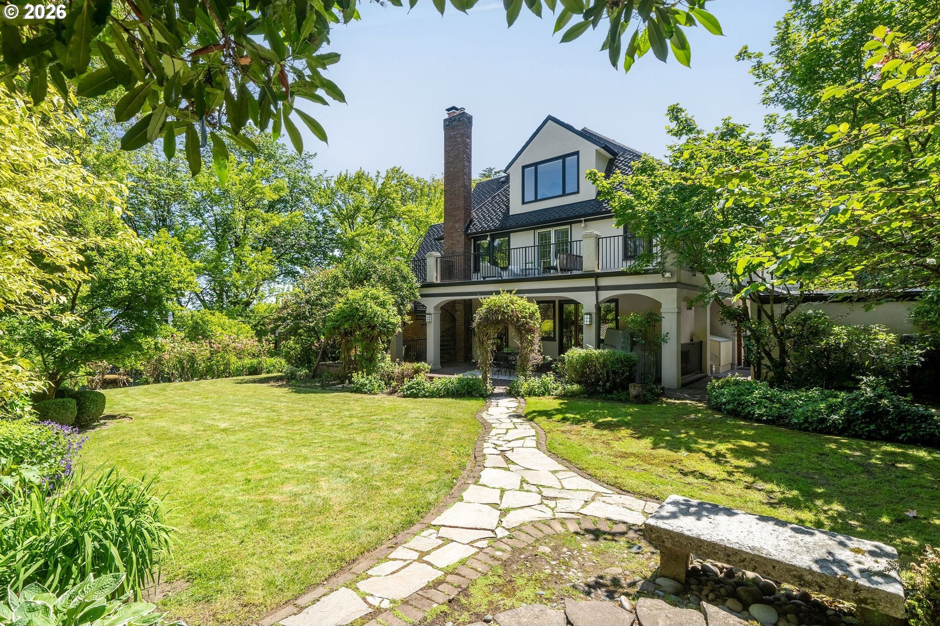 Situated on a spacious 0.30-acre lot, this distinguished residence is surrounded by lush lawns, perennial gardens, and mature trees. Sunlight fills the interiors, highlighting elegant leaded glass windows, hardwood floors, and finely craftedmoldings and archways throughout. The gourmet kitchen opens seamlessly to generous living and dining spaces, creating an ideal layout for both everyday living and effortless entertaining. The second level features three spacious bedrooms and two full bathrooms, while the top floor offers a flexible retreat-perfect as an ensuite bedroom, studio, or loft. The fully finished lower level includes a separate living area with a full kitchen, providing an excellent option for an au pair, extended guests, or multigenerational living. Additional highlights include abundant storage, a two-car garage, and a prime location just three blocks from NW 23rd, the streetcar, scenic walking trails, and Hillside Park CommunityCenter. [Home Energy Score = 1. HES Report