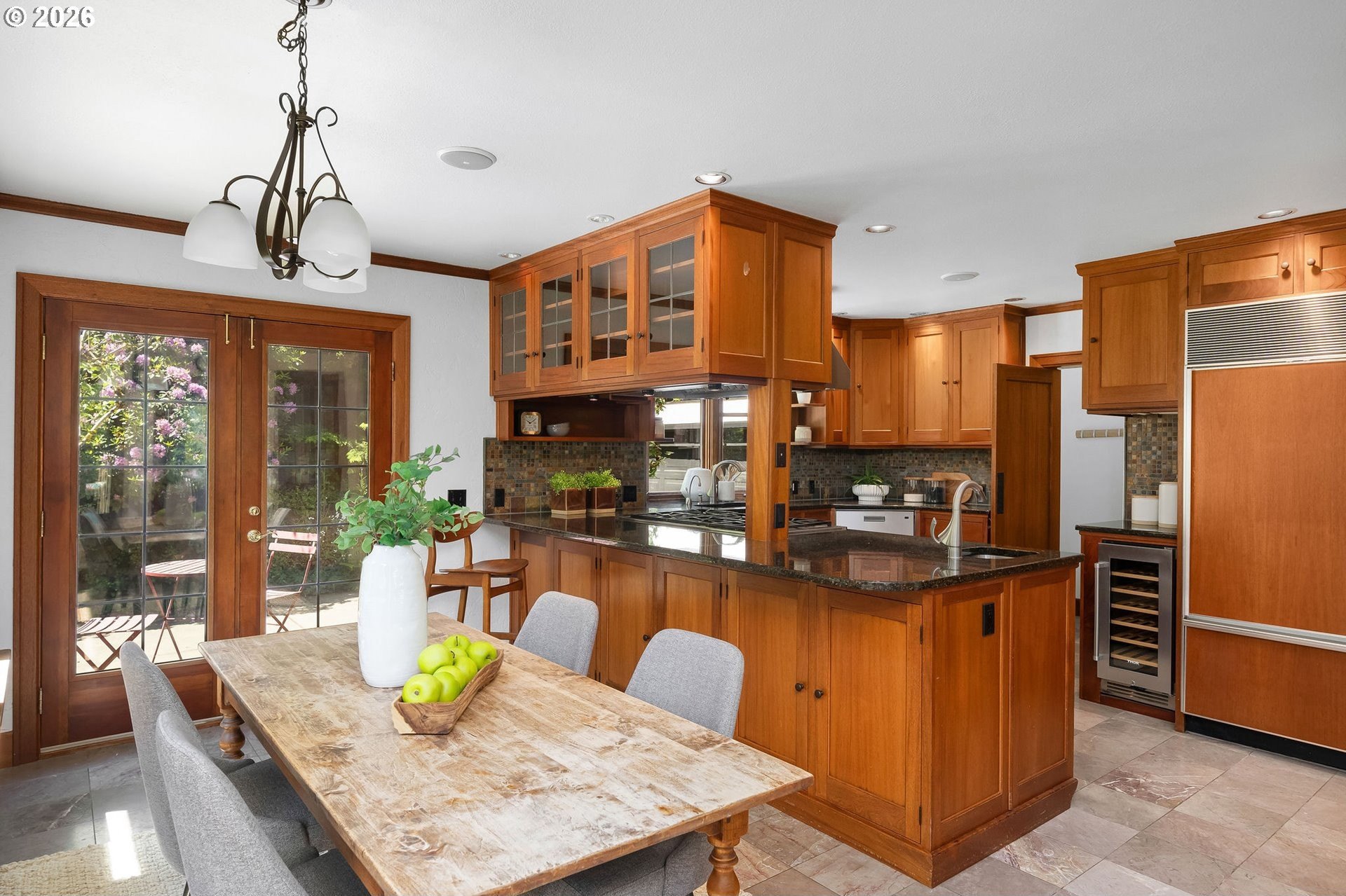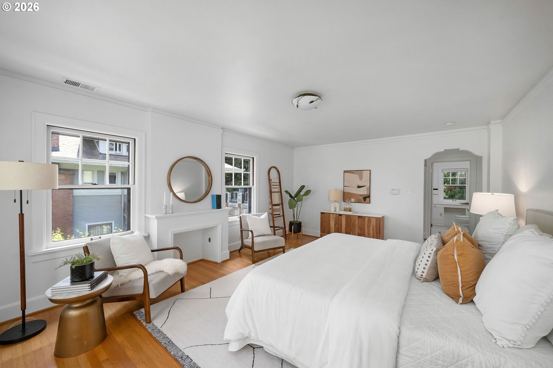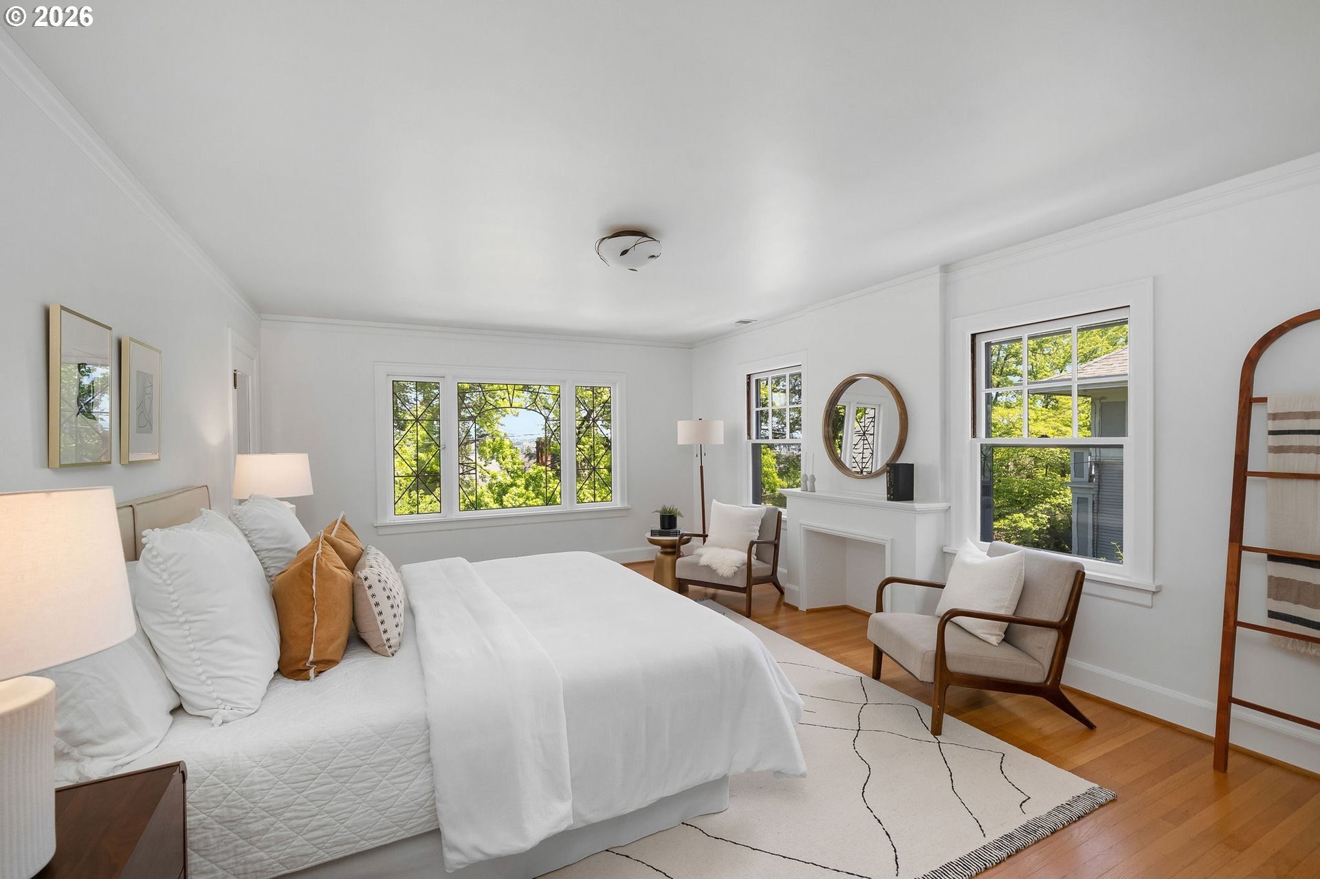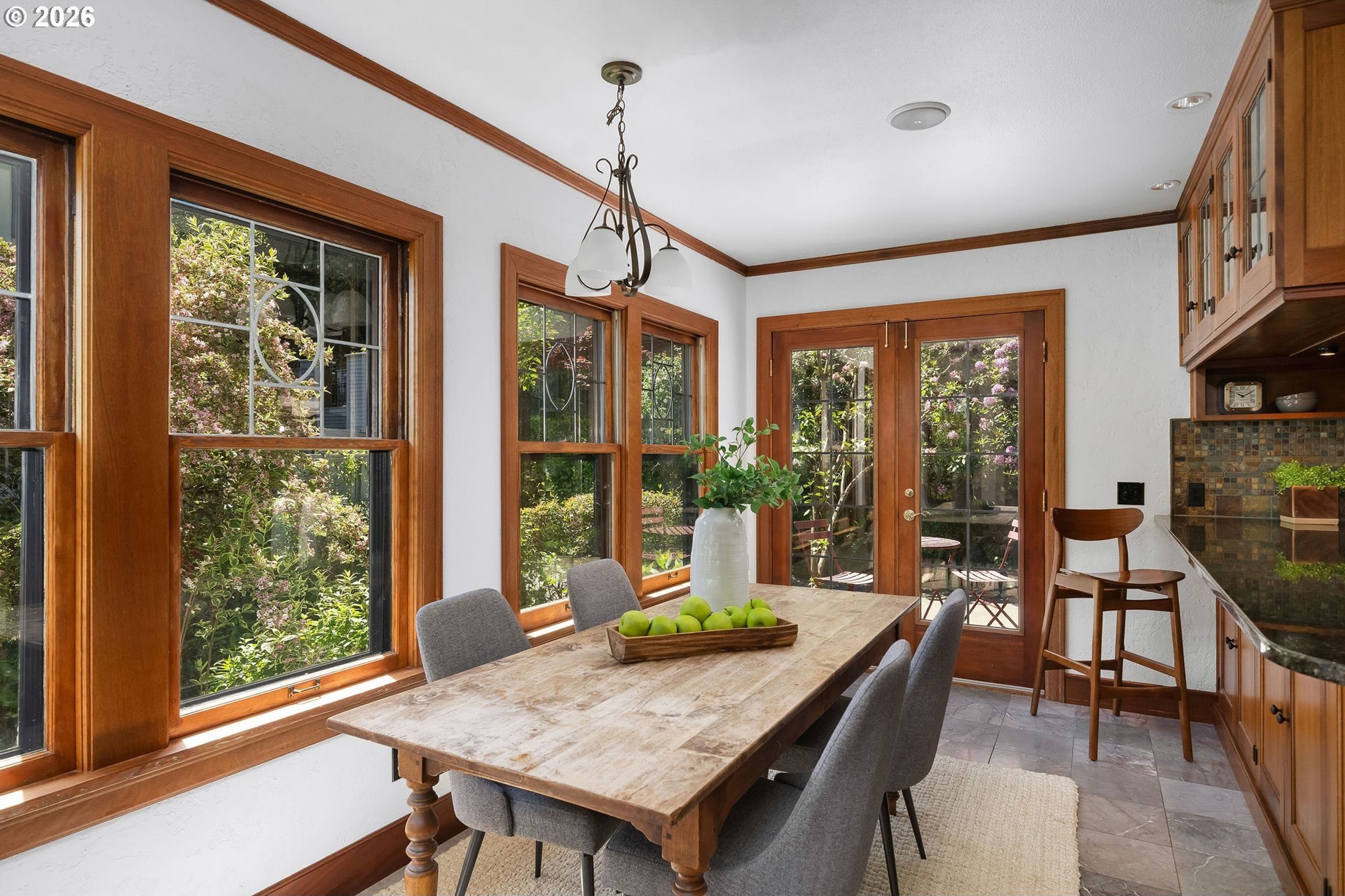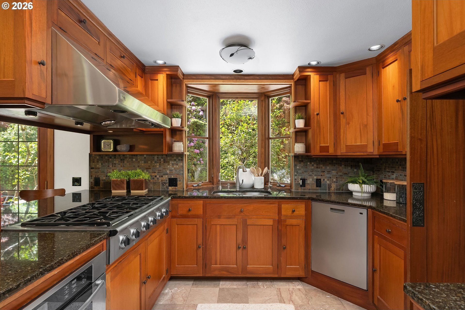 Situated on a spacious 0.30-acre lot, this distinguished residence is surrounded by lush lawns, perennial gardens, and mature trees. Sunlight fills the interiors, highlighting elegant leaded glass windows, hardwood floors, and finely craftedmoldings and archways throughout. The gourmet kitchen opens seamlessly to generous living and dining spaces, creating an ideal layout for both everyday living and effortless entertaining. The second level features three spacious bedrooms and two full bathrooms, while the top floor offers a flexible retreat-perfect as an ensuite bedroom, studio, or loft. The fully finished lower level includes a separate living area with a full kitchen, providing an excellent option for an au pair, extended guests, or multigenerational living. Additional highlights include abundant storage, a two-car garage, and a prime location just three blocks from NW 23rd, the streetcar, scenic walking trails, and Hillside Park CommunityCenter. [Home Energy Score = 1. HES Report