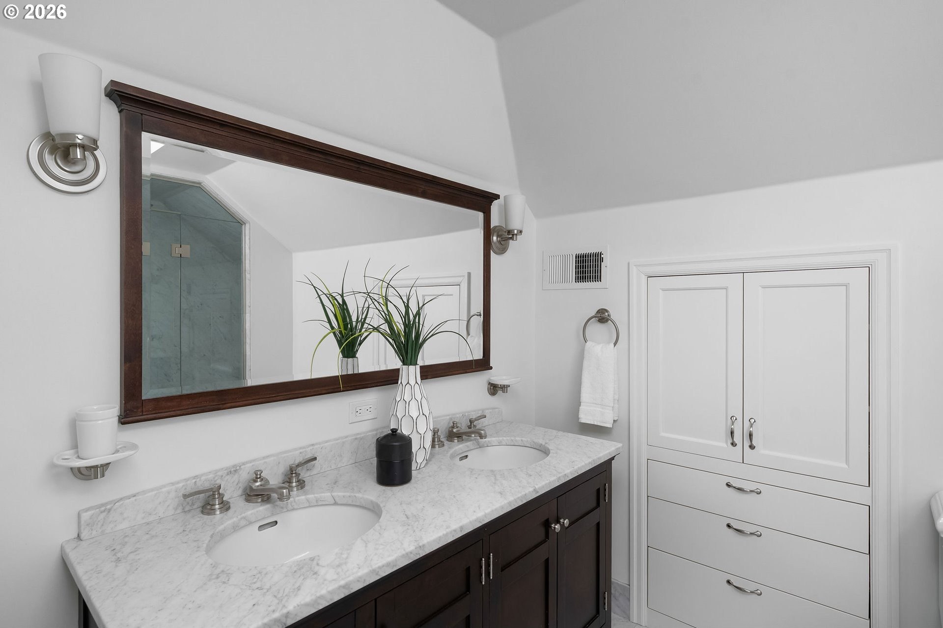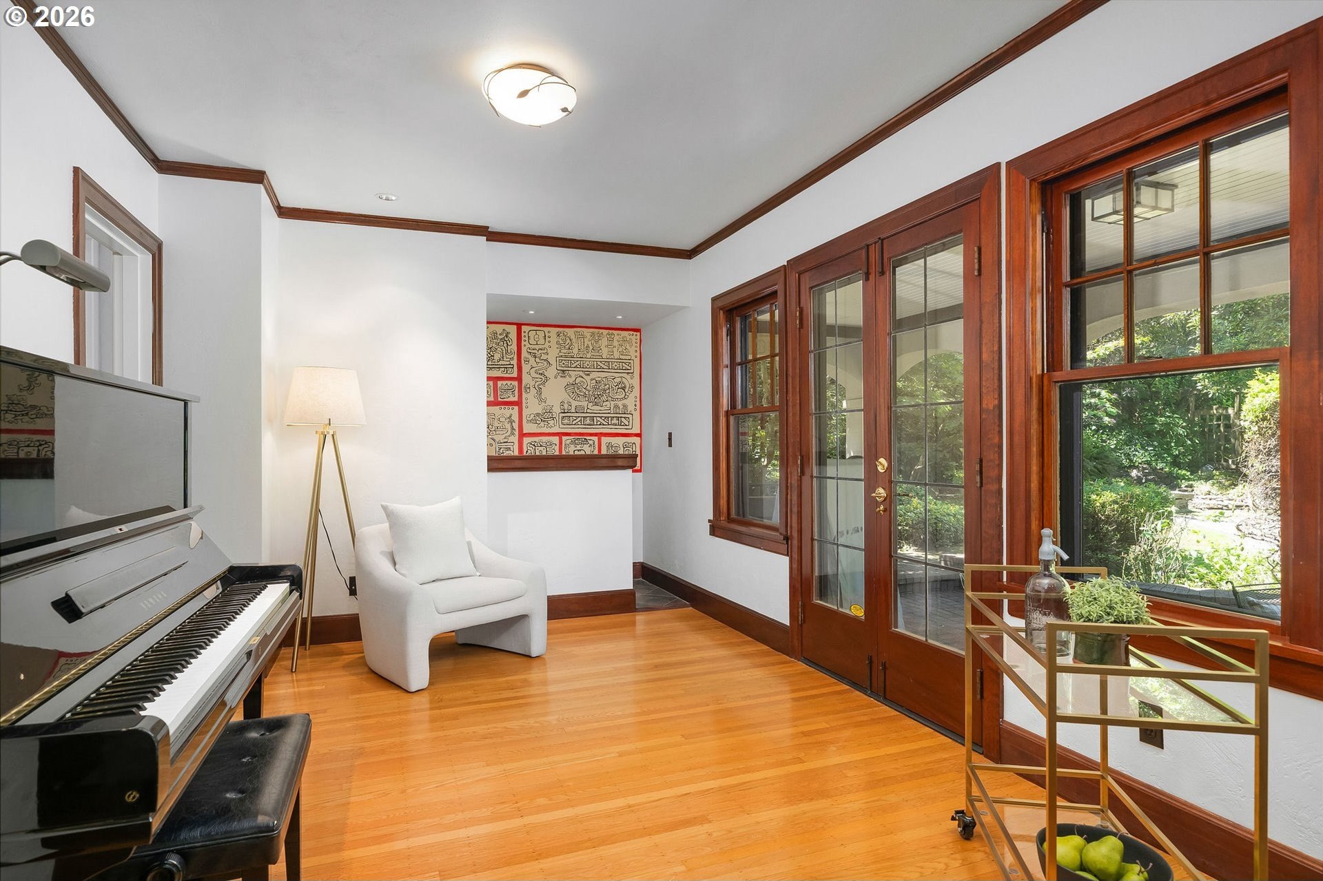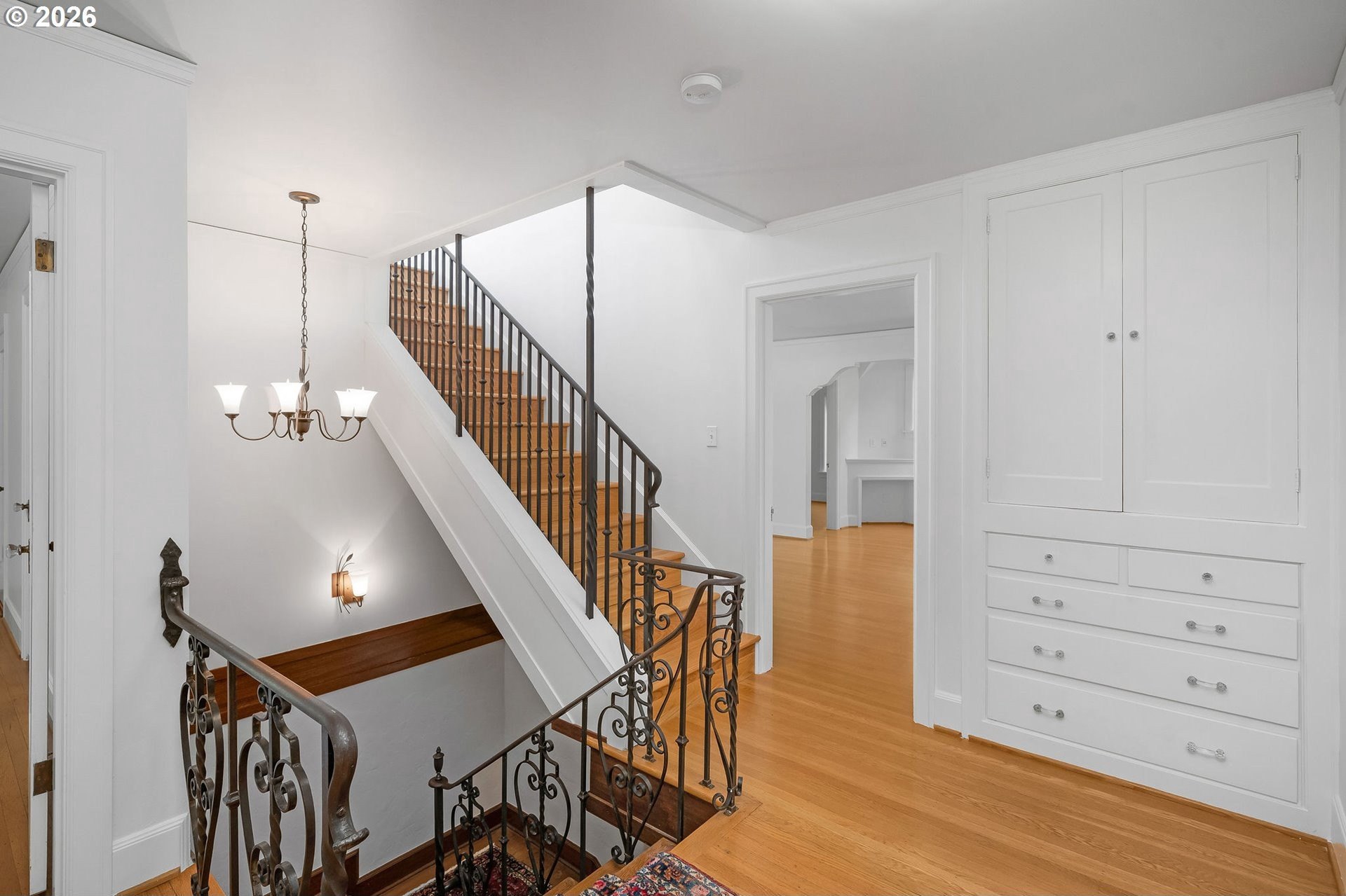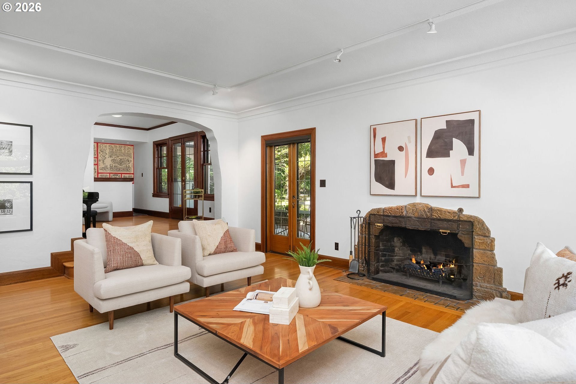 Situated on a spacious 0.30-acre lot, this distinguished residence is surrounded by lush lawns, perennial gardens, and mature trees. Sunlight fills the interiors, highlighting elegant leaded glass windows, hardwood floors, and finely craftedmoldings and archways throughout. The gourmet kitchen opens seamlessly to generous living and dining spaces, creating an ideal layout for both everyday living and effortless entertaining. The second level features three spacious bedrooms and two full bathrooms, while the top floor offers a flexible retreat-perfect as an ensuite bedroom, studio, or loft. The fully finished lower level includes a separate living area with a full kitchen, providing an excellent option for an au pair, extended guests, or multigenerational living. Additional highlights include abundant storage, a two-car garage, and a prime location just three blocks from NW 23rd, the streetcar, scenic walking trails, and Hillside Park CommunityCenter. [Home Energy Score = 1. HES Report