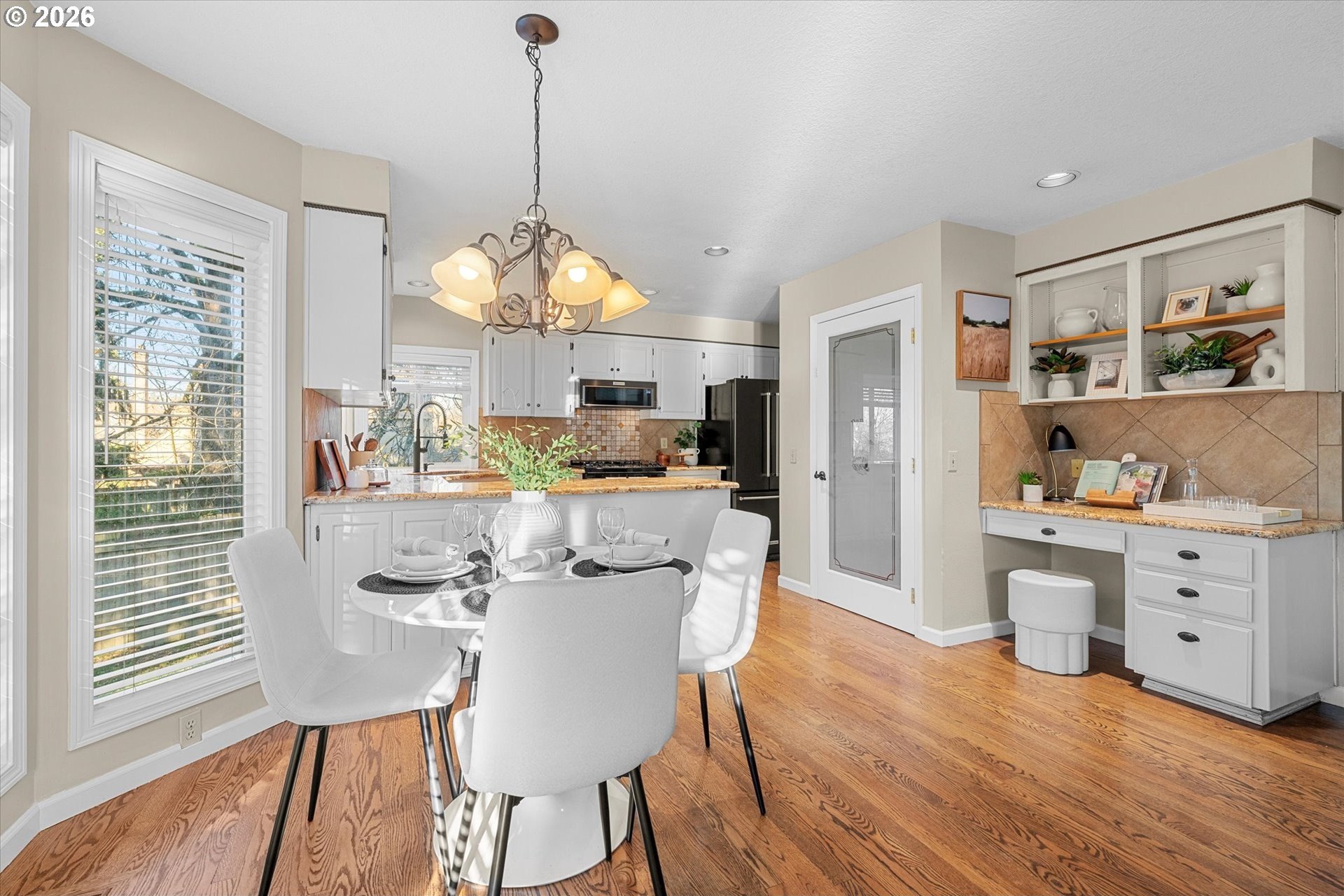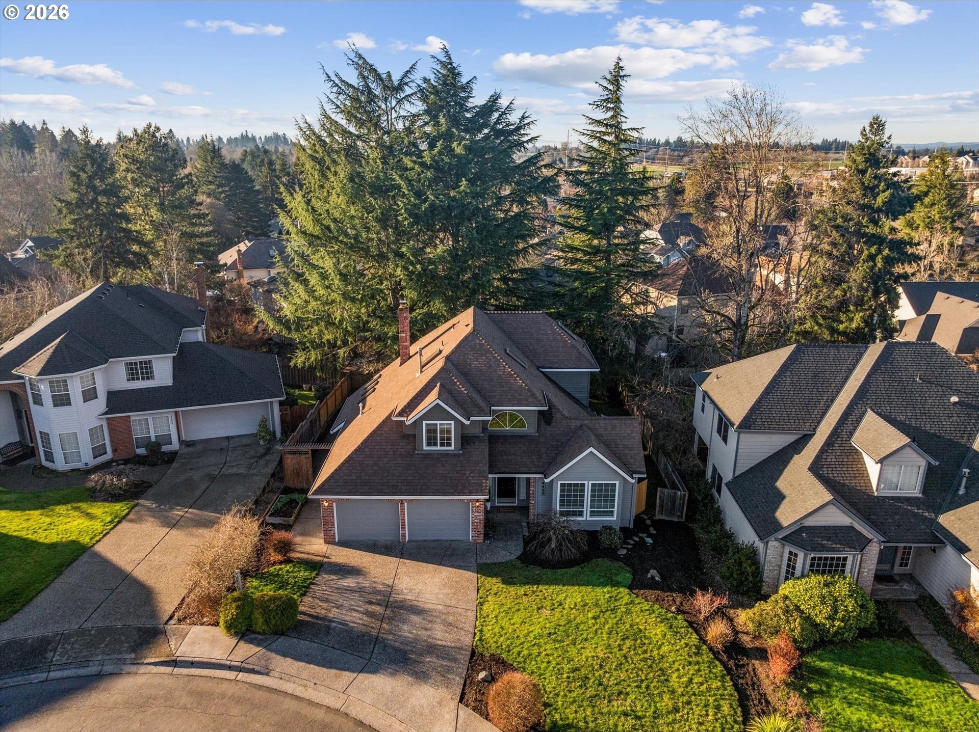 Showcasing timeless architecture, this home features a livable design and a seamless connection between indoor living and outdoor entertaining. Situated on a cul-de-sac in the highly desirable Allenbach Acres neighborhood, this home offers both privacy and comfort. The interior features freshly painted trim and millwork, a vaulted ceiling, new luxury carpet downstairs, hardwood floors, three bedrooms, two and a half bathrooms, and an office with built-ins. Enjoy the sunset from two levels of decks overlooking the backyard, ideal for relaxing evenings or weekend gatherings.Located in a community known for its top-rated schools, the home offers an ideal location with easy access to both Tanasbourne, Bethany Village, and the high-tech corridor. Shopping, dining, coffee shops, brew pubs, golf courses, parks, and trails are all just minutes away. Recent upgrades include interior trim paint, exterior paint (Fall 2025), roof (2015), hot water heater (2025), refrigerator and microwave (2023), Carrier heating and air conditioning (2022), and new Trex decking (2026). Wired for high speed fiber optics/ethernet. You're going to love living here!