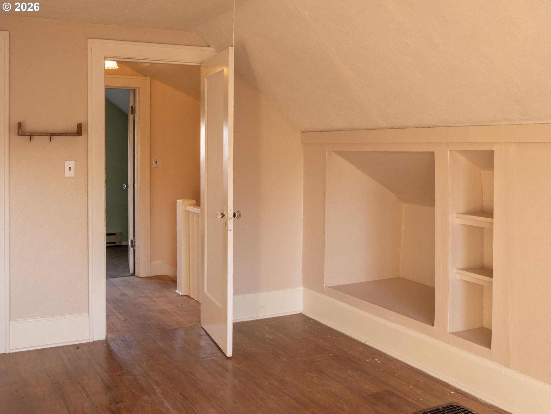Charming 3-bedroom, 1-bath home on a spacious lot with RV parking and hookups. Ideally located near golf courses, shopping, and bike trails, this home offers a thoughtful mix of character and updates, including a newer 30-year roof and newer vinyl windows. Hardwood floors run throughout the main level, where a large picture window fills the living room with natural light. Classic built-ins and arched doorway add timeless appeal. A brightly lit main-floor bedroom provides added convenience and flexibility. Up the stairs are two additional bedrooms. The lower level could be transformed to a generous bonus space-ideal for a playroom or entertaining-and includes a pool table. A wonderful opportunity to personalize this home with cosmetic updates and make it your own. [Home Energy Score = 1. HES Report