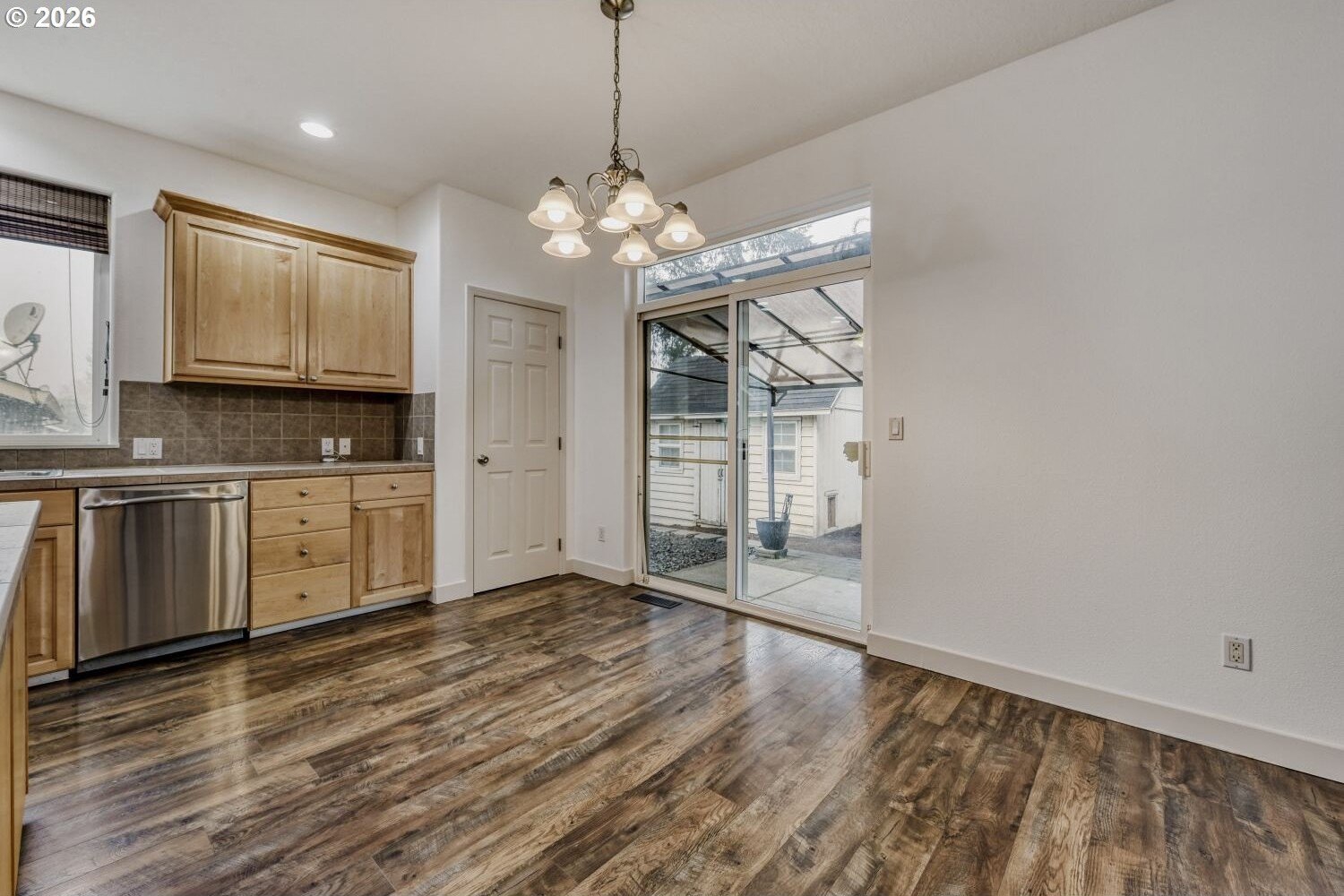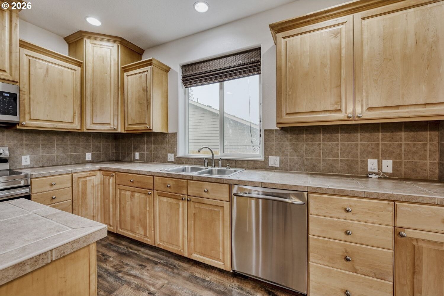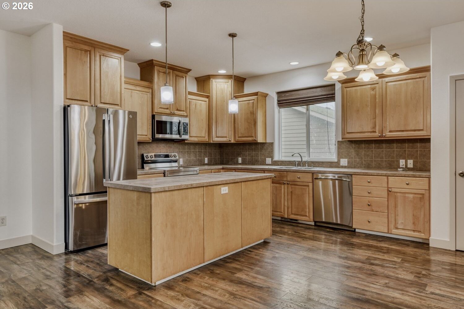 Move-in ready traditional on private lot! This two-story home offers a sought-after great room plan with high ceilings and numerous vinyl windows for exceptional natural light. It has been well maintained and thoroughly updated with recent LVP flooring, a brand-new roof, and all-new interior paint. Oversized kitchen features island with pendant lights, maple cabinetry, newer stainless steel appliances, and pantry. The kitchen is open to the dining room and great room, featuring a gas fireplace. The upper floor offers three spacious bedrooms, including a deluxe primary suite with large walk-in closet, dual sinks, and walk-in shower. High-quality construction with fiber cement siding, large room sizes, upstairs laundry, and white doors and millwork. Fully fenced backyard features large patio, fire pit, tool shed, mature landscaping, garden area, and exceptional privacy. Super-convenient location with easy access to local amenities!