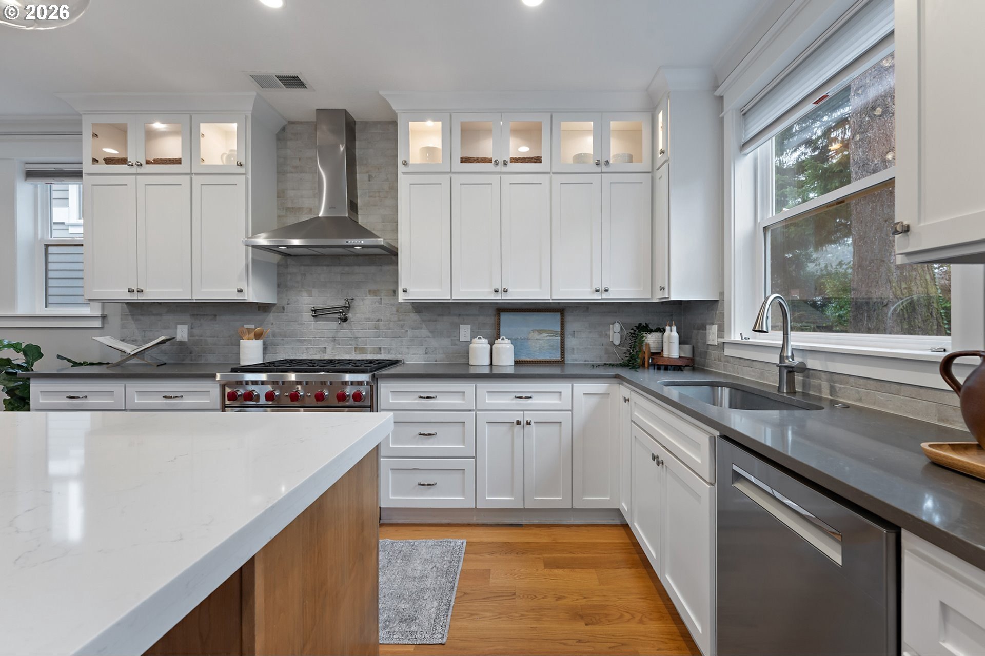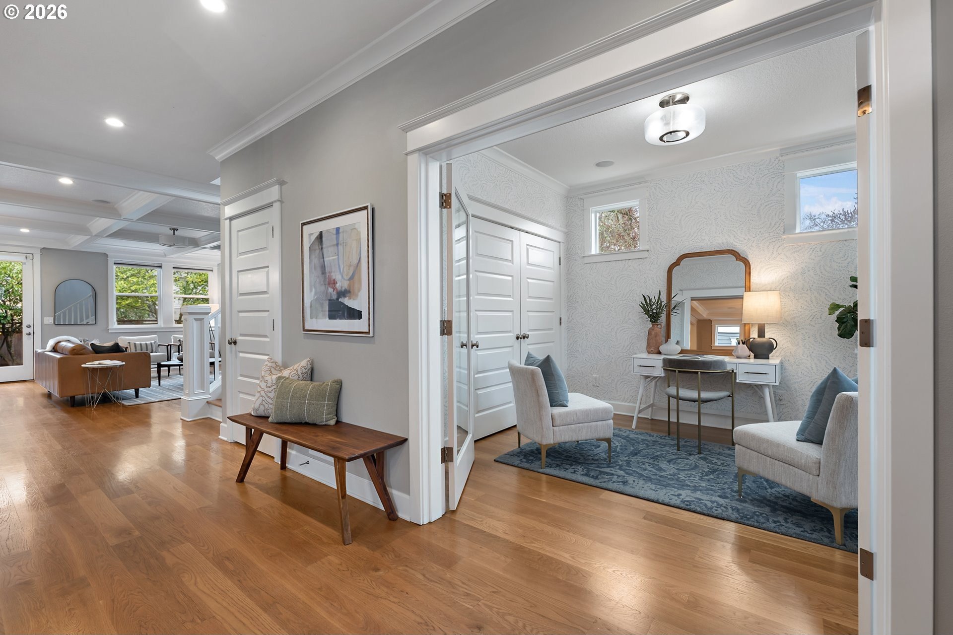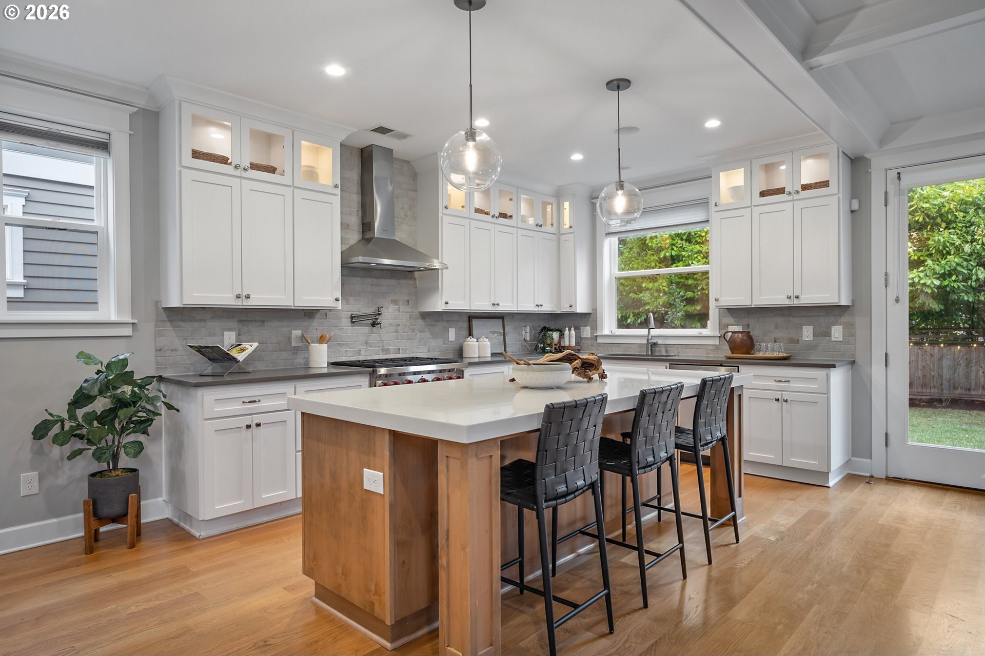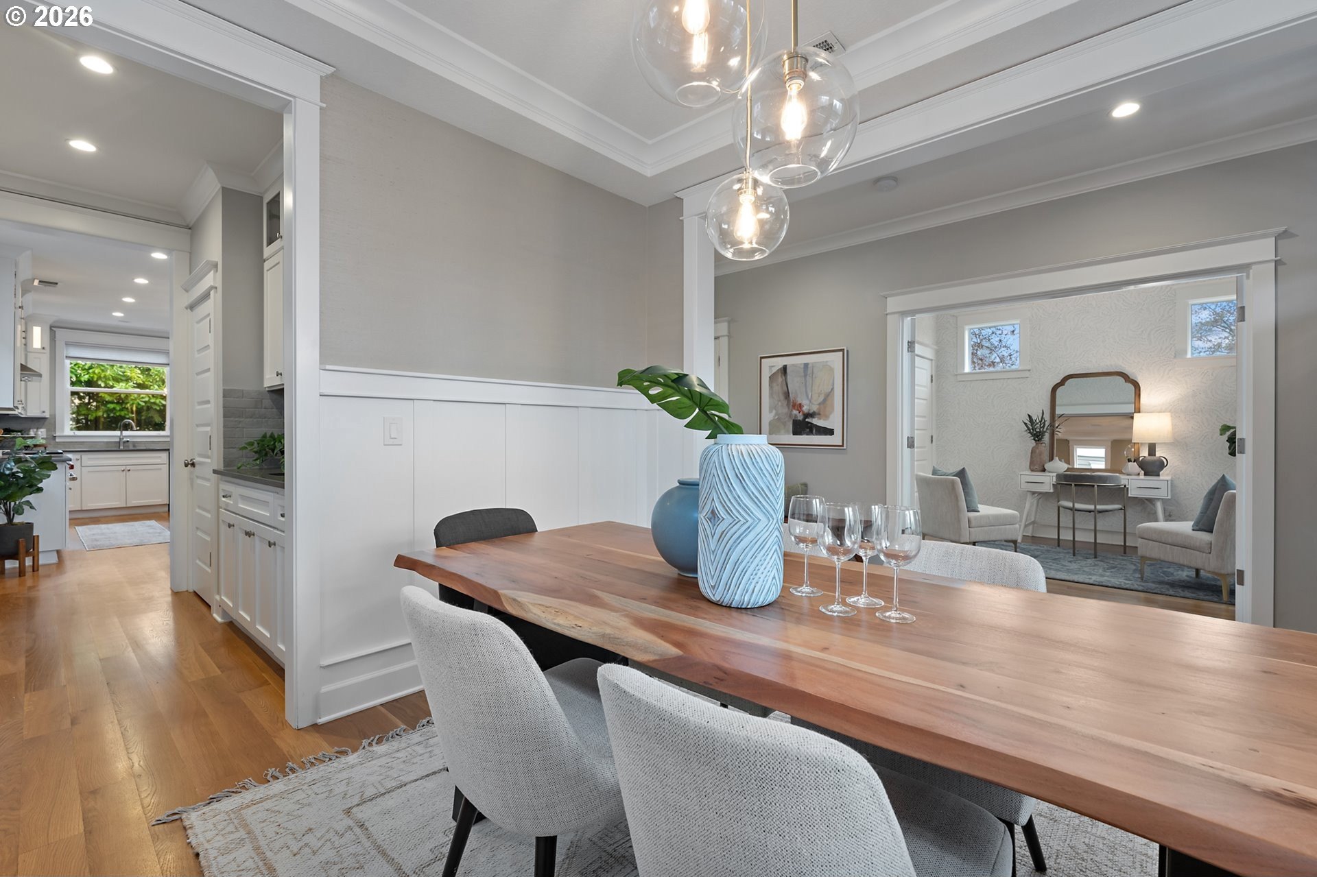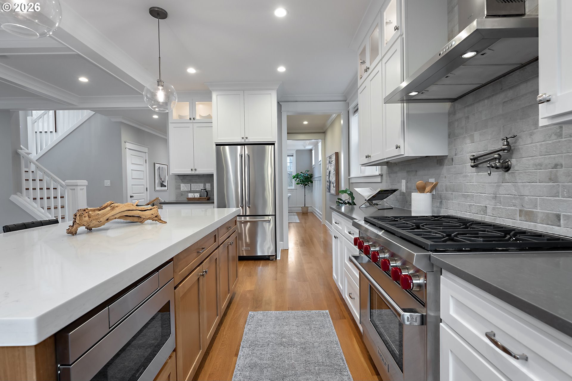 Perfectly located in Eastmoreland Heights, this sophisticated Craftsman offers three levels of thoughtfully designed living space filled with fine finishes and abundant natural light. The main level blends vintage inspiration with modern efficiency, featuring a flowing circular floor plan centered around a stunning chef's kitchen with high-end appliances, custom cabinetry, a butler's pantry, and an expansive island. Upstairs, three bedrooms include a serene primary retreat with a spa-inspired bath and dual walk-in closets. A flexible lower level includes a large recreation, media, or exercise room along with a private bedroom- ideal for guests or home office. Generous storage is found throughout, including a convenient oversized attached garage. Outdoor spaces include a charming covered front porch and a level, fenced backyard ready for spring gardening, play, and gatherings. Join a close-knit community in one of SE Portland's most beloved neighborhoods, within the sought-after Duniway school district, offering exceptional walkability to parks, restaurants, Reed College, and the shops of Woodstock and Moreland. Open Sat. 1/17 from 1-3pm
