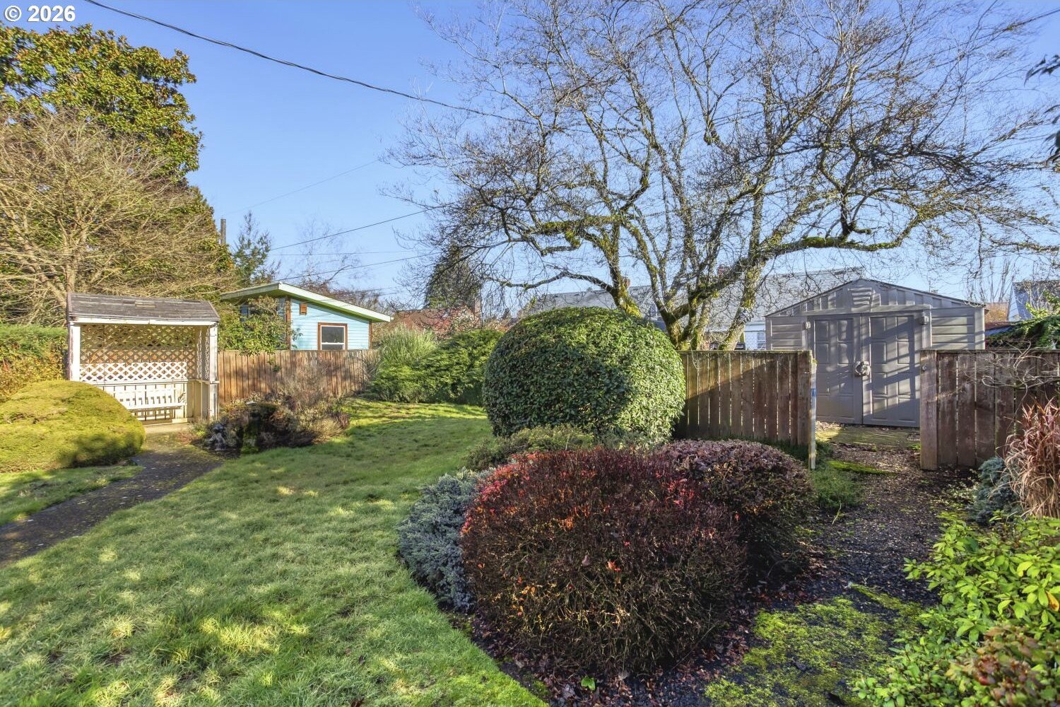 Charming University Park Bungalow! Discover this delightful bungalow nestled on a picturesque, tree-lined street in desirable University Park-just moments from the University of Portland, transit, shops, and nearby parks.Step inside to a warm and inviting living and dining area filled with natural light, flowing into a charming kitchen with pantry. The main level features a comfortable primary bedroom and a second bedroom with full bath. Upstairs, the finished attic offers an expansive bedroom retreat with built-in desk, closet, and additional storage-perfect for guests, work, or play. The lower level adds incredible flexibility with a non-conforming bedroom, full bath, bonus room, and a spacious laundry area complete with washer, dryer, sink, laundry chute, and abundant storage. A dedicated workshop with built-in cabinets makes this home ideal for creatives and DIY enthusiasts alike. Enjoy outdoor living year-round in the beautifully landscaped backyard featuring a covered patio, gazebo, storage shed, and lush greenery-your private urban oasis!Move-in ready and full of character, this University Park gem combines vintage charm with modern convenience in one of North Portland's most beloved neighborhoods. [Home Energy Score = 4. HES Report