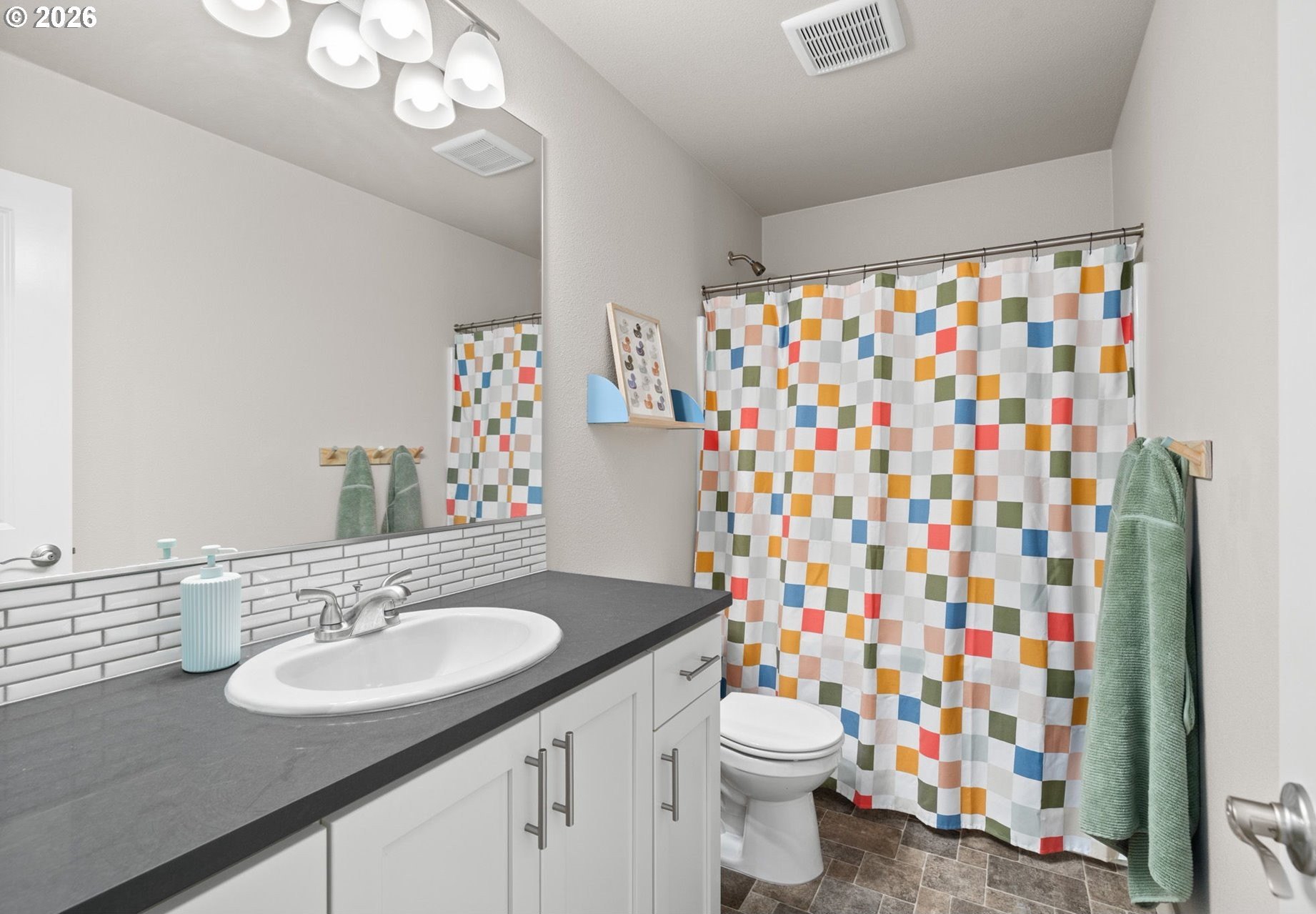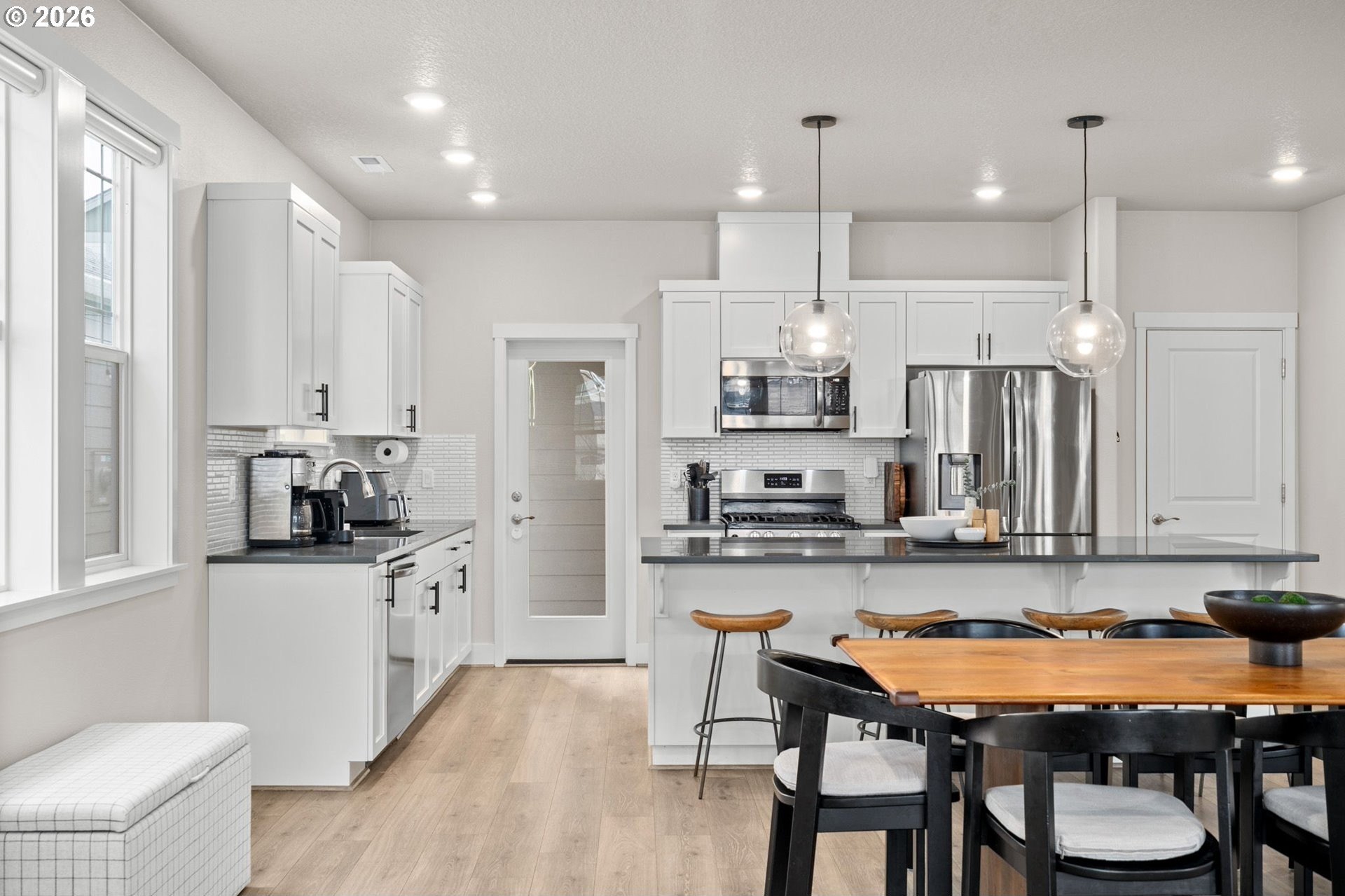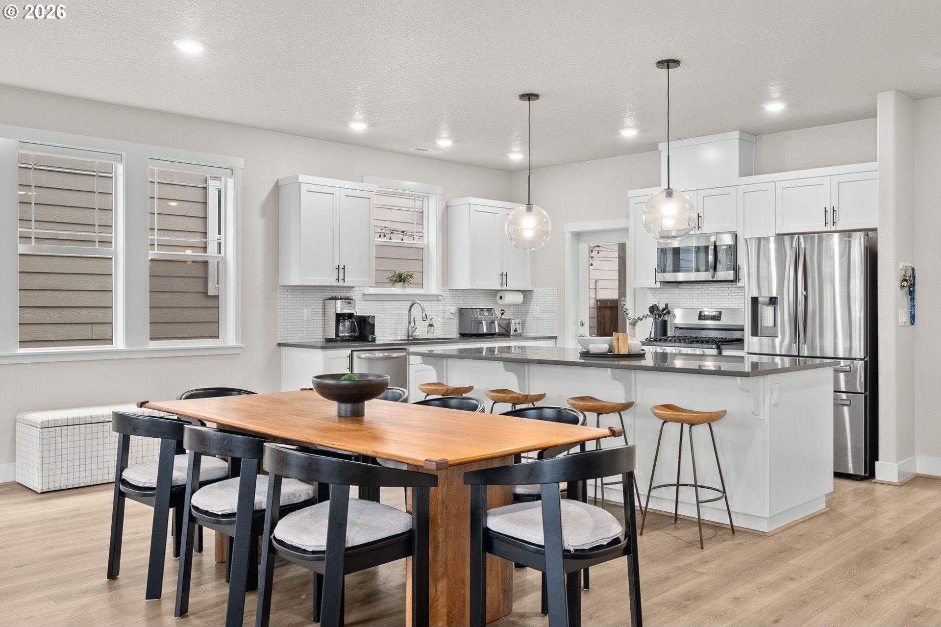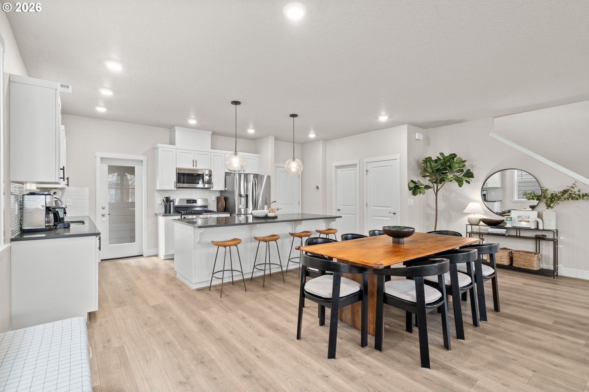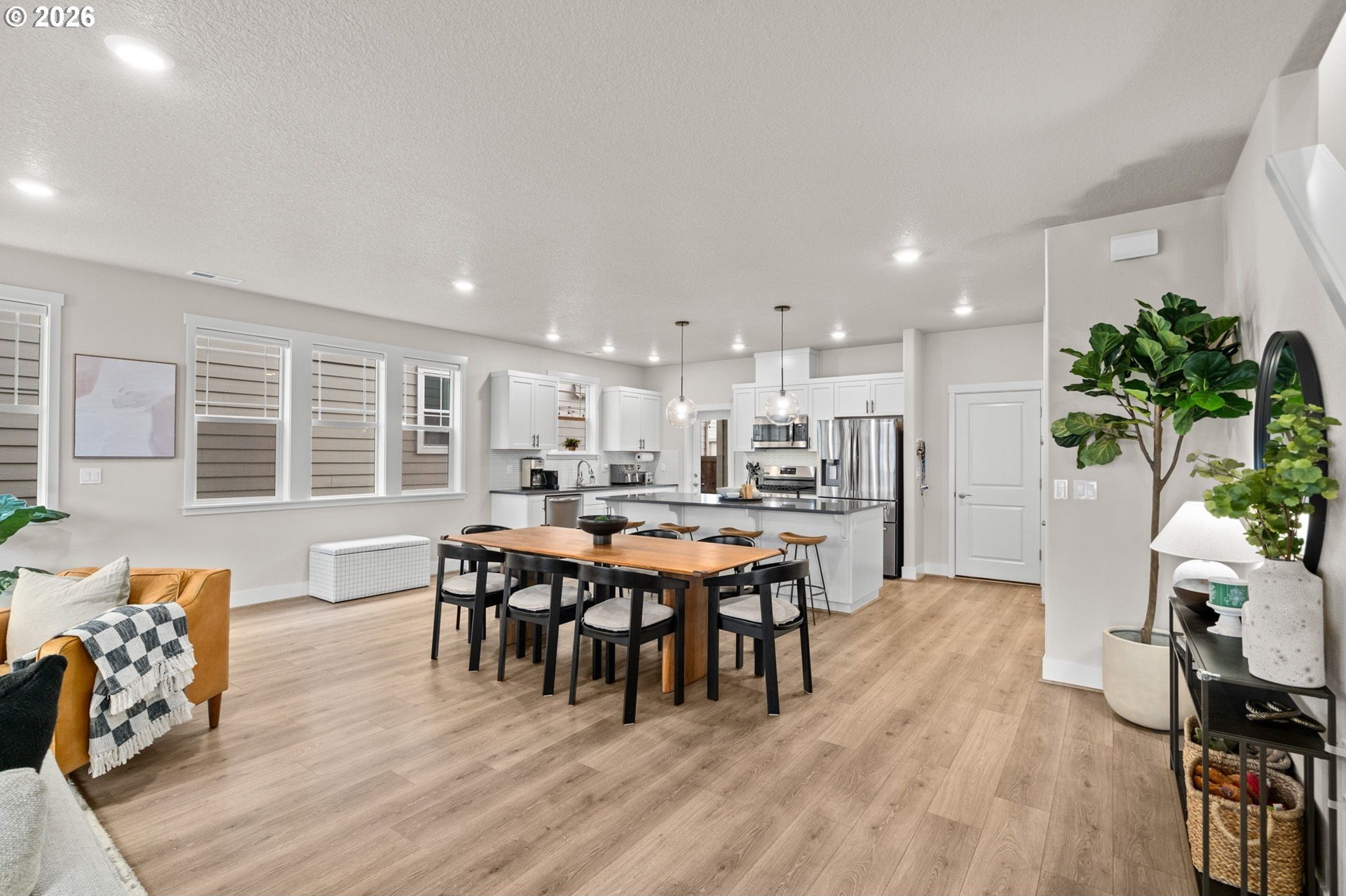 Welcome home to this stunning 2020-built two-story traditional offering the perfect blend of modern comfort and timeless style. Featuring 3 bedrooms, 2.5 baths, and 1,791 sq. ft., this impeccably maintained home lives like new with thoughtful upgrades throughout.Step inside to an open and bright main level with luxury vinyl plank flooring, designer finishes, and expansive living and dining spaces ideal for entertaining. The gorgeous kitchen is the heart of the home, showcasing slab quartz countertops, stainless steel appliances, a large island, and sleek cabinetry.Upstairs, the spacious primary suite includes a walk-in closet and spa-like bath with quartz countertops and dual sinks. Two additional bedrooms, a full bath, and upper-level laundry provide everyday convenience.Outside, enjoy the low-maintenance fully turfed backyard with custom paver patio-perfect for year-round play, relaxing, or BBQ season. Additional features include power blinds, energy-efficient systems, and modern upgraded materials from top to bottom.HOA offers exceptional amenities including a pool, clubhouse, weight room, multiple parks, and is ideally situated by Progress Ridge, shopping, dining, and outdoor recreation.A truly turnkey property in a desirable community-nothing left to do but move in and enjoy. Schedule your showing today!