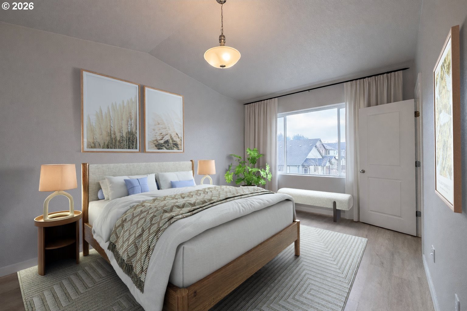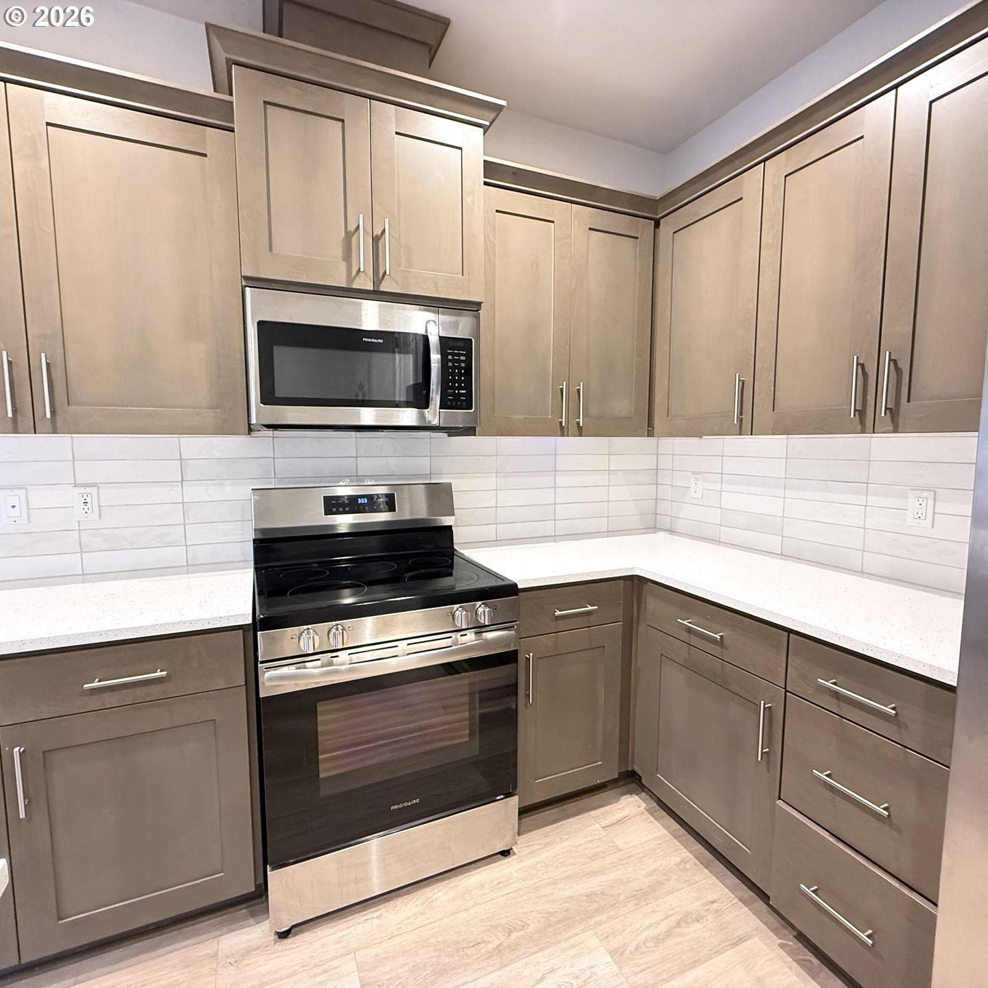 Over $20,000 in upgrades make this like-new townhome a standout. With no waiting for this coveted floor plan to become available, it's ready now. Upgraded Scandinavian-inspired wide-plank flooring runs throughout both levels, delivering a fresh, natural aesthetic that feels both modern and timeless, making rooms feel larger and more open, aligning perfectly with today's preference for simple, uncluttered living. The open great room layout with high ceilings is easy to live in and easy to entertain, featuring generous quartz counter space, a separate island, and an eating bar for casual dining and gathering. Cozy up by the modern corner electric fireplace on cooler evenings, and appreciate the designer interior paint in "Cashmere" that keeps the look bright and polished.Upstairs, the vaulted primary suite creates a true retreat, offering an airy, comfortable feel, an en suite bath, and a large walk-in closet. Two additional bedrooms are thoughtfully positioned across from the primary, with a full bath and laundry (including a Frigidaire washer and dryer) in between, creating a layout that functions beautifully day-to-day. Additional upgrades include slate-stained cabinetry with nickel bar pulls, a Moen Align chrome kitchen faucet, a Frigidaire side-by-side refrigerator, electronic keypad entry, a quartz package, and a backyard upgrade. Front yard maintenance is included, so weekends stay a little more yours.This is the kind of home that disappears while you're still thinking about it, the upgrades are done, the timing is now, and the opportunity won't linger. Blink, and it's pending. If you've been watching for this floor plan, this is your moment.