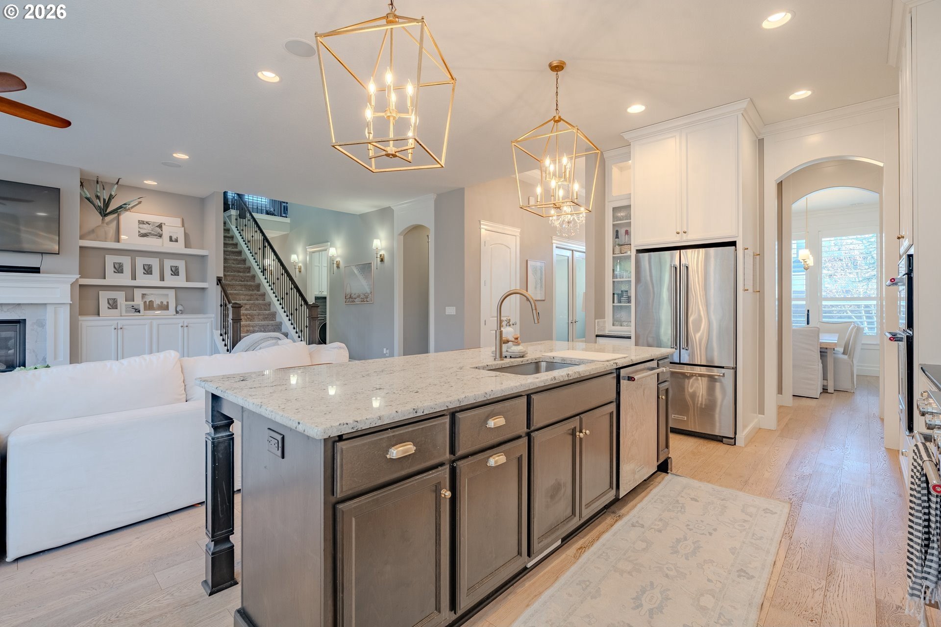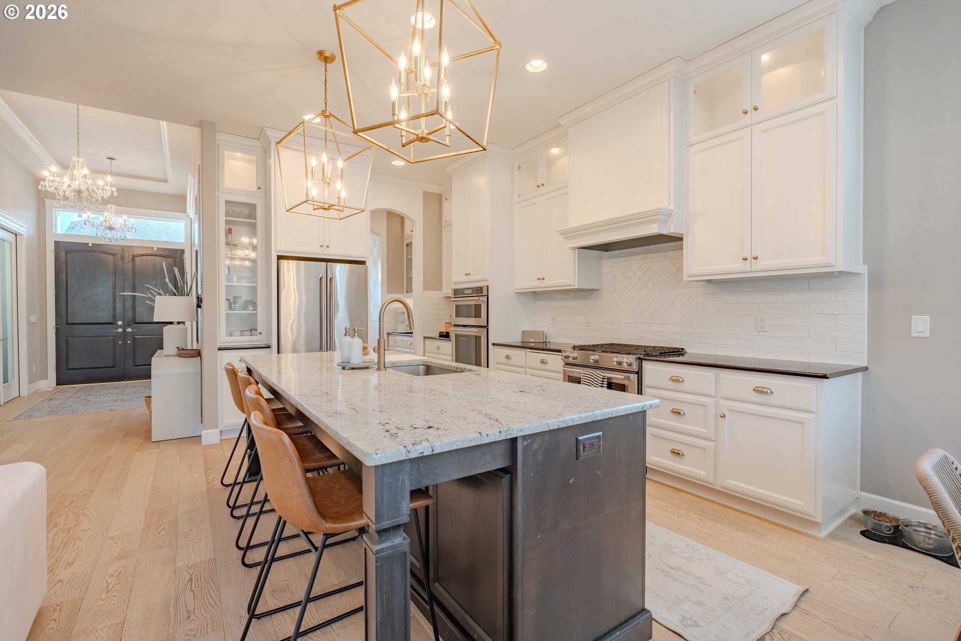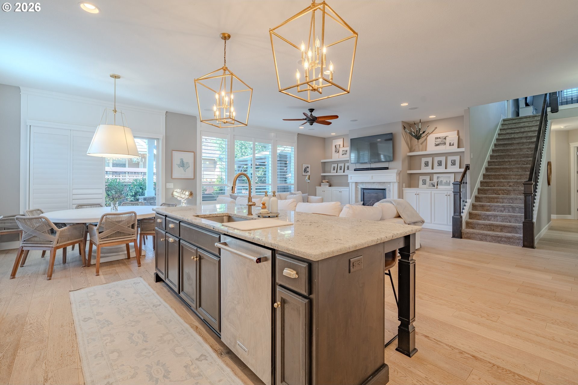 Located in the coveted Erickson Farms neighborhood, this exceptional custom home offers timeless design, quality craftsmanship, and elevated finishes throughout. From the moment you arrive, its inviting curb appeal and well-maintained grounds provide a welcoming introduction to the elegance found inside. Upon entering, the entry immediately impresses with soaring 12-foot ceilings, gorgeous wide-plank oak wood floors, and substantial millwork, establishing an immediate sense of scale and warmth. Open sight lines and abundant natural light draw you seamlessly into the main living areas, creating an open, inviting, sophisticated atmosphere. Custom finishes throughout include crown molding, extensive built-ins, custom cabinetry, plantation shutters, and designer lighting. The great room centers around a gourmet kitchen, featuring an oversized eat-island with slab granite surfaces, stainless appliances, a butler's pantry with pass-through, and a breakfast nook, all opening to the family room with a gas fireplace accented by a beautiful marble surround and extensive built-ins. The main-level owner's suite offers French doors, tray ceiling, walk-in closet, and lux ensuite with a clawfoot cast-iron soaking tub, dramatic marble walk-in shower framed by an arched full-height stone surround, polished stone floors, and dual vanities. A second main-level suite with full bath provides flexibility for guests or multi-generational living. Upstairs, enjoy a loft or bonus/family room, 2 spacious vaulted bedrooms, and full bathroom. Additional highlights include formal dining room, main-level office, and oversized laundry room. Outdoors, the large, covered tongue-and-groove patio with gas hookup invites effortless entertaining amid thoughtfully designed landscaping and impeccably maintained grounds. Located near Felida Park, schools, and local dining, this exceptional home offers elevated living in one of Felida's most desirable neighborhoods. Open House: Sunday, Jan. 18, 12 - 2pm!