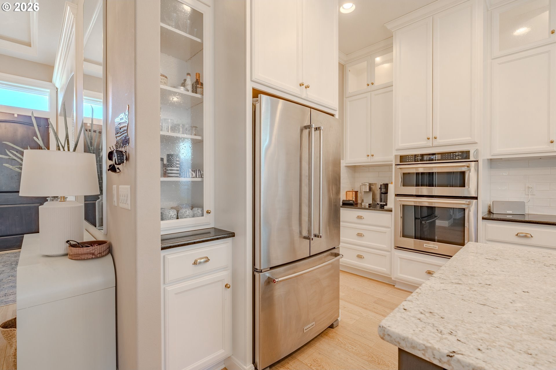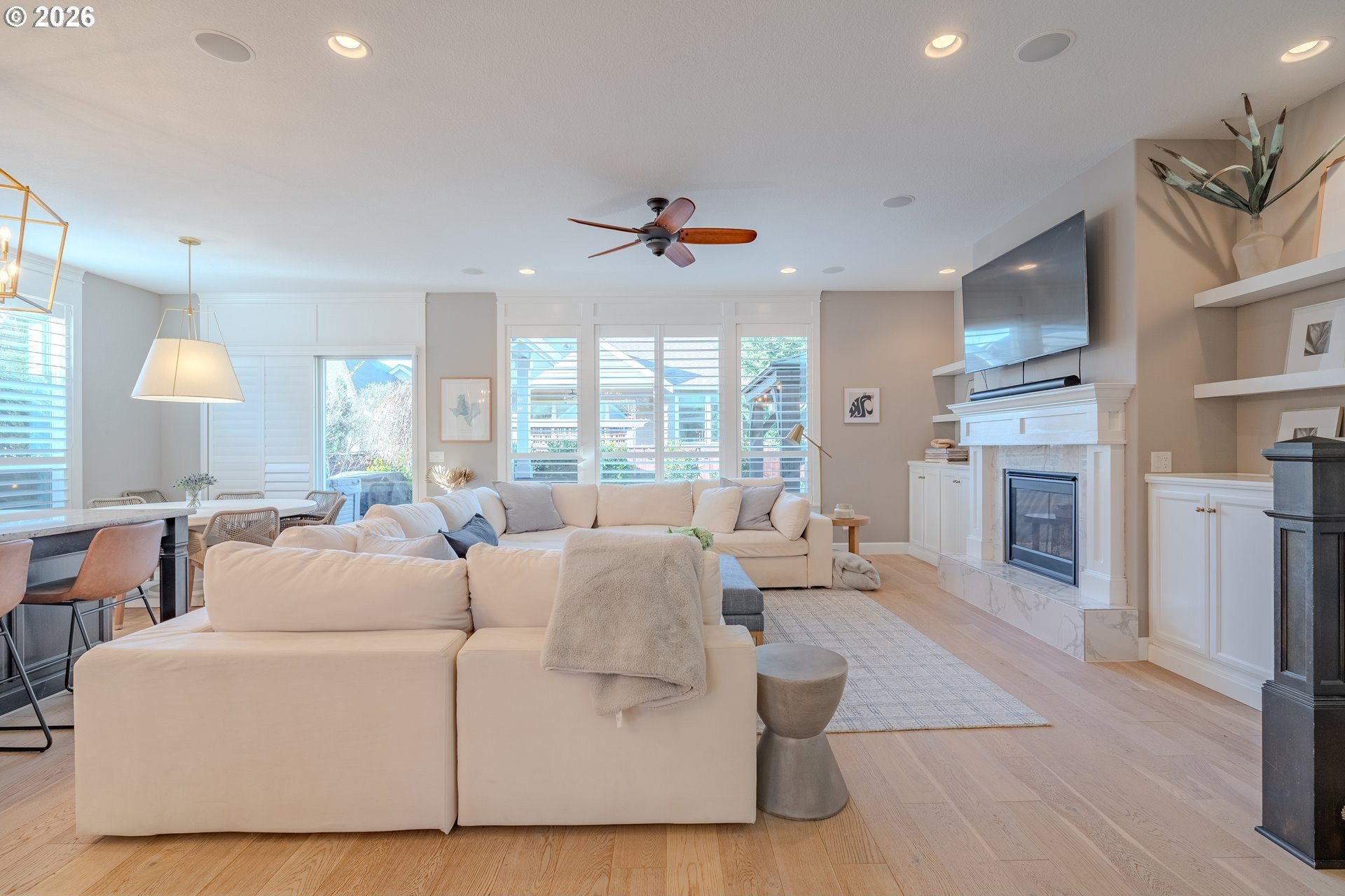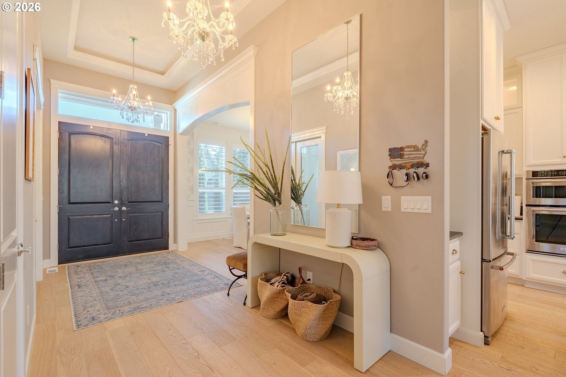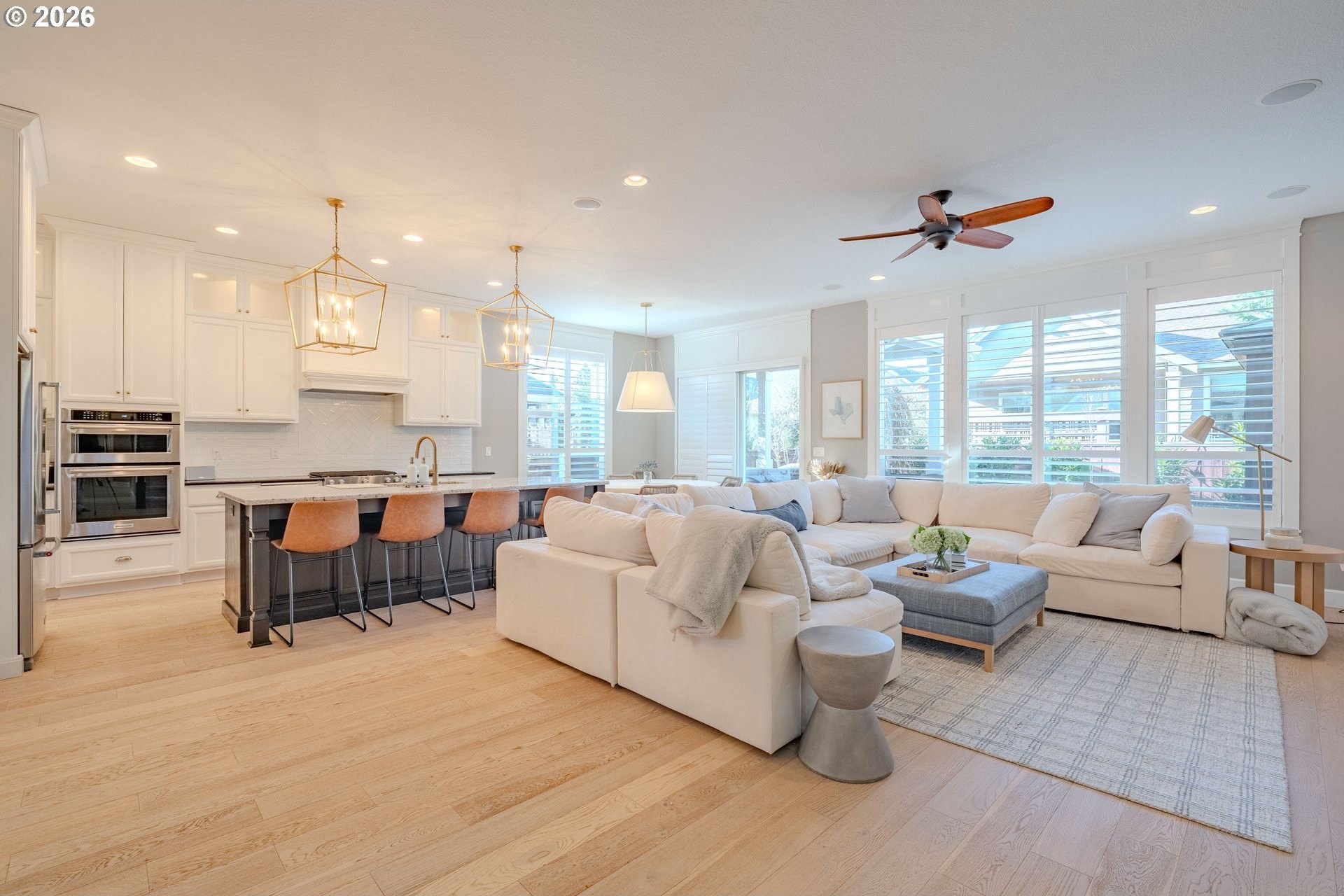 Located in the coveted Erickson Farms neighborhood, this exceptional custom home offers timeless design, quality craftsmanship, and elevated finishes throughout. From the moment you arrive, its inviting curb appeal and well-maintained grounds provide a welcoming introduction to the elegance found inside. Upon entering, the entry immediately impresses with soaring 12-foot ceilings, gorgeous wide-plank oak wood floors, and substantial millwork, establishing an immediate sense of scale and warmth. Open sight lines and abundant natural light draw you seamlessly into the main living areas, creating an open, inviting, sophisticated atmosphere. Custom finishes throughout include crown molding, extensive built-ins, custom cabinetry, plantation shutters, and designer lighting. The great room centers around a gourmet kitchen, featuring an oversized eat-island with slab granite surfaces, stainless appliances, a butler's pantry with pass-through, and a breakfast nook, all opening to the family room with a gas fireplace accented by a beautiful marble surround and extensive built-ins. The main-level owner's suite offers French doors, tray ceiling, walk-in closet, and lux ensuite with a clawfoot cast-iron soaking tub, dramatic marble walk-in shower framed by an arched full-height stone surround, polished stone floors, and dual vanities. A second main-level suite with full bath provides flexibility for guests or multi-generational living. Upstairs, enjoy a loft or bonus/family room, 2 spacious vaulted bedrooms, and full bathroom. Additional highlights include formal dining room, main-level office, and oversized laundry room. Outdoors, the large, covered tongue-and-groove patio with gas hookup invites effortless entertaining amid thoughtfully designed landscaping and impeccably maintained grounds. Located near Felida Park, schools, and local dining, this exceptional home offers elevated living in one of Felida's most desirable neighborhoods. Open House: Sunday, Jan. 18, 12 - 2pm!
