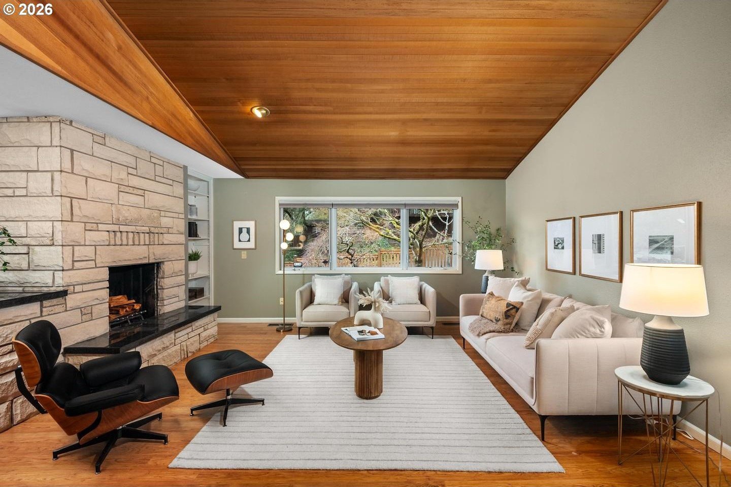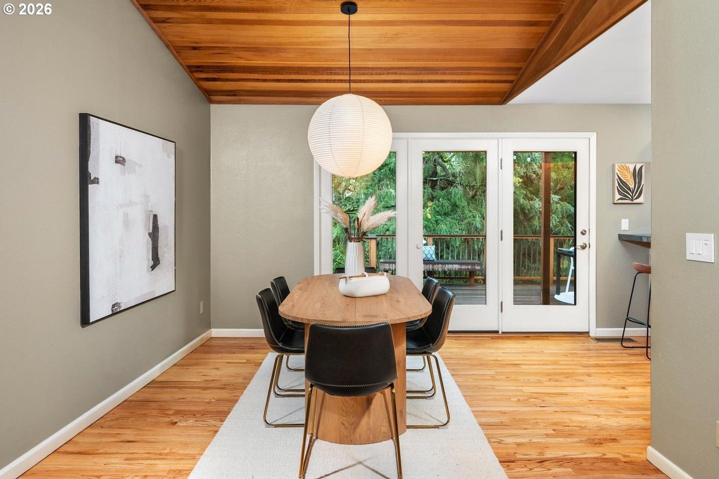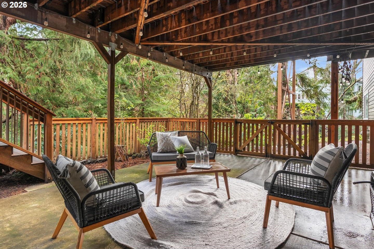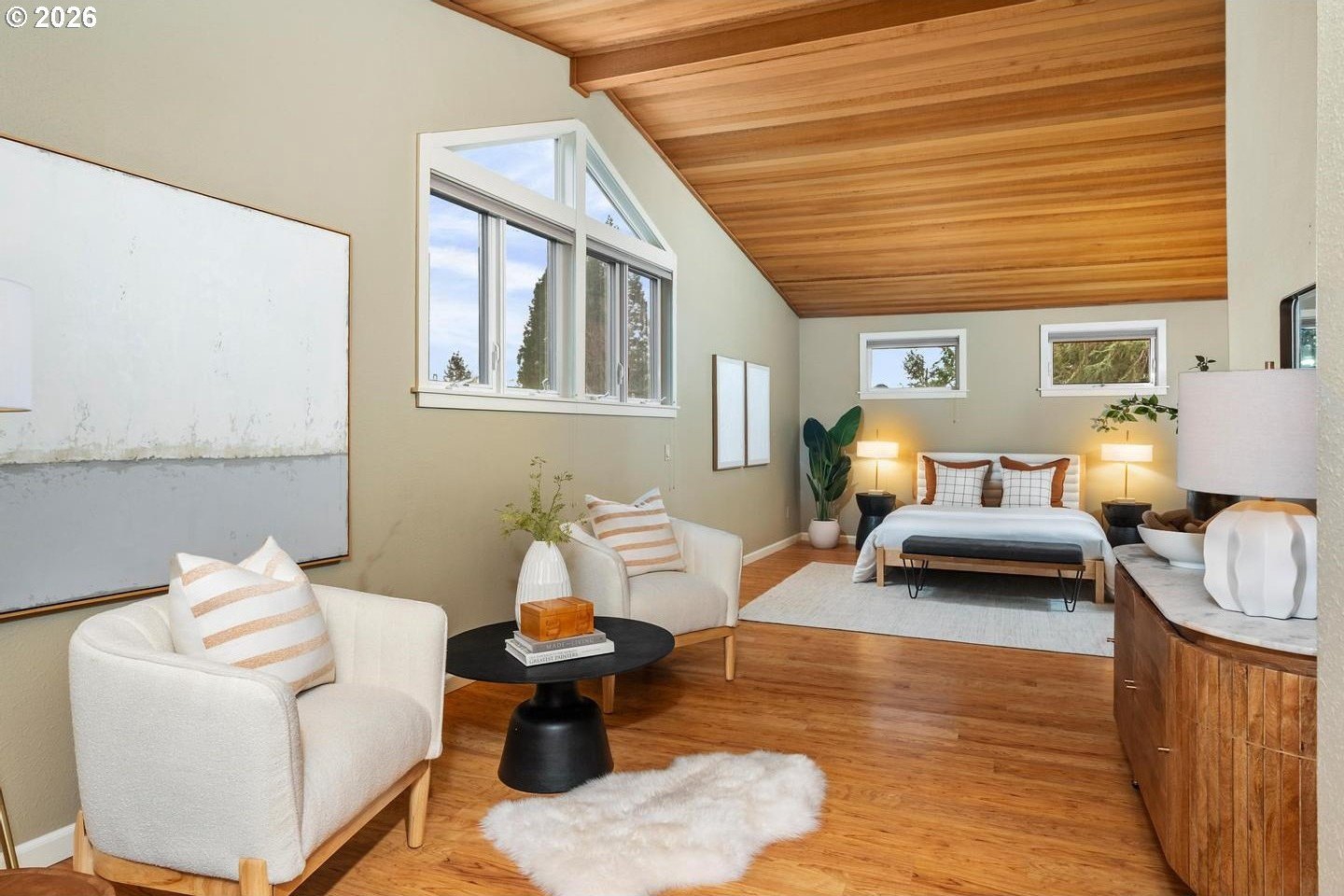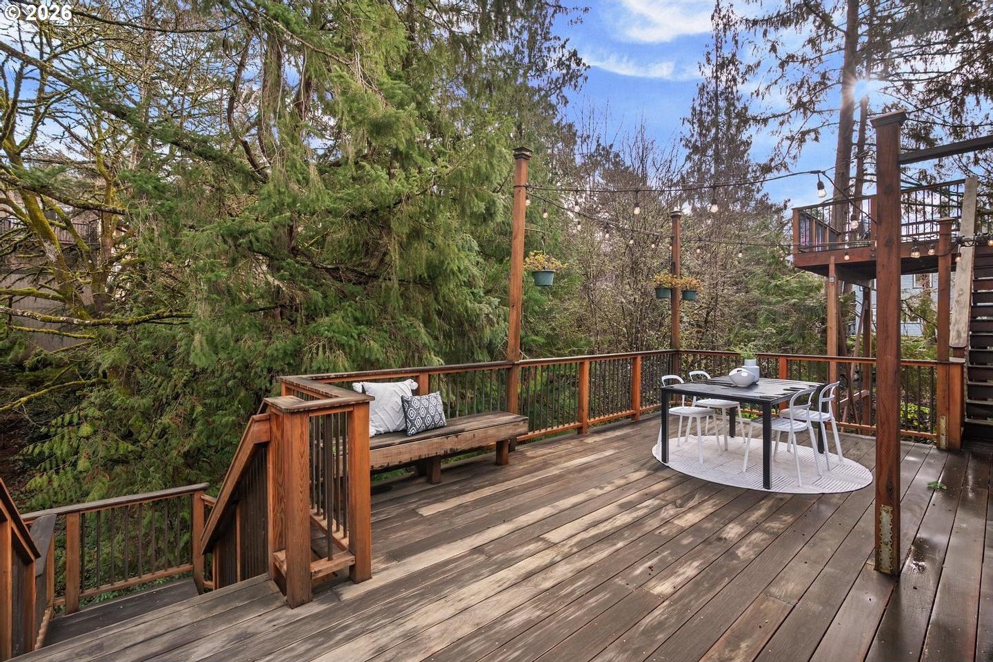 Originally built in 1981, this stunning northwest contemporary stands proudly on almost a quarter acre lot in the sought after West Haven neighborhood. As you approach the home you are welcomed by a paver patio, stunning plantings and a grand front door landing. Entering the home you find yourself in a large foyer with custom flagstone underfoot, drawing you into the home's gorgeous main floor. The living room is magazine-worthy, boasting vaulted ceilings clad in gorgeous clear vertical grain cedar, updated flooring and a stunning wood burning fireplace that anchors the room. Moving seamlessly into the dining room and beyond to the kitchen you immediately witness the home's mid-century influences highlighted by its surface treatments and classic circular flow pattern. The kitchen has been updated to include granite counters, maple shaker cabinetry and stainless steel appliances while the dining room boasts an expansive three panel, full light French door to the backyard deck.Moving beyond the almost 1000 square foot main floor you will find a private, upstairs primary suite. Vaulted ceilings clad in cedar, updated flooring and its own private deck balance perfectly against the stunning, remodeled en suite bathroom which features a custom, double vanity, free standing tub, gorgeous tiled shower and walk-in closet. Moving back downstairs you will find approximately 1500 square feet of finished space in the daylight basement. Three additional bedrooms, a third bathroom, laundry room and large family room / media room highlight the lower level which also offers direct access to a private patio through expansive patio doors. As with the careful interior stewardship, the exterior has been carefully updated and maintained. Multi-level decking, featuring IPE hardwoods offer direct access to the backyard from the upper floors, while terraced grounds maximize the property's utility and stunning backdrop which includes a picturesque creek & established trees.