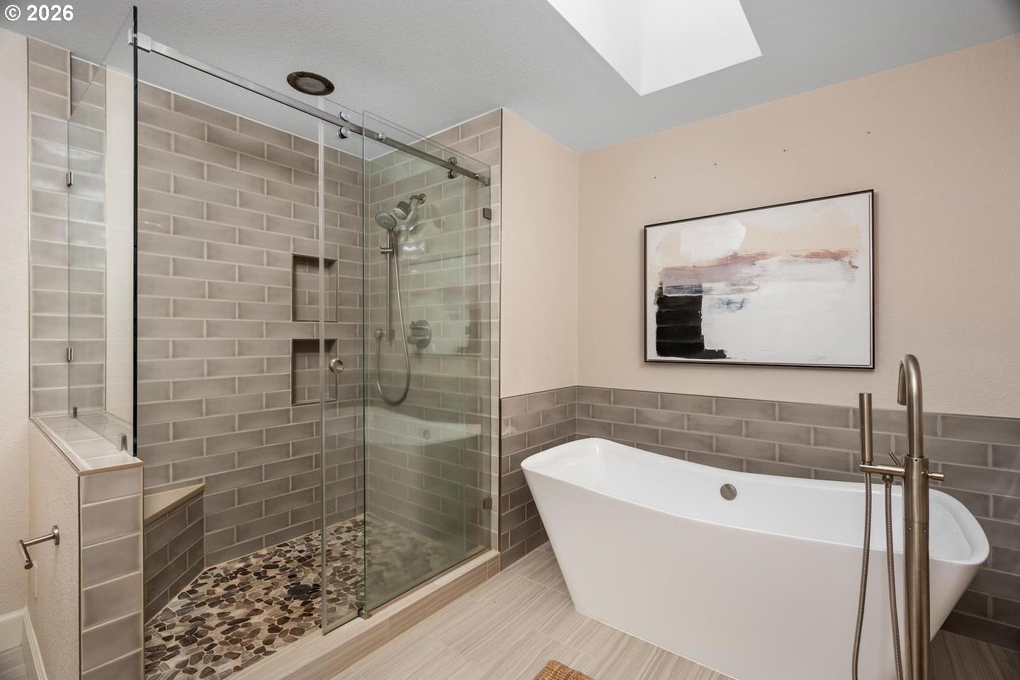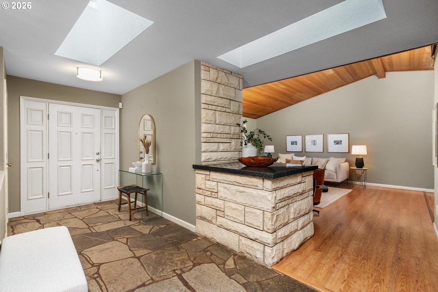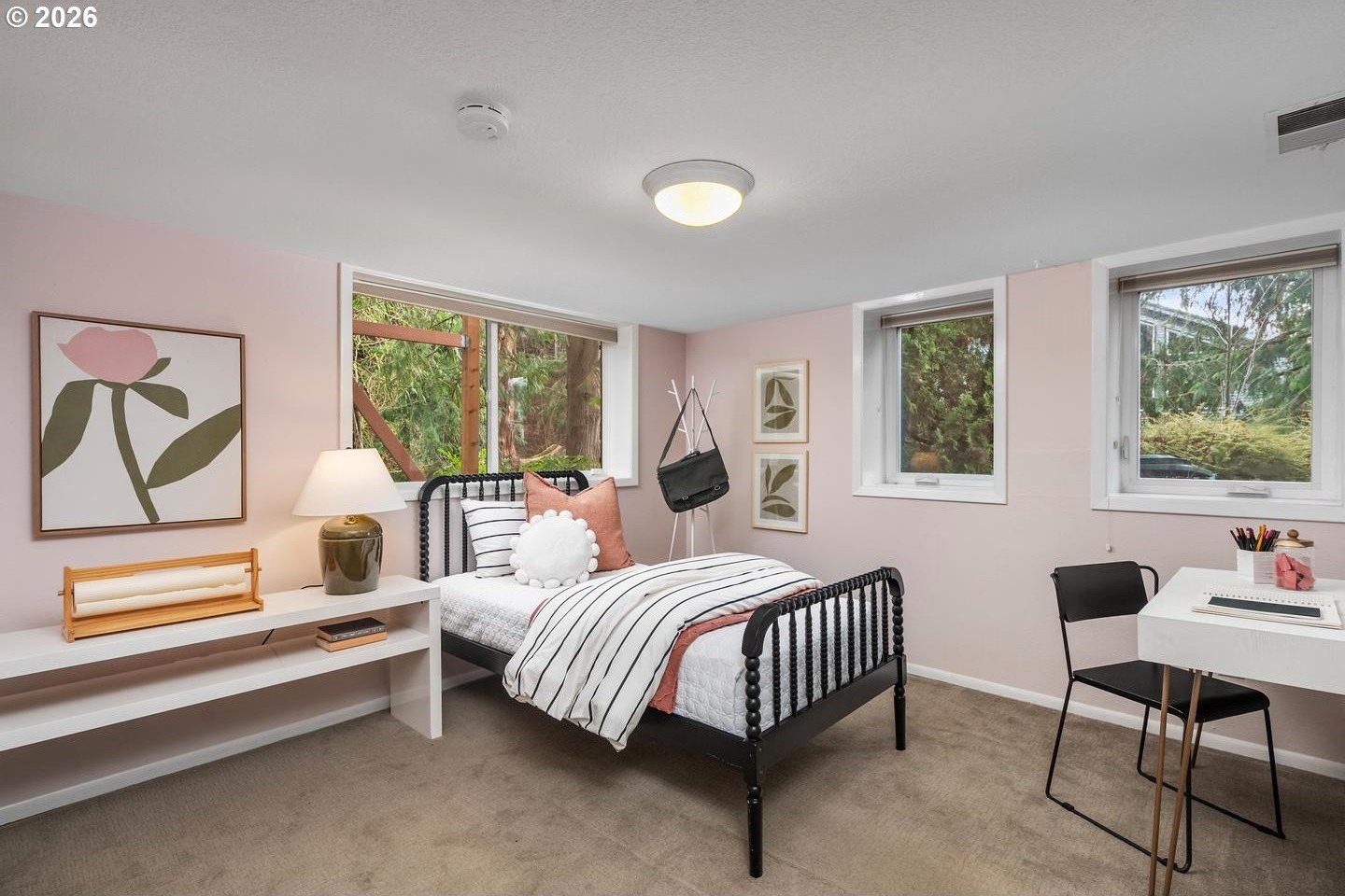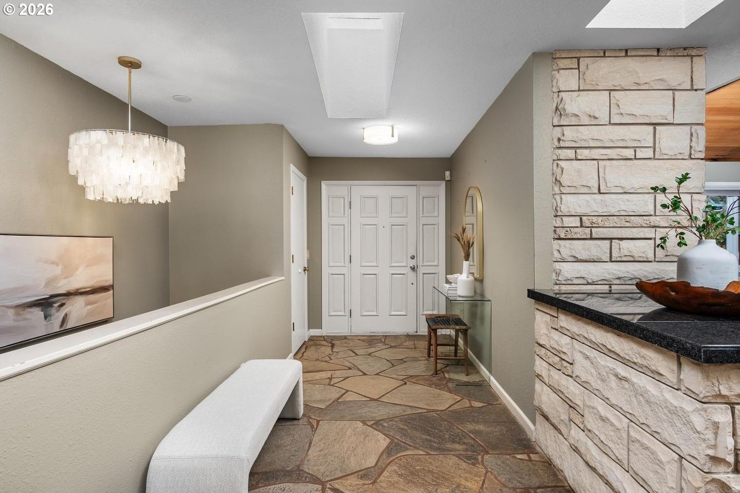 Originally built in 1981, this stunning northwest contemporary stands proudly on almost a quarter acre lot in the sought after West Haven neighborhood. As you approach the home you are welcomed by a paver patio, stunning plantings and a grand front door landing. Entering the home you find yourself in a large foyer with custom flagstone underfoot, drawing you into the home's gorgeous main floor. The living room is magazine-worthy, boasting vaulted ceilings clad in gorgeous clear vertical grain cedar, updated flooring and a stunning wood burning fireplace that anchors the room. Moving seamlessly into the dining room and beyond to the kitchen you immediately witness the home's mid-century influences highlighted by its surface treatments and classic circular flow pattern. The kitchen has been updated to include granite counters, maple shaker cabinetry and stainless steel appliances while the dining room boasts an expansive three panel, full light French door to the backyard deck.Moving beyond the almost 1000 square foot main floor you will find a private, upstairs primary suite. Vaulted ceilings clad in cedar, updated flooring and its own private deck balance perfectly against the stunning, remodeled en suite bathroom which features a custom, double vanity, free standing tub, gorgeous tiled shower and walk-in closet. Moving back downstairs you will find approximately 1500 square feet of finished space in the daylight basement. Three additional bedrooms, a third bathroom, laundry room and large family room / media room highlight the lower level which also offers direct access to a private patio through expansive patio doors. As with the careful interior stewardship, the exterior has been carefully updated and maintained. Multi-level decking, featuring IPE hardwoods offer direct access to the backyard from the upper floors, while terraced grounds maximize the property's utility and stunning backdrop which includes a picturesque creek & established trees.