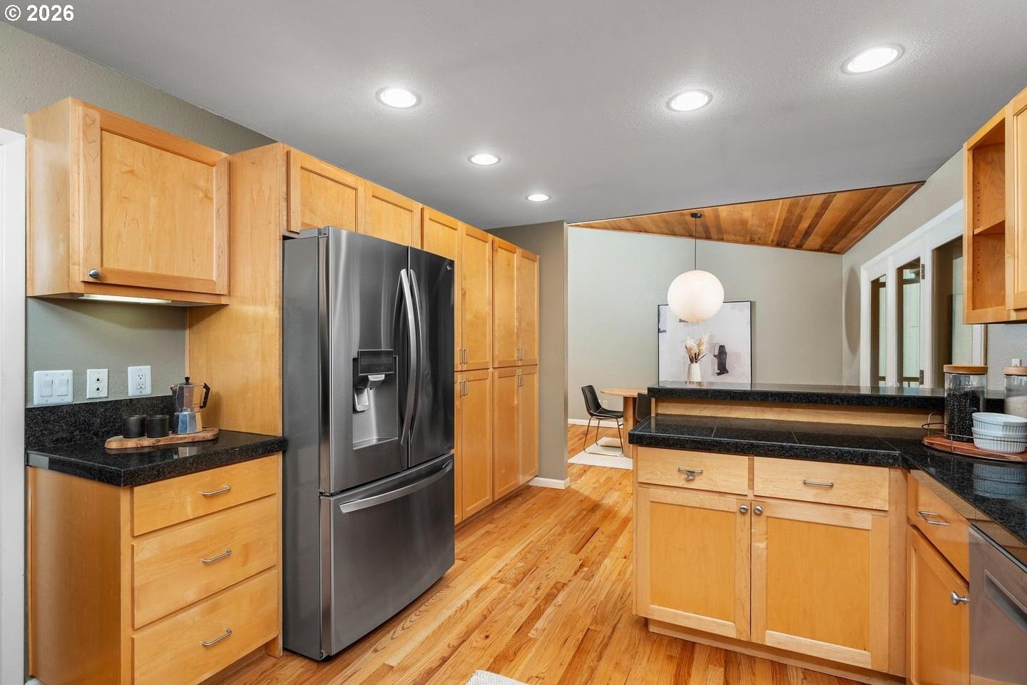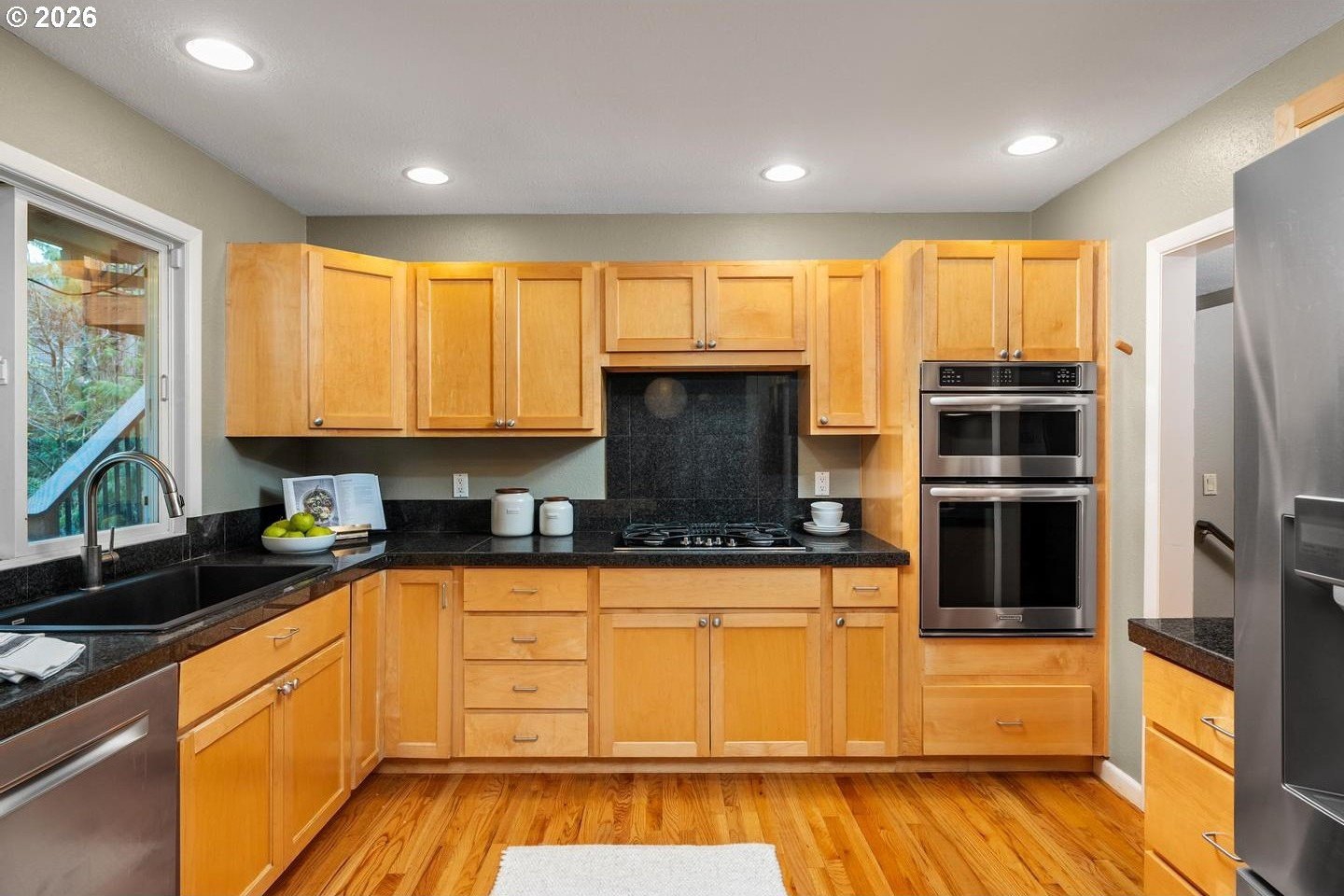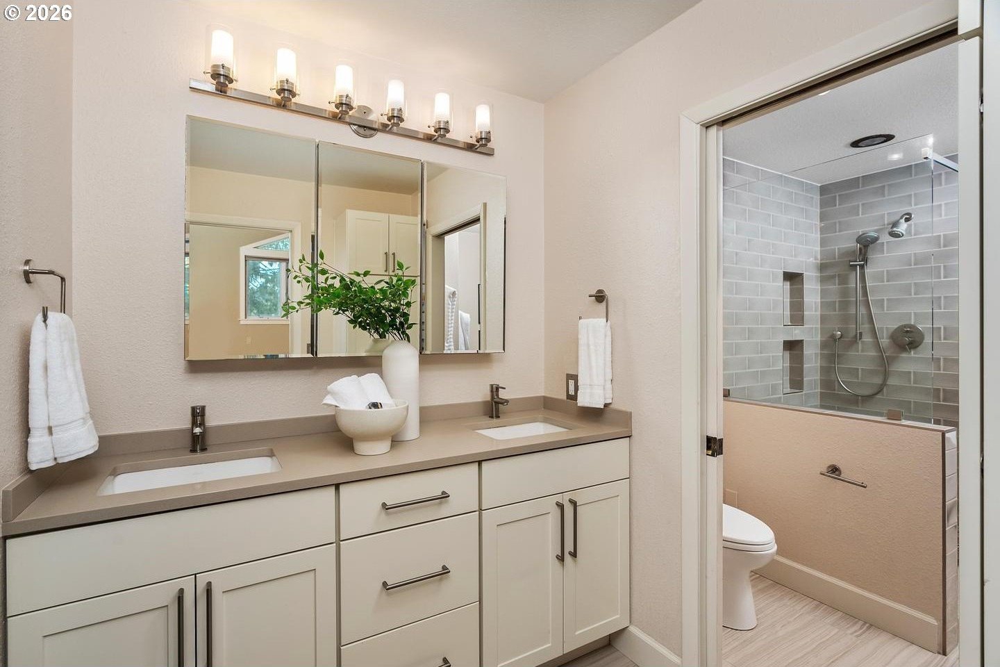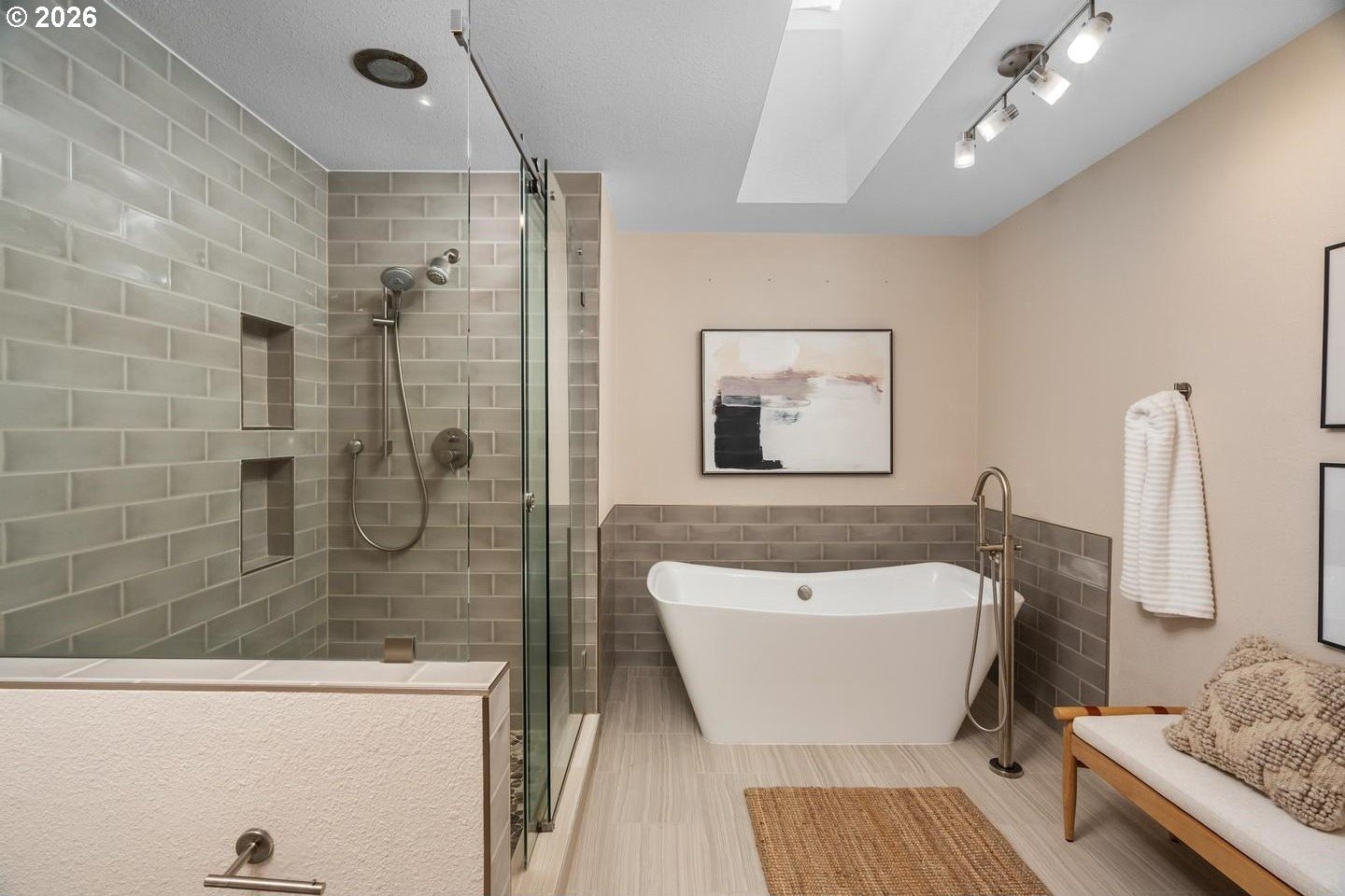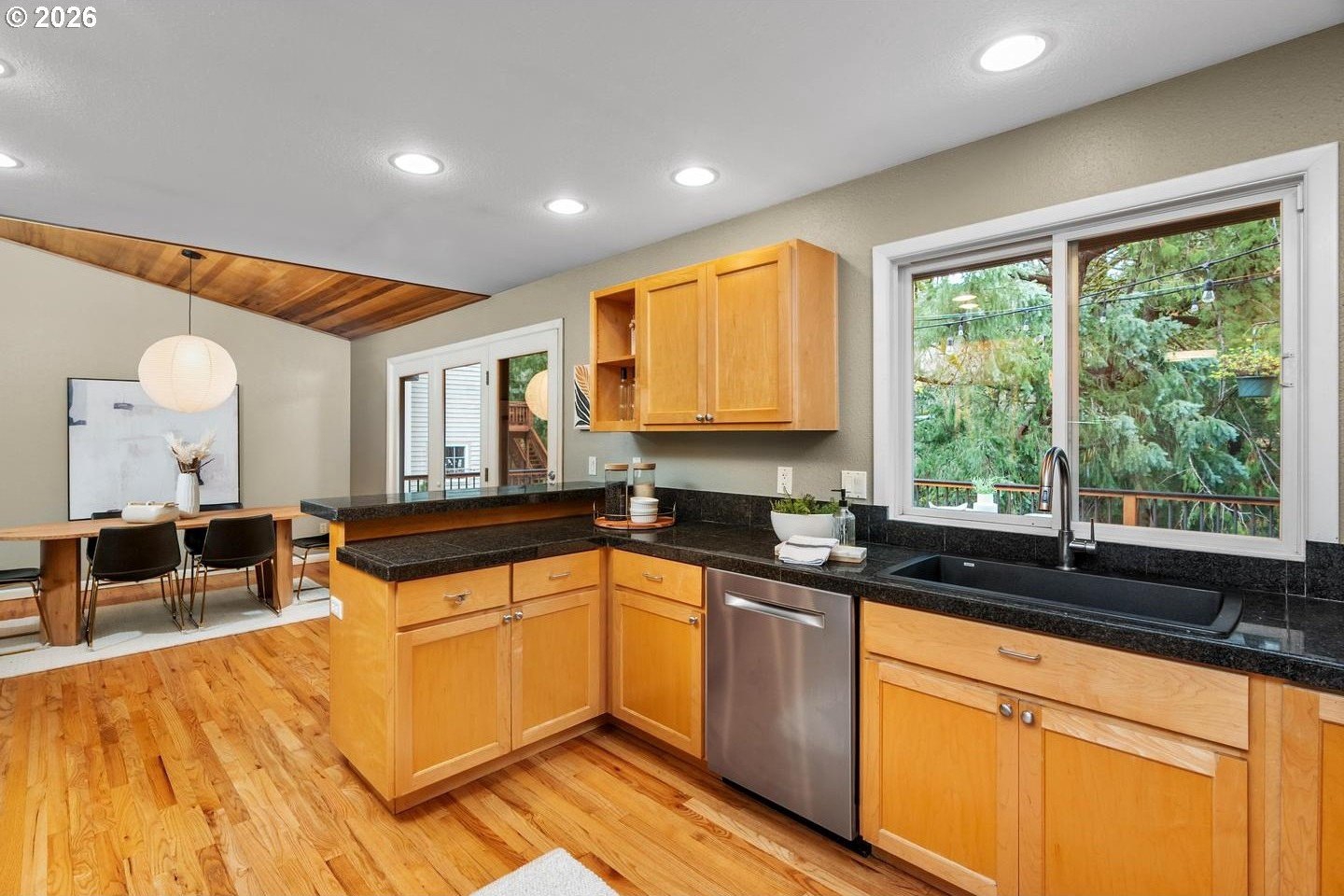 Originally built in 1981, this stunning northwest contemporary stands proudly on almost a quarter acre lot in the sought after West Haven neighborhood. As you approach the home you are welcomed by a paver patio, stunning plantings and a grand front door landing. Entering the home you find yourself in a large foyer with custom flagstone underfoot, drawing you into the home's gorgeous main floor. The living room is magazine-worthy, boasting vaulted ceilings clad in gorgeous clear vertical grain cedar, updated flooring and a stunning wood burning fireplace that anchors the room. Moving seamlessly into the dining room and beyond to the kitchen you immediately witness the home's mid-century influences highlighted by its surface treatments and classic circular flow pattern. The kitchen has been updated to include granite counters, maple shaker cabinetry and stainless steel appliances while the dining room boasts an expansive three panel, full light French door to the backyard deck.Moving beyond the almost 1000 square foot main floor you will find a private, upstairs primary suite. Vaulted ceilings clad in cedar, updated flooring and its own private deck balance perfectly against the stunning, remodeled en suite bathroom which features a custom, double vanity, free standing tub, gorgeous tiled shower and walk-in closet. Moving back downstairs you will find approximately 1500 square feet of finished space in the daylight basement. Three additional bedrooms, a third bathroom, laundry room and large family room / media room highlight the lower level which also offers direct access to a private patio through expansive patio doors. As with the careful interior stewardship, the exterior has been carefully updated and maintained. Multi-level decking, featuring IPE hardwoods offer direct access to the backyard from the upper floors, while terraced grounds maximize the property's utility and stunning backdrop which includes a picturesque creek & established trees.