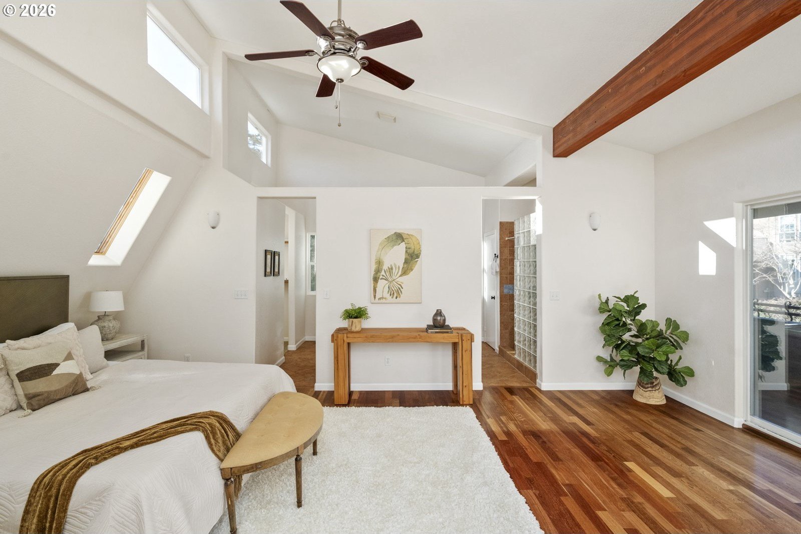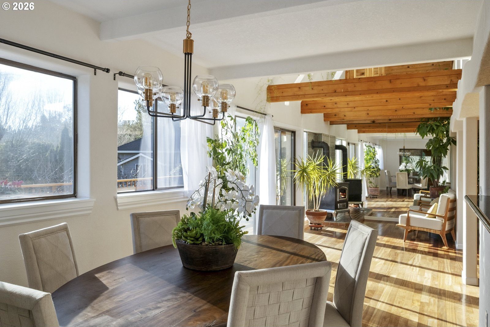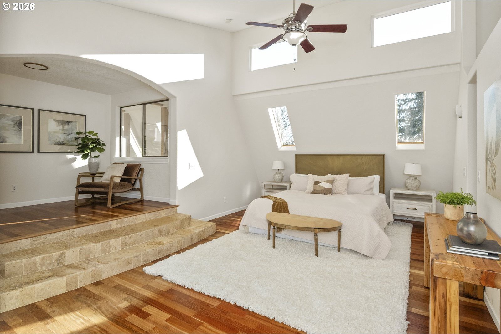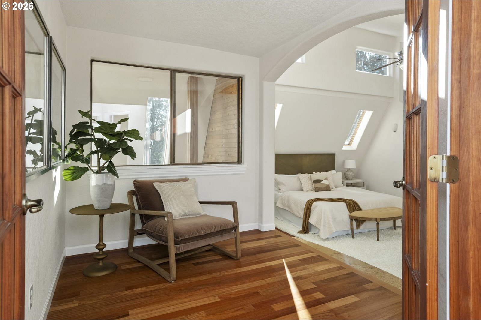 Located on a private quarter-acre with views over the neighborhood, this thoughtfully remodeled home offers architectural character, exceptional privacy, and a peaceful setting in a safe, established neighborhood.Brazilian cherry hardwood floors, vaulted ceilings, wood-wrapped beams, and graceful arches create warmth and visual interest throughout. The spacious kitchen serves as the heart of the home, ideal for both daily living and entertaining, with cherry cabinetry, granite countertops, and stainless steel appliances. Living spaces are filled with natural light and anchored by a cozy wood stove, while a wood-paneled game room adds versatility. Unique architectural elements include a third-floor loft perfect for an art studio or creative space, as well as an office loft overlooking the main living area. The primary suite features a private covered balcony with views of the front of the property-an inviting spot for morning coffee-along with an en-suite bath offering vaulted ceilings, a jetted tub, and walk-in shower. Ample parking includes a two-car garage with custom doors, a two-car carport, and dedicated RV parking. New roof, hot water heater, paint, lights and hardware. Enjoy a highly walkable location just minutes from Starbucks and New Seasons Market. This home blends privacy, thoughtful design, and everyday livability in a truly distinctive setting....don't miss it! [Home Energy Score = 2. HES Report