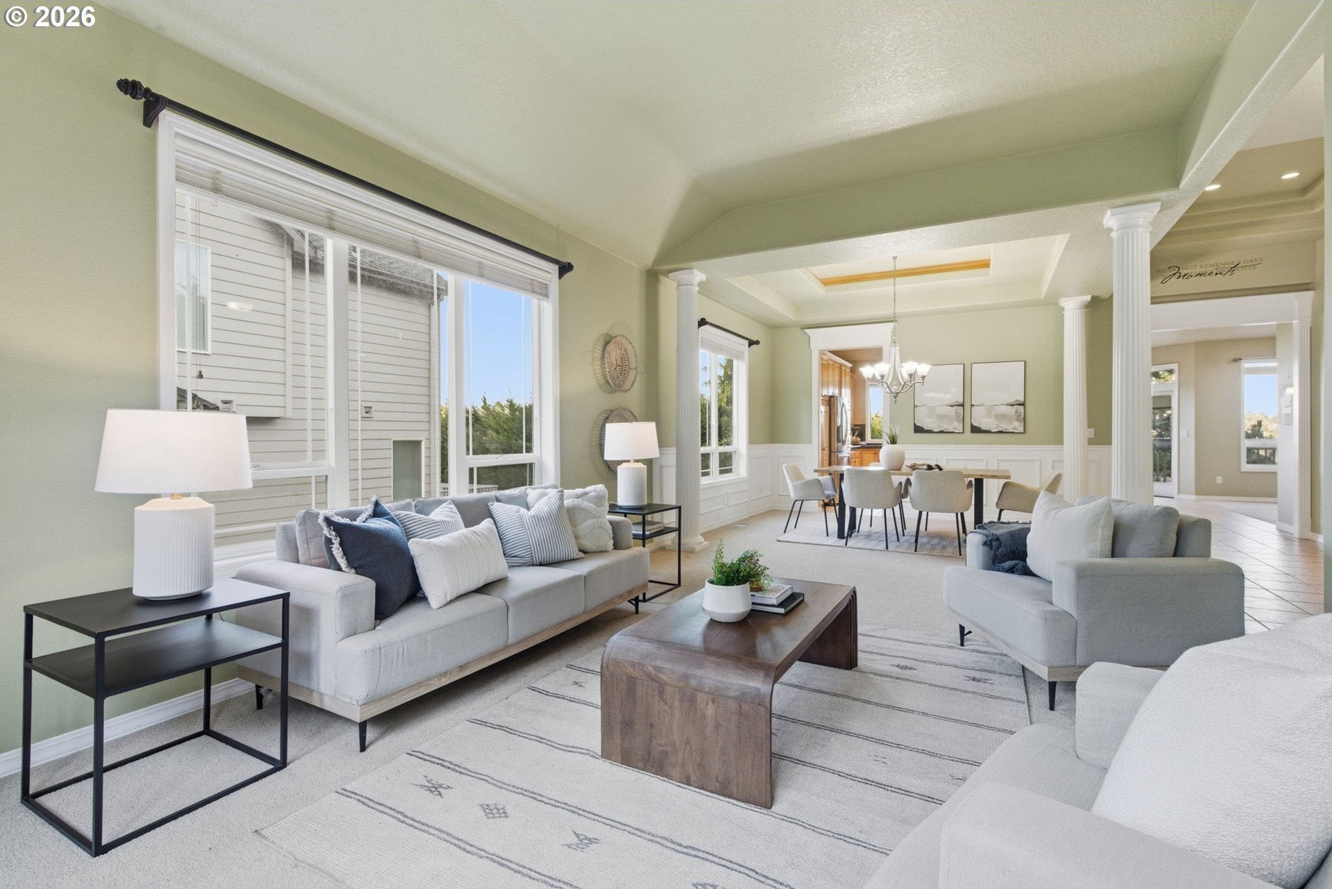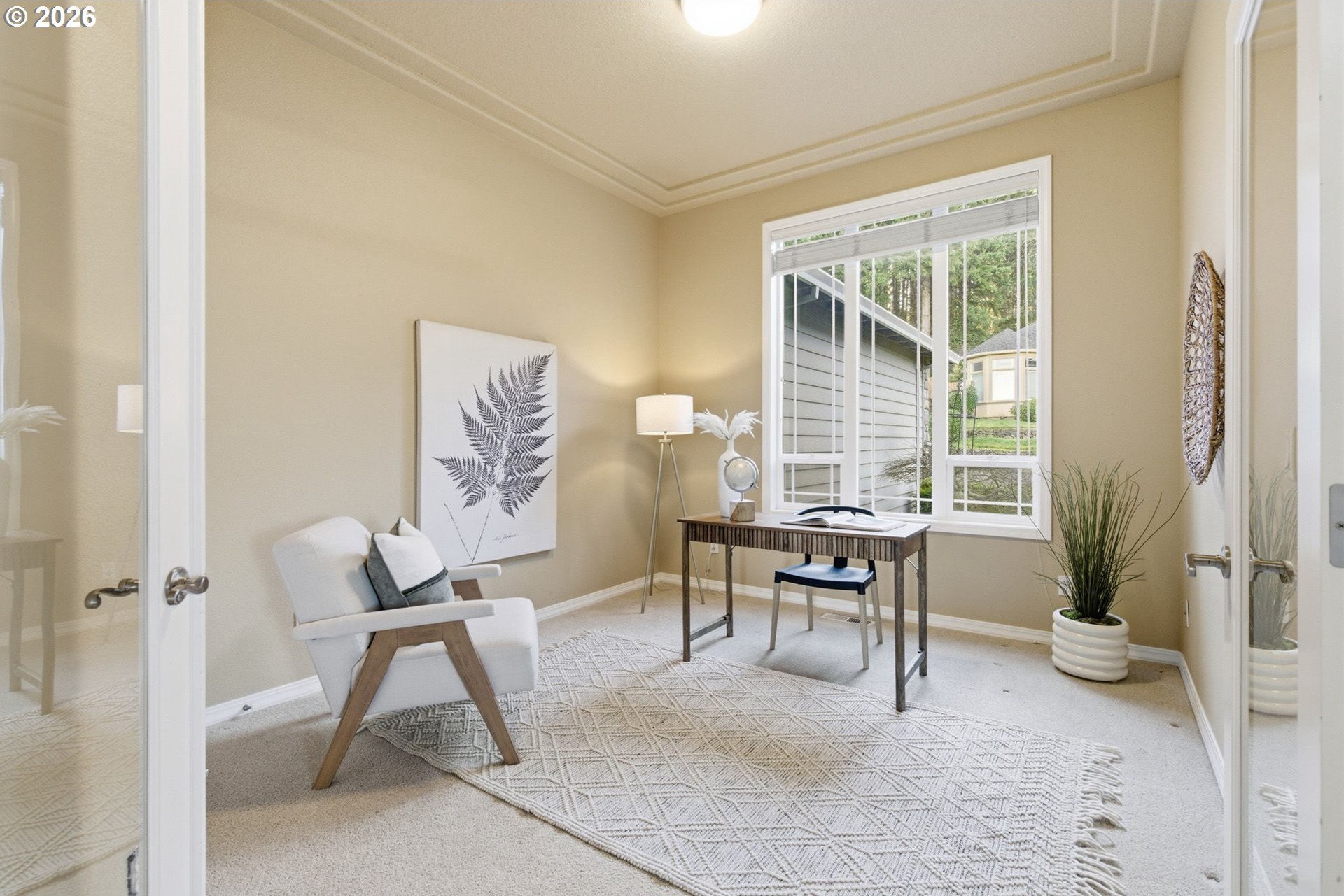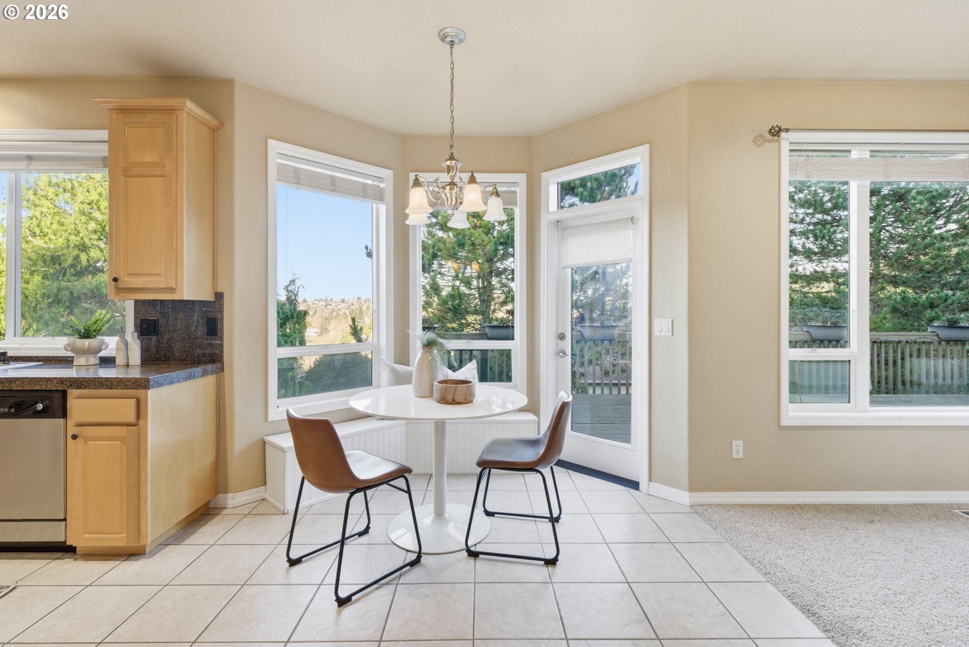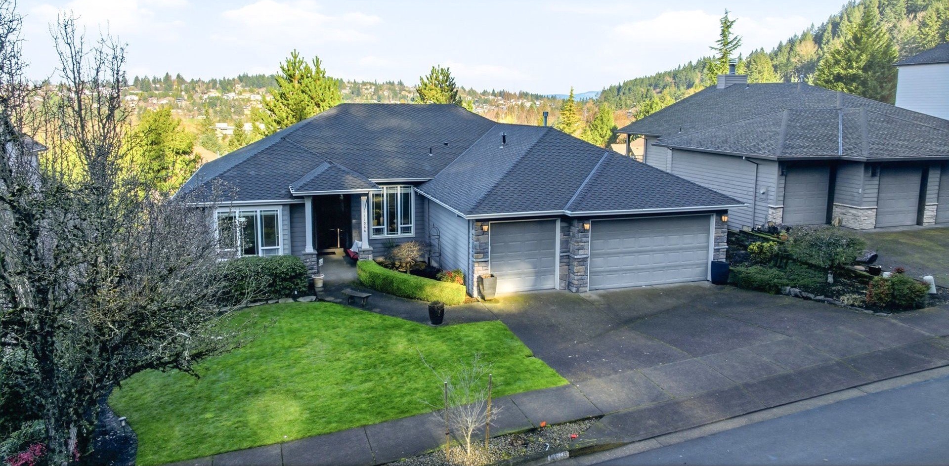 Striking NW Contemporary home in Happy Valley with scenic views, open-concept design, and desirable one-level living. This move-in-ready property features soaring ceilings, abundant natural light, and a thoughtfully designed floor plan ideal for both everyday living and entertaining. The spacious living room flows seamlessly into a vaulted formal dining area, while the chef's kitchen offers an island, stainless steel appliances, ample storage, and opens to a breakfast nook and large family room with a gas fireplace. Enjoy effortless indoor-outdoor living with access to an expansive deck-perfect for dining, relaxing, or taking in the views.The private primary suite includes French doors, deck access, an ensuite bath, and serene views. Two additional bedrooms, a guest bath, a dedicated den/home office, and a full laundry room provide flexible living options for remote work, guests, or multigenerational living.Recent system updates include a newer furnace and water heater (approximately 1.5 years old). Additional highlights include an in-home vacuum system, a sprinkler system, and a full-height, exterior-access storage/crawlspace with power and lighting-ideal for extra storage, workshop space, or hobby use. Conveniently located just minutes from New Seasons, Peet's Coffee, cafes, and restaurants for easy everyday living.