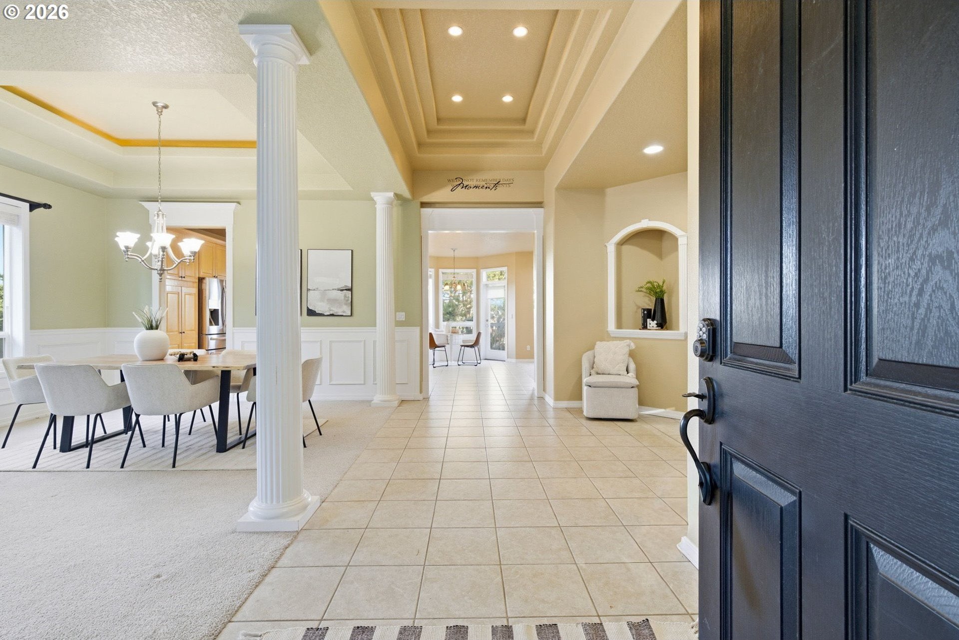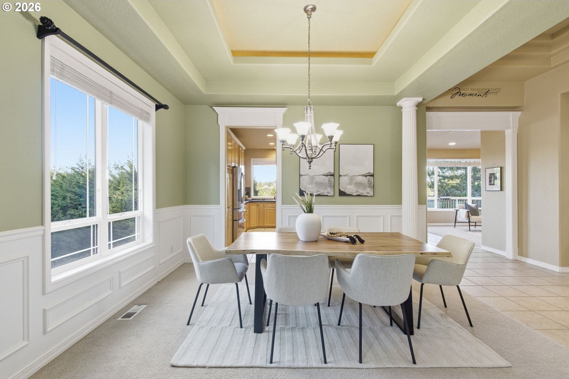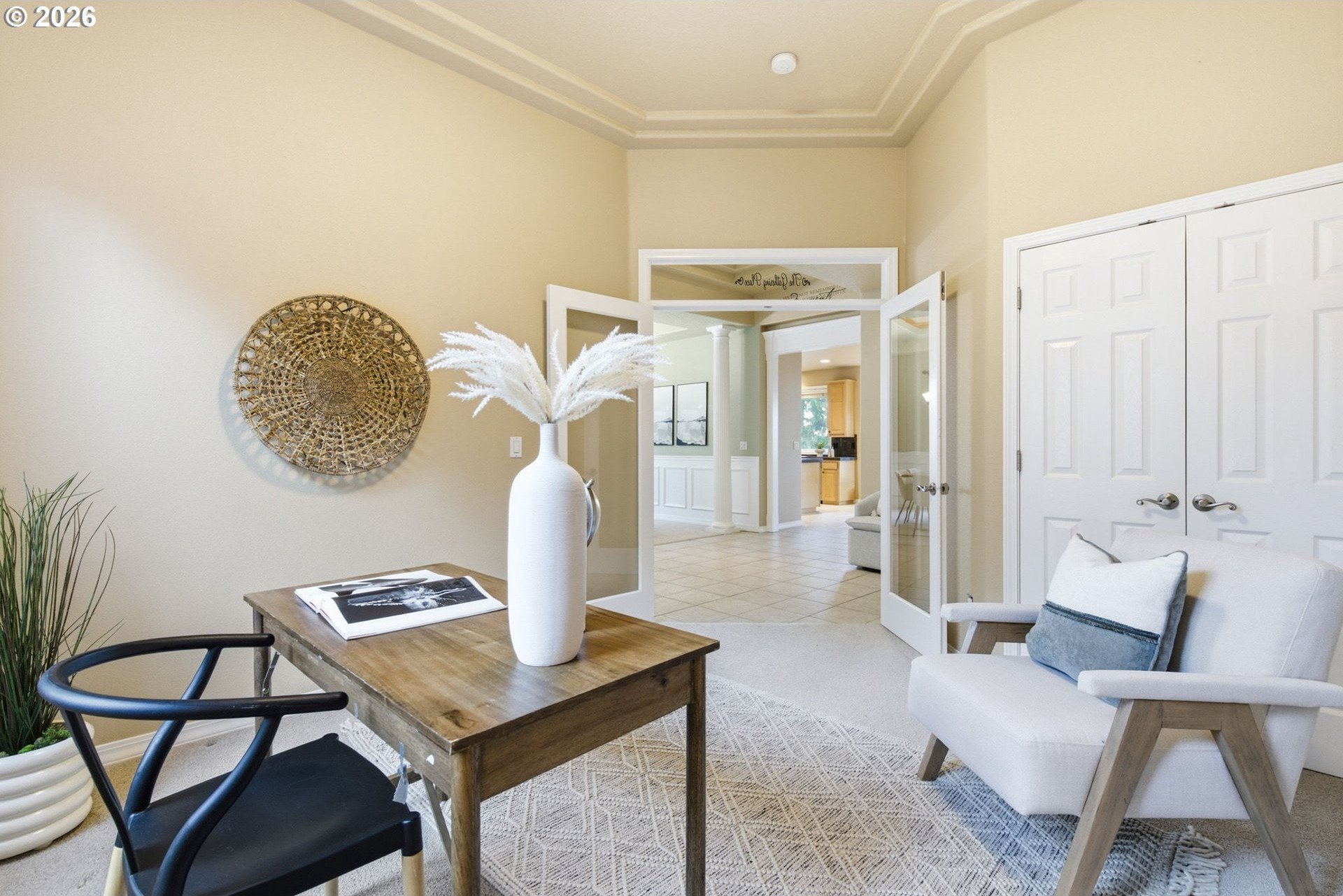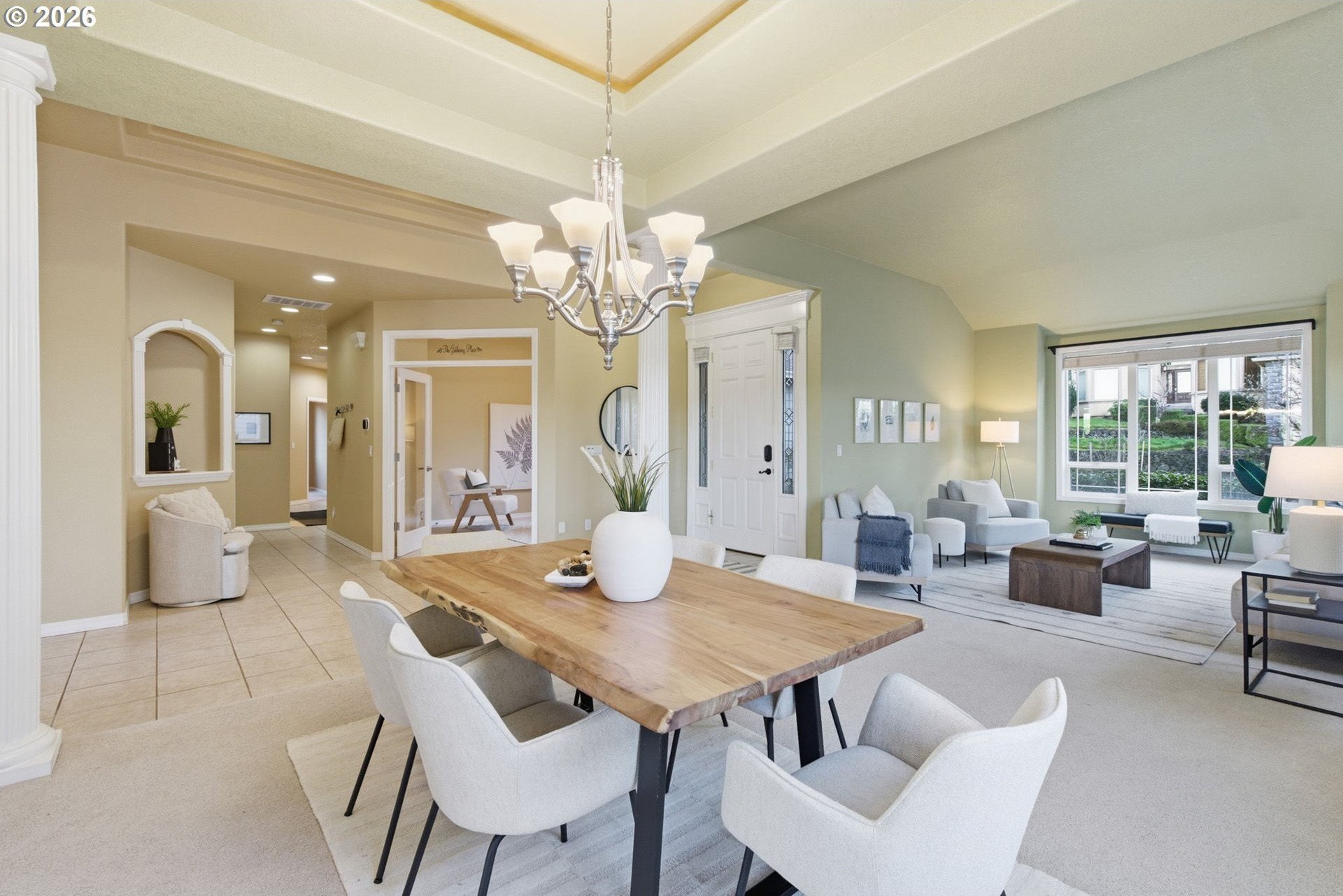 Striking NW Contemporary home in Happy Valley with scenic views, open-concept design, and desirable one-level living. This move-in-ready property features soaring ceilings, abundant natural light, and a thoughtfully designed floor plan ideal for both everyday living and entertaining. The spacious living room flows seamlessly into a vaulted formal dining area, while the chef's kitchen offers an island, stainless steel appliances, ample storage, and opens to a breakfast nook and large family room with a gas fireplace. Enjoy effortless indoor-outdoor living with access to an expansive deck-perfect for dining, relaxing, or taking in the views.The private primary suite includes French doors, deck access, an ensuite bath, and serene views. Two additional bedrooms, a guest bath, a dedicated den/home office, and a full laundry room provide flexible living options for remote work, guests, or multigenerational living.Recent system updates include a newer furnace and water heater (approximately 1.5 years old). Additional highlights include an in-home vacuum system, a sprinkler system, and a full-height, exterior-access storage/crawlspace with power and lighting-ideal for extra storage, workshop space, or hobby use. Conveniently located just minutes from New Seasons, Peet's Coffee, cafes, and restaurants for easy everyday living.