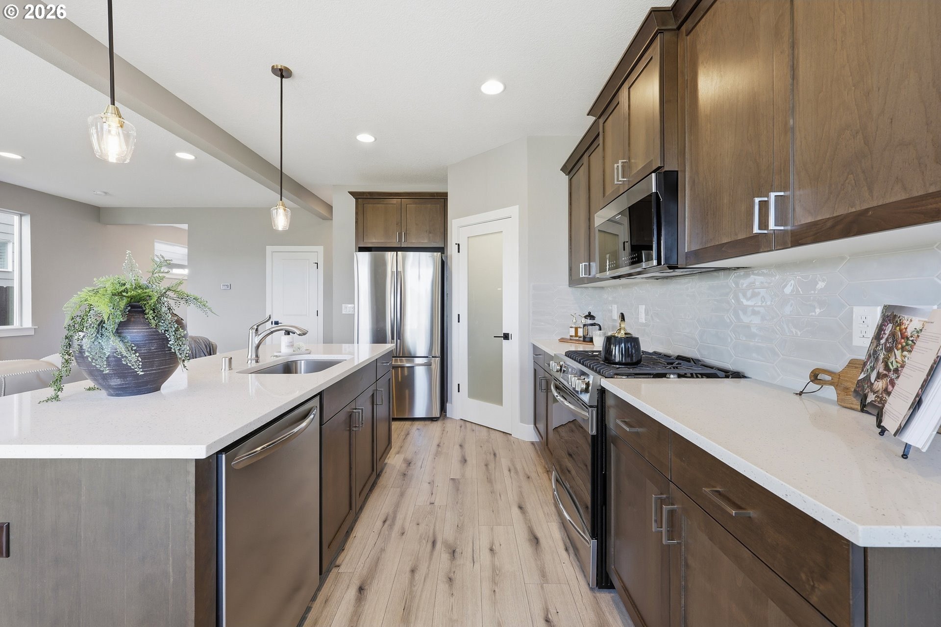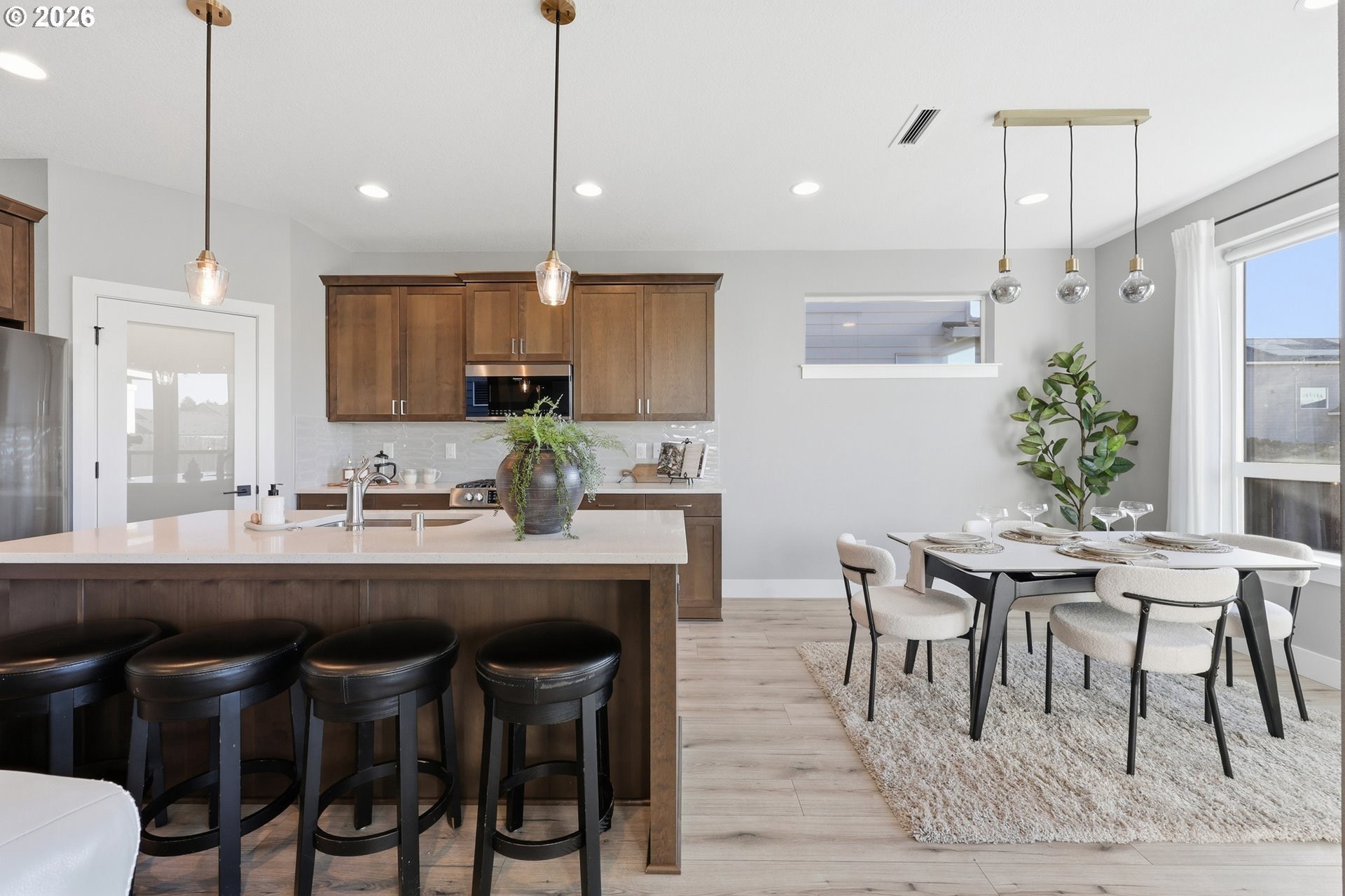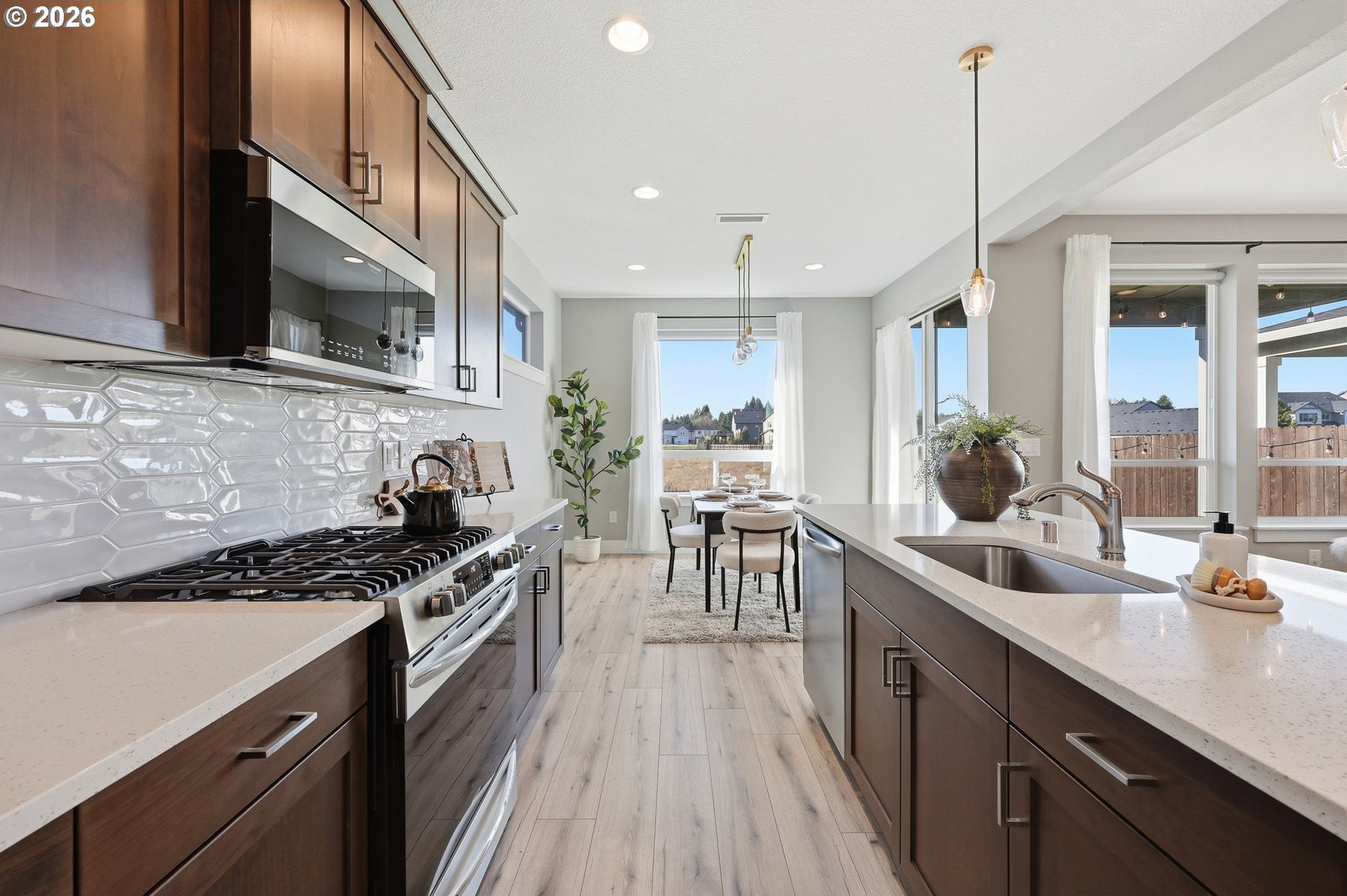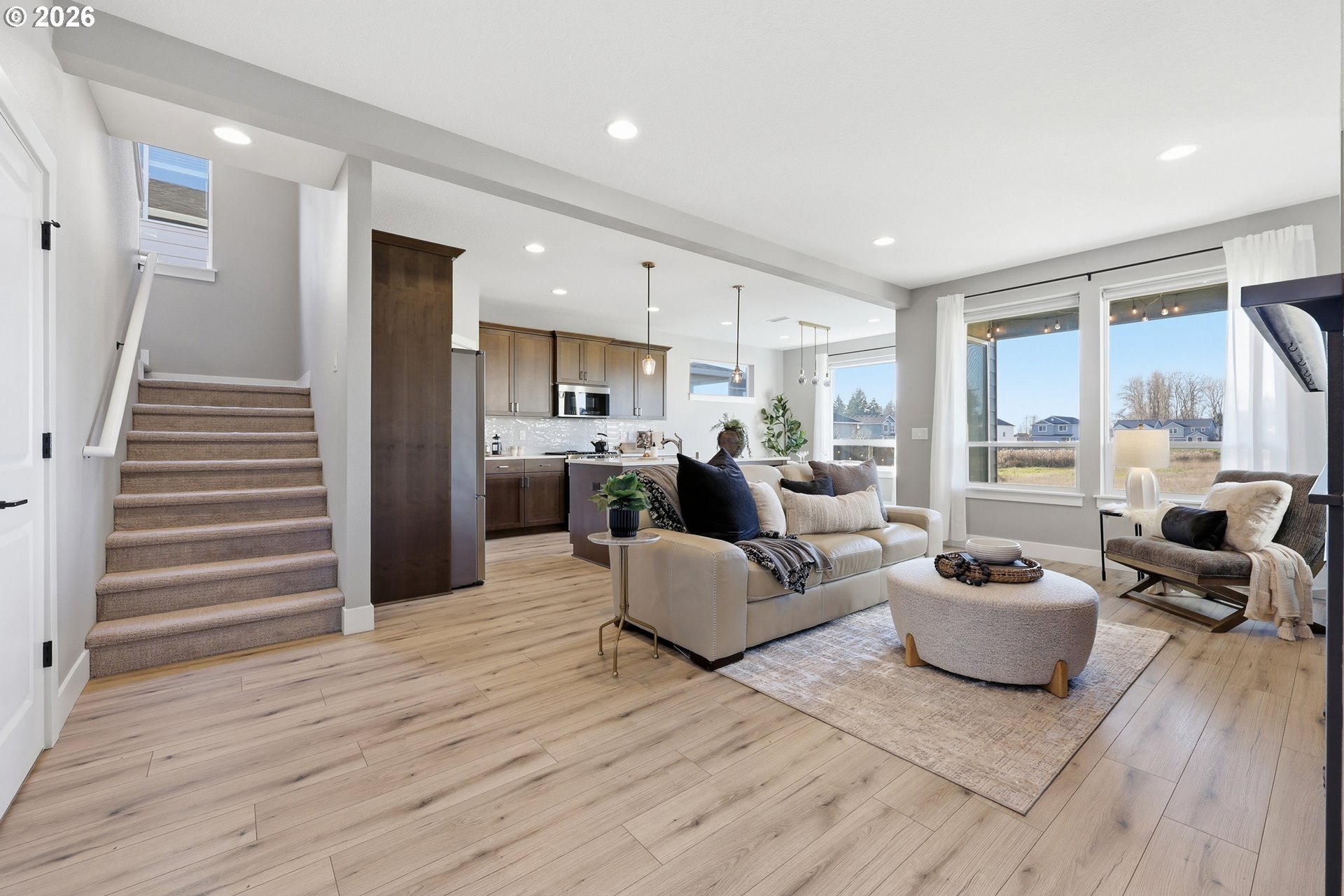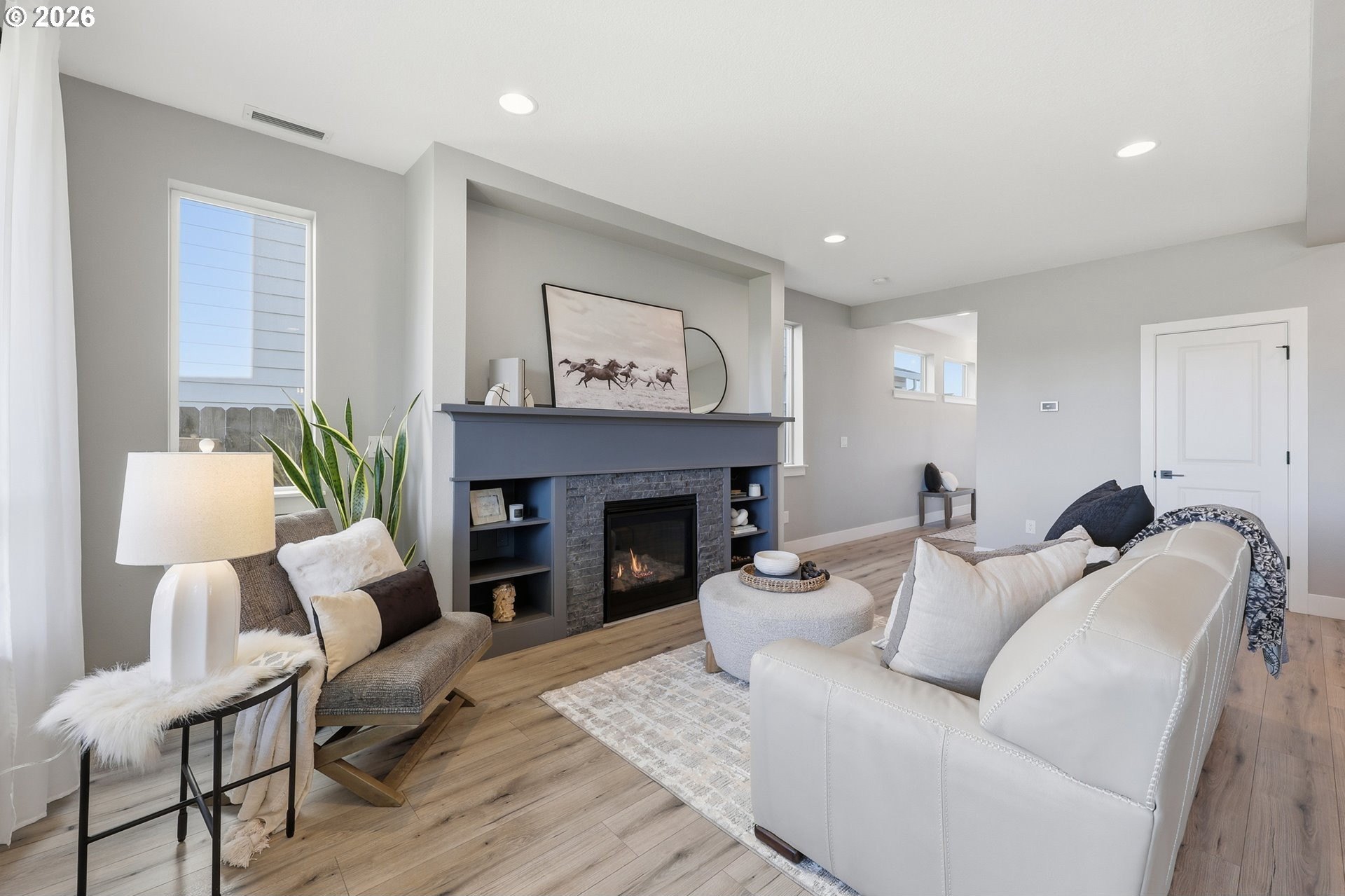 Step into a beautifully designed, energy-efficient home that blends comfort, functionality, and low-maintenance living-set against daily sunset views you'll never get tired of! The private backyard backed up to wetlands features artificial turf for year-round greenery with minimal upkeep, creating the perfect outdoor retreat for relaxing or entertaining. Inside, an open floor plan flows seamlessly into a kitchen built for hosting, complete with quartz countertops, generous prep space, and all appliances included-making move-in truly effortless. The living area is anchored by a cozy gas fireplace with custom built-in shelving, offering both warmth and style. Upstairs, a spacious loft provides flexible space ideal for movie nights, a home office, or creative studio. The primary bedroom is thoughtfully positioned to capture stunning sunset views, creating a peaceful end to every day. Additional highlights include EV-ready wiring, modern energy-efficient features, and a low-maintenance lifestyle without sacrificing comfort or design. This home offers the perfect balance of beauty, practicality, and future-forward living-just minutes from everything Vancouver has to offer.