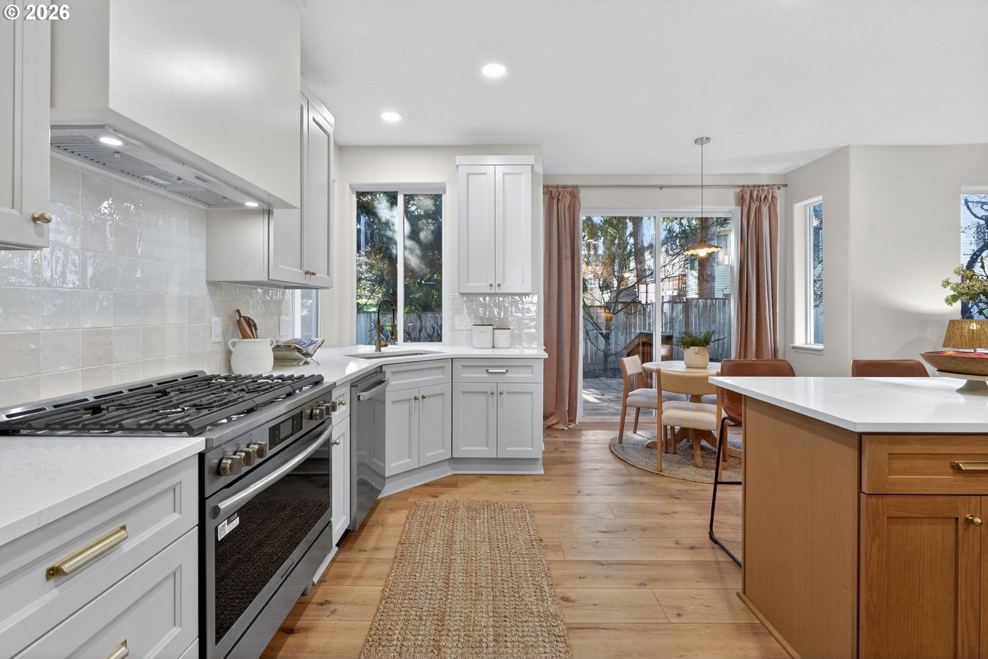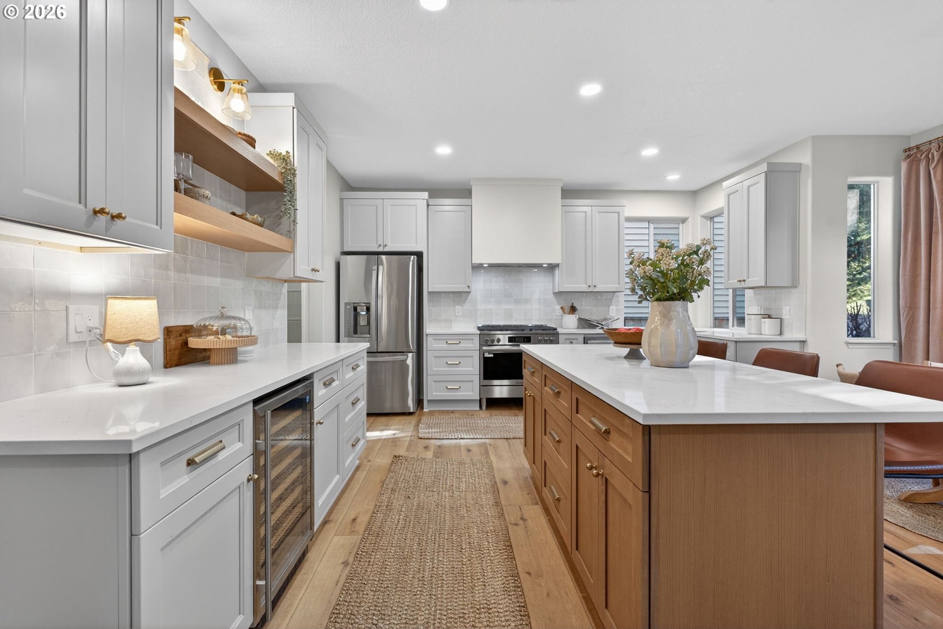 Gorgeously remodeled Tigard traditional! Main floor features soaring 9ft ceilings with an abundance of natural light. Luxury kitchen with 6 burner gas range, custom hood vent & open shelves, built-in wine fridge, walk-in pantry, and a large island for entertaining. Upstairs boasts 4 bedrooms, or 3 bedrooms with a large bonus/playroom. Generously sized primary suite and spa-like bathroom. New flooring and paint throughout. Exterior features new roof. Sip your morning coffee on the front porch and get a peek-a-boo view of the neighborhood park that is corner-adjacent. Park features large open play field, kids play structure, and swing set. This is the one you've been waiting for!