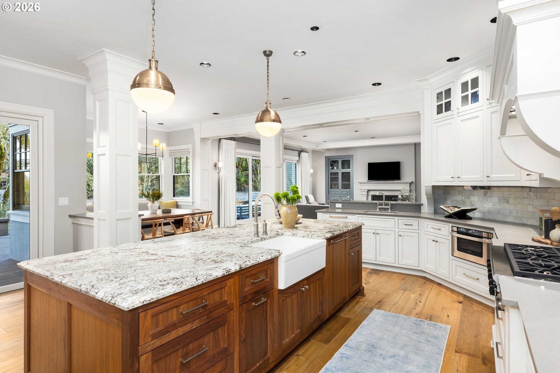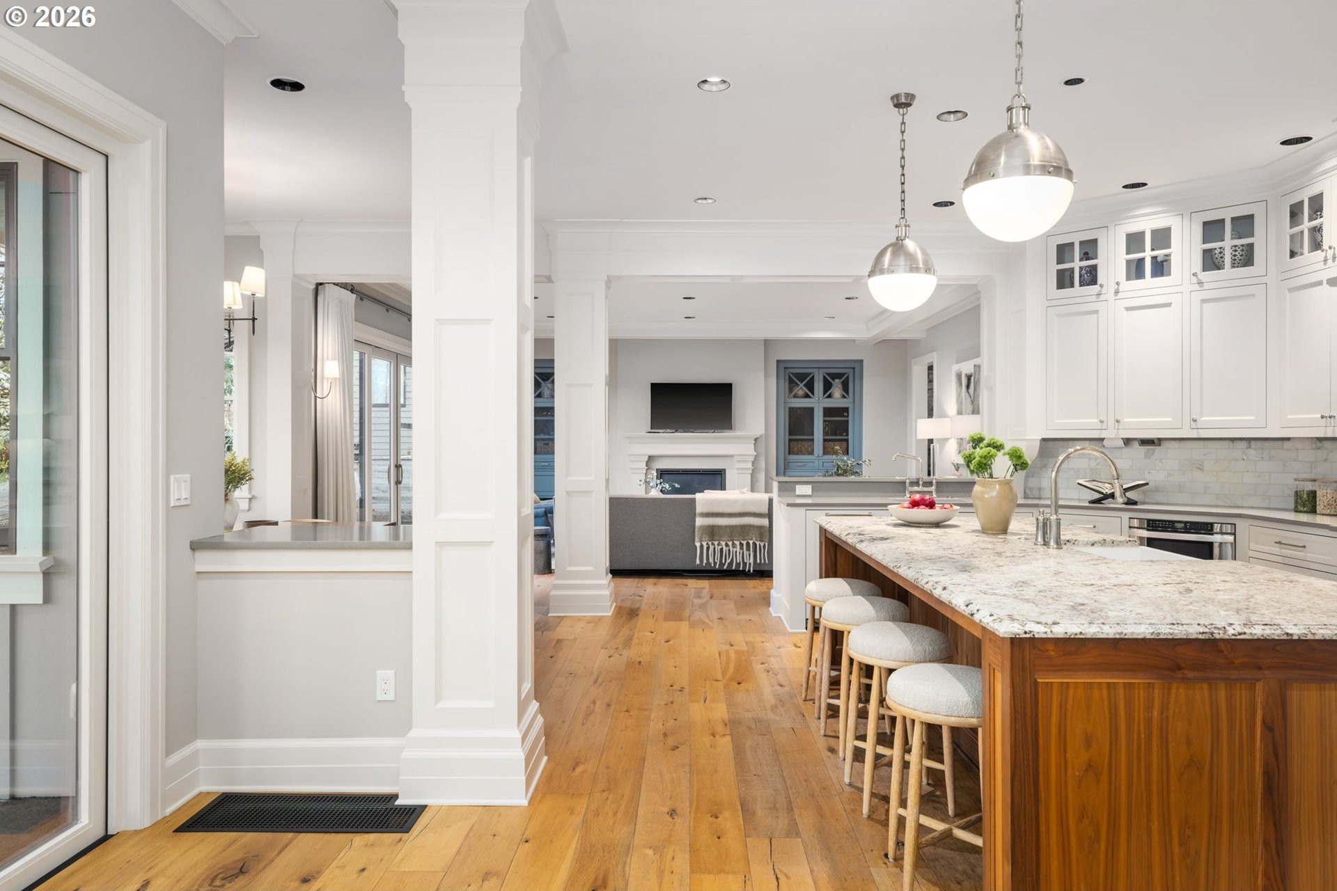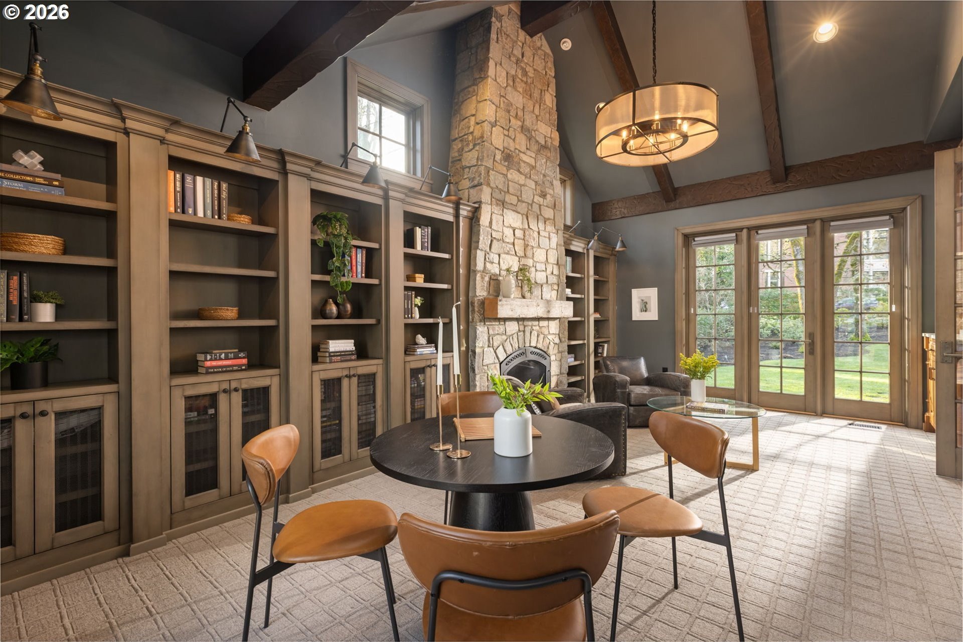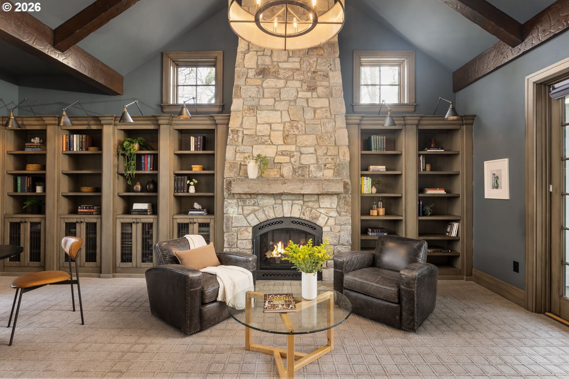 Custom-built and thoughtfully designed, this exceptional Dunthorpe residence offers refined luxury, generous scale, and effortless livability in one of Portland's most sought-after school districts.The chef's kitchen is the heart of the home, centered around a large island and designed for everyday living and entertaining. High-end appliances include a premium range, double ovens, double dishwashers, and double sinks, along with an oversized refrigerator and separate freezer drawers built into custom cabinetry, plus a dedicated beverage refrigerator. Thoughtful details such as a pot filler, pull-out storage, a beautifully detailed backsplash with discreet outlets, abundant cabinetry, a walk-in pantry, and a butler's pantry make this kitchen both functional and striking.The main level features hardwood floors, high ceilings, arched entry details, custom millwork, and multiple inviting living spaces, including a stunning library style office with custom built-in cabinetry and a fireplace. Living room doors open to a spacious hardscape patio with built-in seating and a large, fully fenced yard, ideal for entertaining or everyday enjoyment.All bedrooms feature en suite bathrooms, offering comfort and privacy throughout. The primary suite is a true retreat, highlighted by an oversized walk-in shower and spa-like finishes. Two additional half baths on the main level add convenience for guests.Distinctive spaces include a media room with an attached kids' playroom, a second office space, a breakfast nook with a custom wood table, two staircases, and two laundry areas, including an upstairs laundry and a lower-level laundry room with extensive storage and a refrigerator.Finished with wool carpeting, extensive custom built-ins, high-end trim work, and statement lighting throughout, this beautifully crafted home offers exceptional comfort, functionality, and location, just a short walk to Riverdale Grade School in the top-rated Riverdale School District.