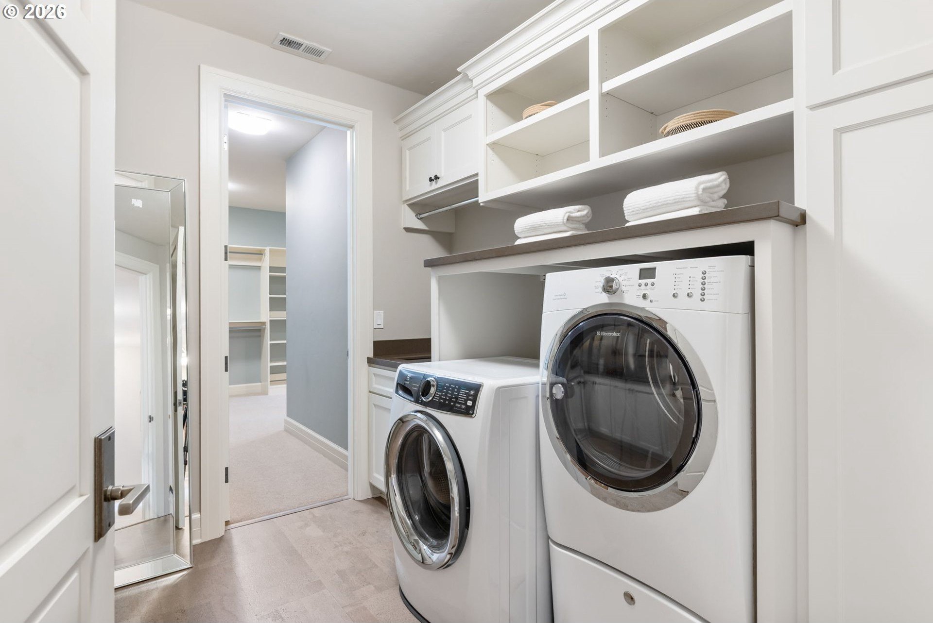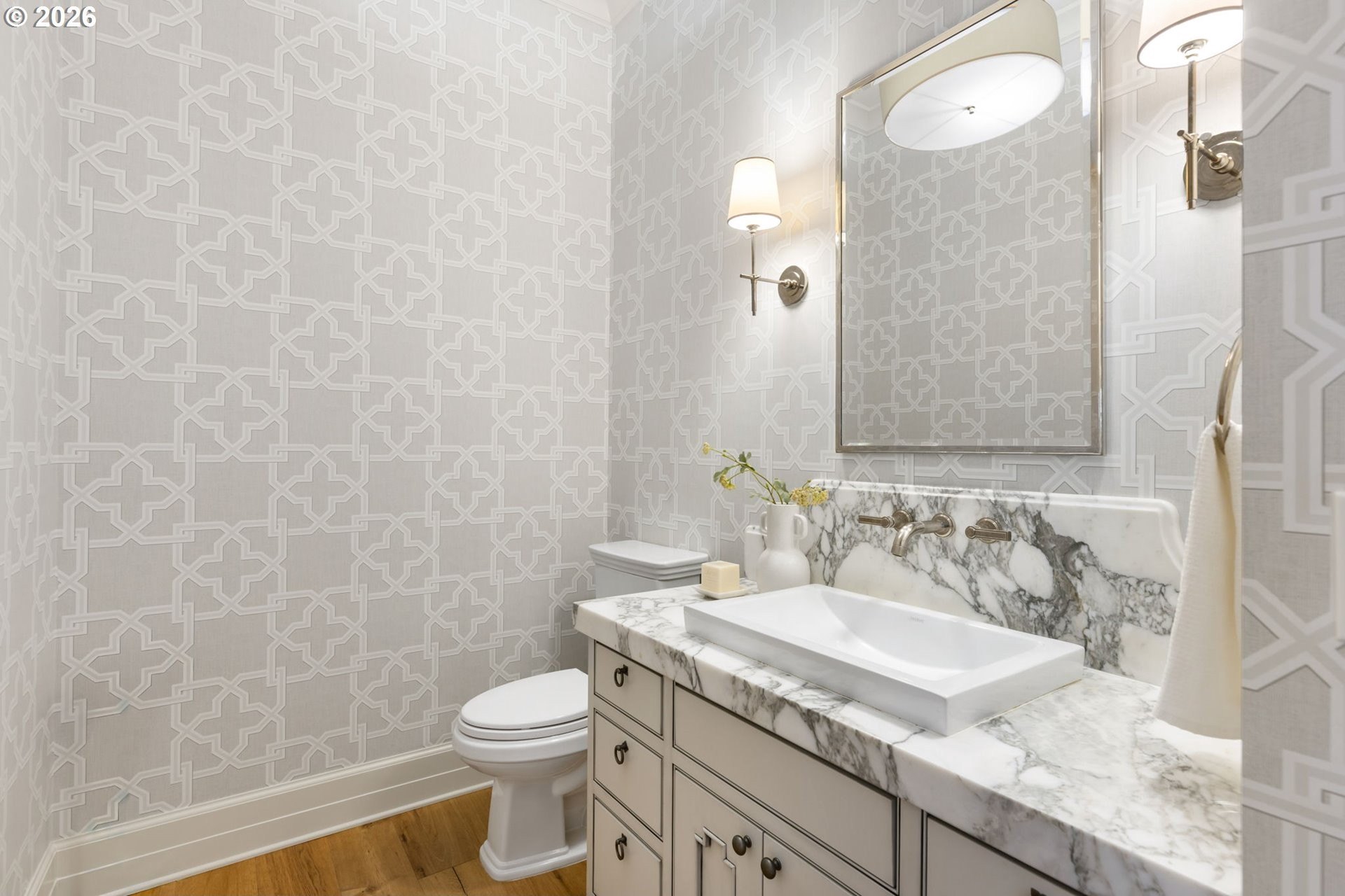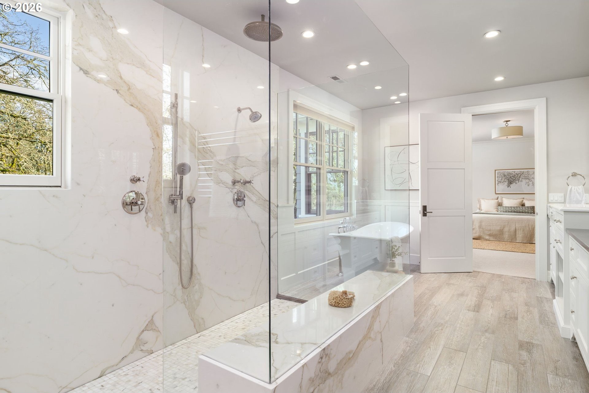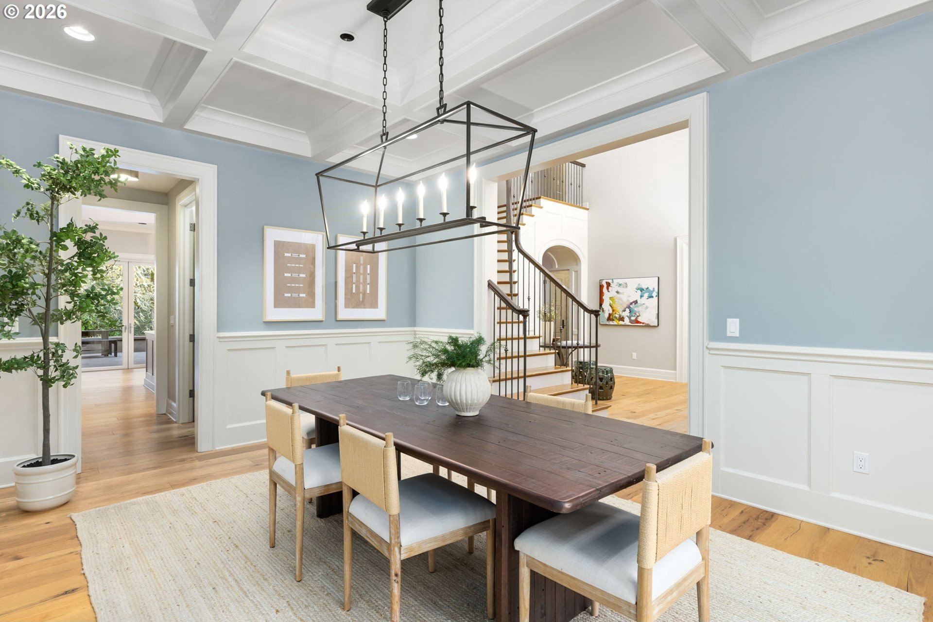 Custom-built and thoughtfully designed, this exceptional Dunthorpe residence offers refined luxury, generous scale, and effortless livability in one of Portland's most sought-after school districts.The chef's kitchen is the heart of the home, centered around a large island and designed for everyday living and entertaining. High-end appliances include a premium range, double ovens, double dishwashers, and double sinks, along with an oversized refrigerator and separate freezer drawers built into custom cabinetry, plus a dedicated beverage refrigerator. Thoughtful details such as a pot filler, pull-out storage, a beautifully detailed backsplash with discreet outlets, abundant cabinetry, a walk-in pantry, and a butler's pantry make this kitchen both functional and striking.The main level features hardwood floors, high ceilings, arched entry details, custom millwork, and multiple inviting living spaces, including a stunning library style office with custom built-in cabinetry and a fireplace. Living room doors open to a spacious hardscape patio with built-in seating and a large, fully fenced yard, ideal for entertaining or everyday enjoyment.All bedrooms feature en suite bathrooms, offering comfort and privacy throughout. The primary suite is a true retreat, highlighted by an oversized walk-in shower and spa-like finishes. Two additional half baths on the main level add convenience for guests.Distinctive spaces include a media room with an attached kids' playroom, a second office space, a breakfast nook with a custom wood table, two staircases, and two laundry areas, including an upstairs laundry and a lower-level laundry room with extensive storage and a refrigerator.Finished with wool carpeting, extensive custom built-ins, high-end trim work, and statement lighting throughout, this beautifully crafted home offers exceptional comfort, functionality, and location, just a short walk to Riverdale Grade School in the top-rated Riverdale School District.