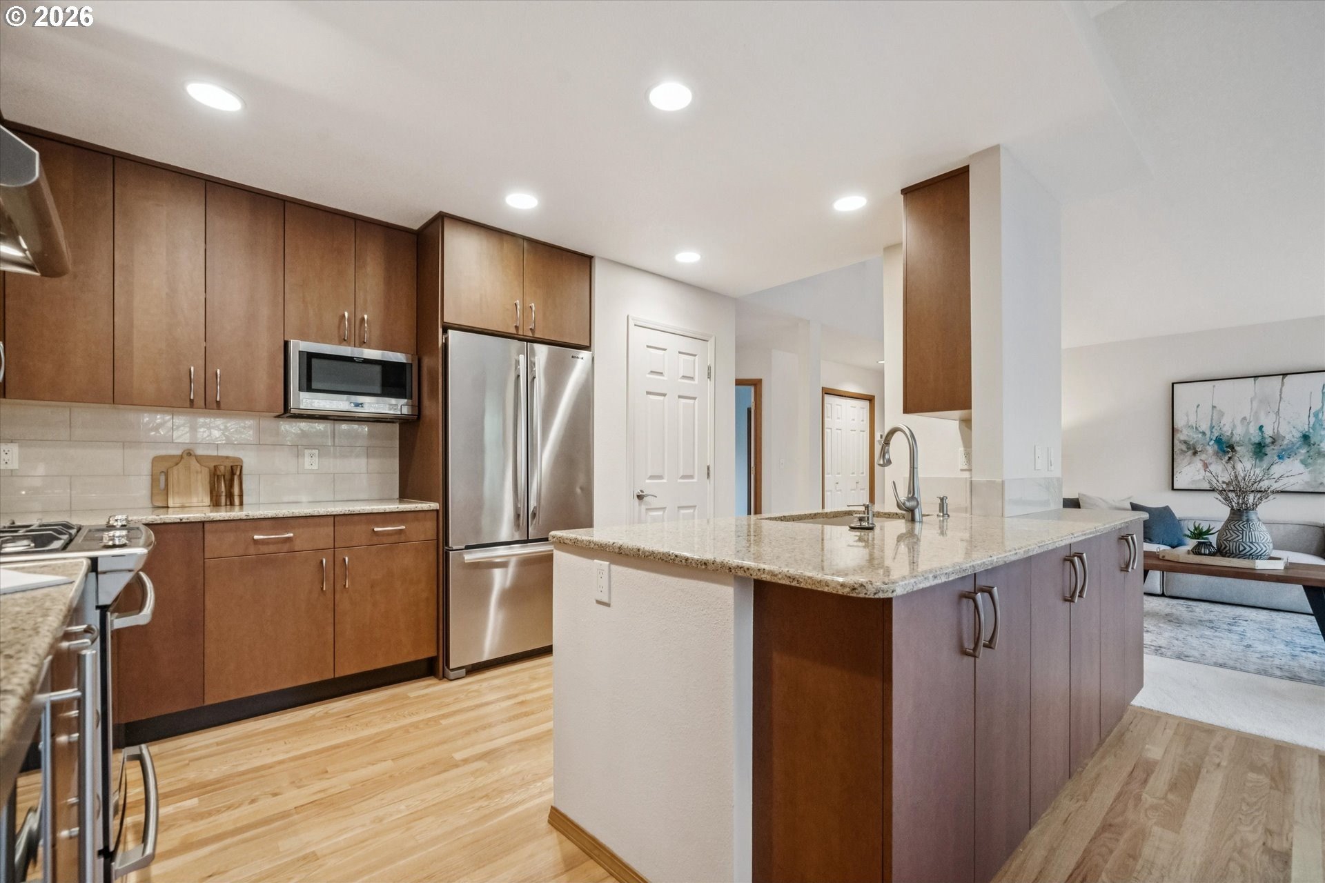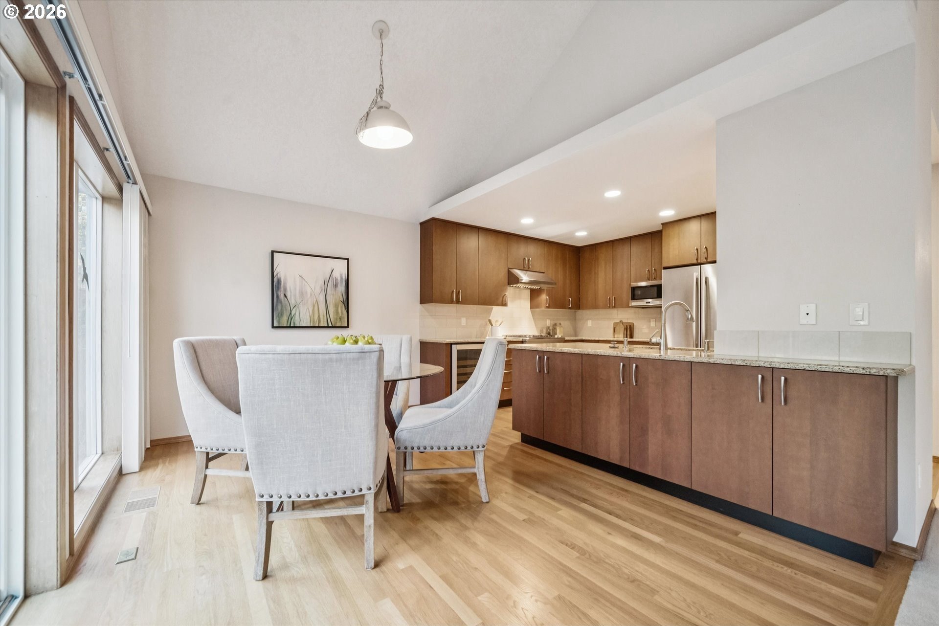 Actually, this is the one I want you to read that was the previous. Step into a beautifully welcoming, light-filled one-level home where comfort, style, and thoughtful design come together effortlessly. The open floor plan simply feels right, flowing naturally from the inviting living room to the cozy family room and into a spacious, show-stopping kitchen. Designed by Neil Kelly, the kitchen is a true centerpiece with quartz countertops, a generous island, stainless steel appliances, gas range with hood, wine cooler, built-in microwave, and French-door refrigerator-perfect for both everyday living and memorable gatherings. Just off the kitchen, a charming dining nook framed by floor-to-ceiling windows and a sliding door to the backyard creates a setting that makes mornings feel especially inviting. On those extra hot days, don't worry as the air conditioner will help you keep cool.The primary bedroom offers the space and flexibility to create your own private sanctuary-whether that includes a king-size bed, a cozy sitting area, or simply room to unwind. The beautifully designed ensuite bathroom, also by Neil Kelly, adds a touch of luxury, while the spacious walk-in closet easily accommodates two. And for those who prefer extra space elsewhere, the oversized garage is ready to become the ultimate workshop, hobby room, or outdoor enthusiast's retreat. Both the front and backyard feature working sprinkler systems for easy care, and the backyard patio provides the perfect spot to relax and enjoy warm summer evenings. Tucked into a fantastic location just minutes from shops, schools, parks, and everyday conveniences, this home is truly a gem. Add in a neighborhood around the corner that rivals Peacock Lane with its festive holiday decor, and you have something truly special. Don't miss this opportunity-you'll want to experience in person and then call it home!