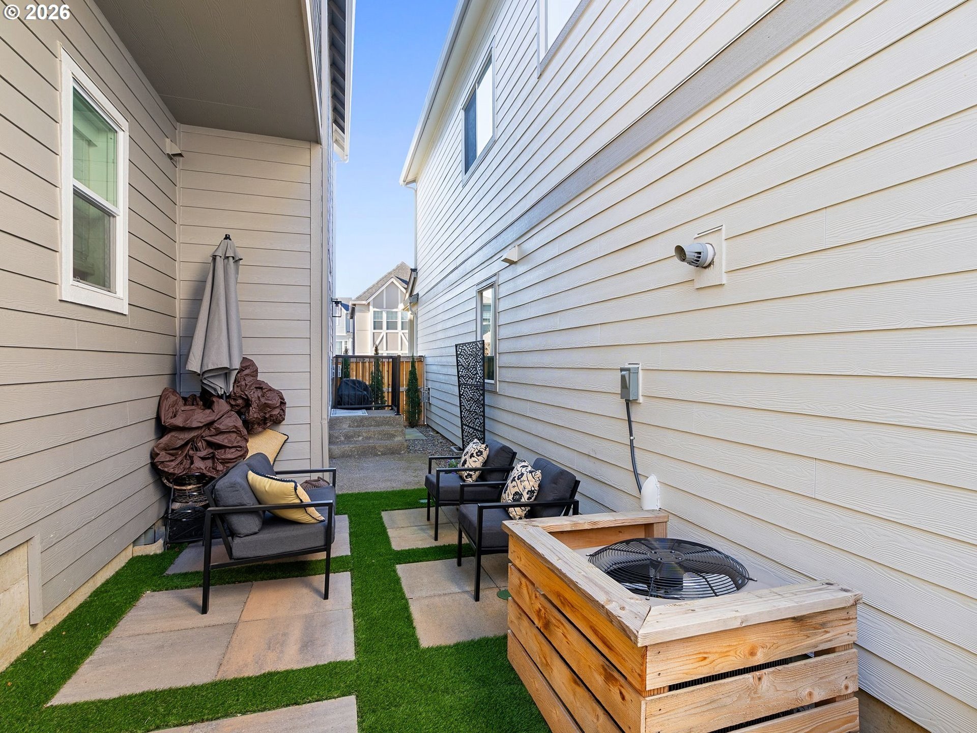 SUPERIOR TO NEW IN RIVER TERRACE! Turnkey Living with Premium Upgrades.?Skip the wait of new construction in this upgraded single-family home in sought-after River Terrace. Better than brand-new, this detached home features premium improvements you won't find in a standard builder package-all the work is done for you!?Step inside to an airy open floor plan with soaring 10-foot ceilings and abundant windows flooding the space with natural light. The main level is elevated by wood flooring and custom plantation shutters offering style and privacy. Gather around the cozy gas fireplace or entertain in the gourmet kitchen featuring quartz countertops, a spacious island, and high-end stainless-steel appliances, including a gas cooktop with hood.?Step outside to a showstopper: a fully landscaped side yard oasis complete with artificial turf, designer pavers, and a BBQ area ready for year-round entertaining. This low-maintenance retreat is move-in ready while neighboring yards struggle with sloped dirt.?Upstairs, the spacious primary suite boasts a spa-inspired bath. Two additional bedrooms and upper-level laundry offer flexibility for family or office use. High-value upgrades include a tankless water heater, AC, refrigerator, and washer/dryer-all just one year old!?The location is unbeatable! Blocks away, enjoy pickleball courts, dog parks, a playground, covered BBQ pavilions, and city parks. Construction has started for a future town center to include a coffee shop and local retail.?You're just minutes to Progress Ridge Shopping with New Seasons, Ace Hardware, AMC Theater, Big Al's, Club Pilates, and great dining. Plus close proximity to blueberry farms and wineries.?Durable fiber cement exterior, 2-car attached garage, and over $25k+ in upgrades. This is turnkey living at its finest.