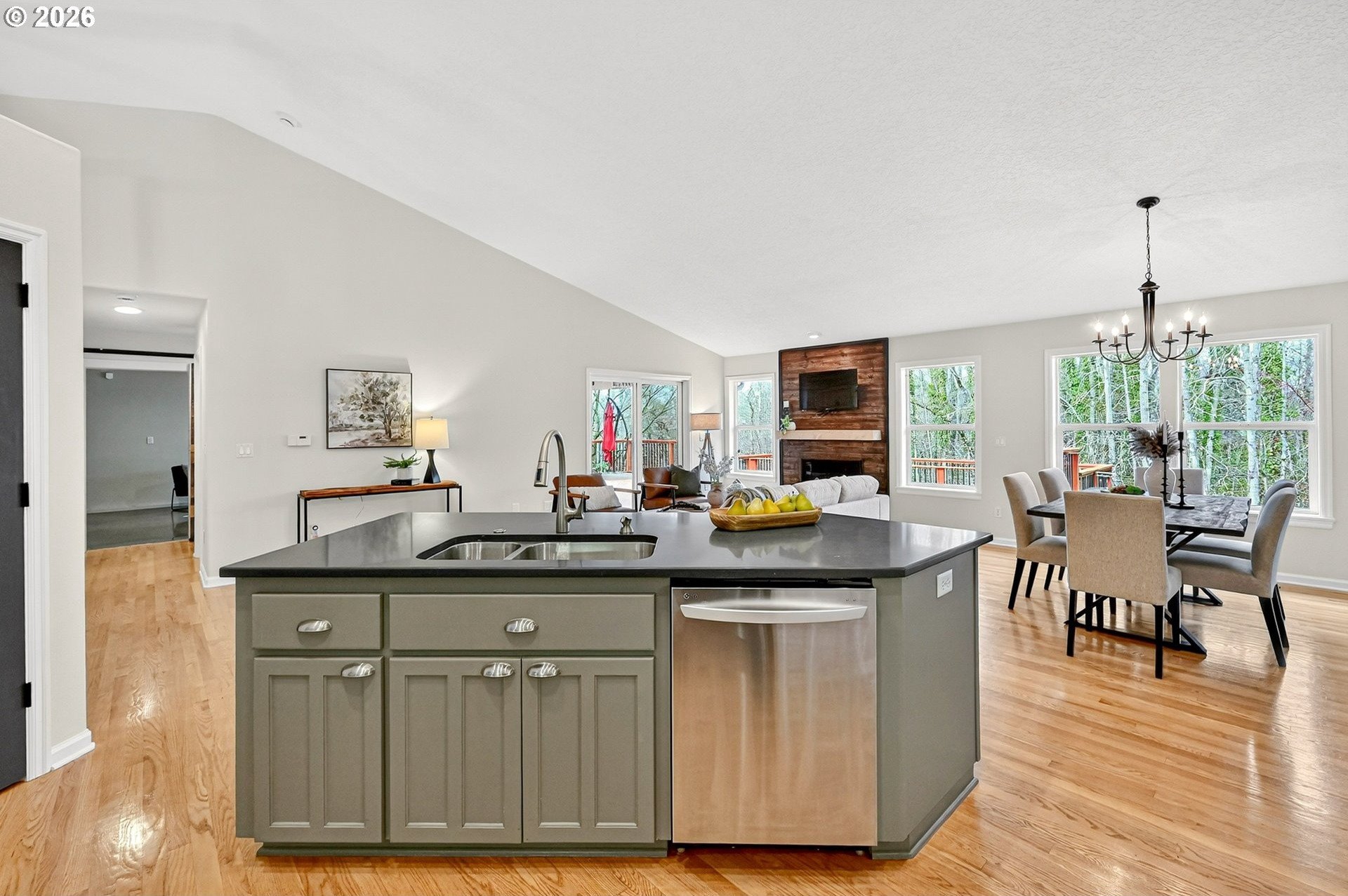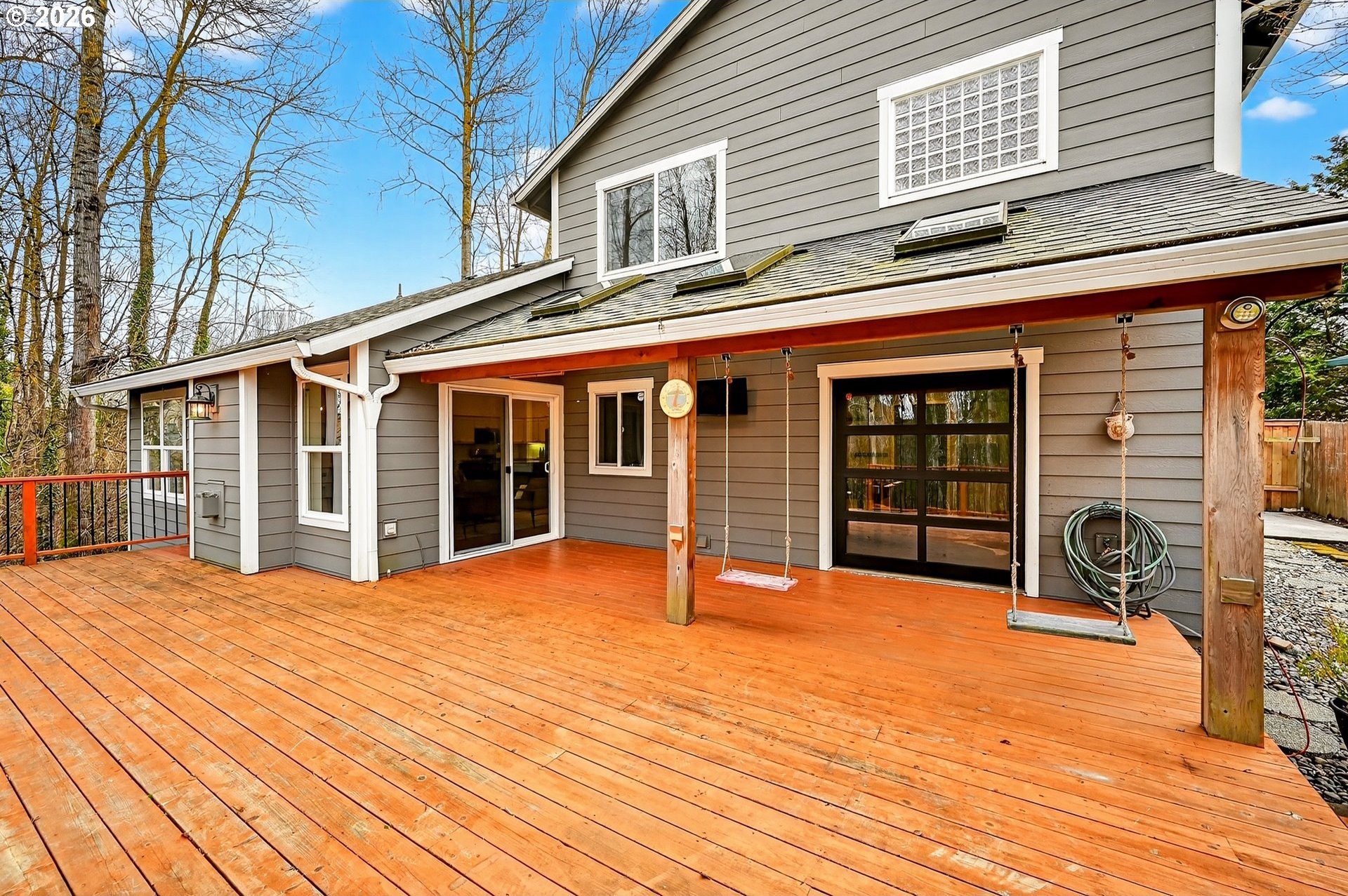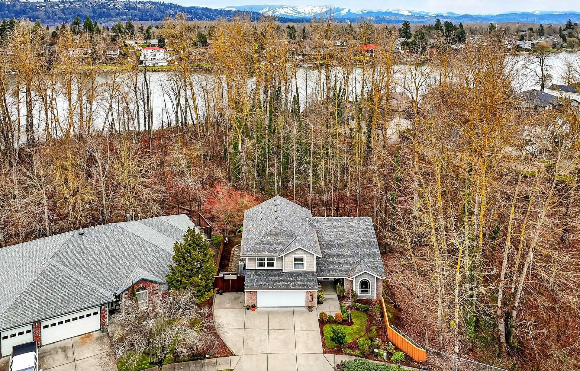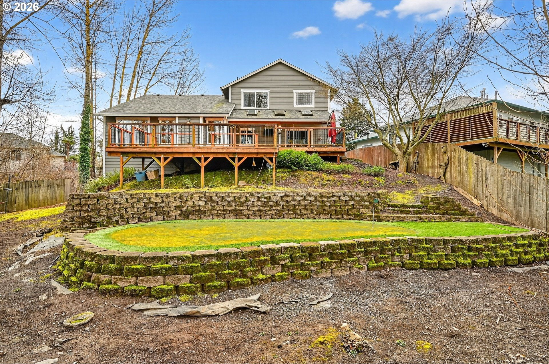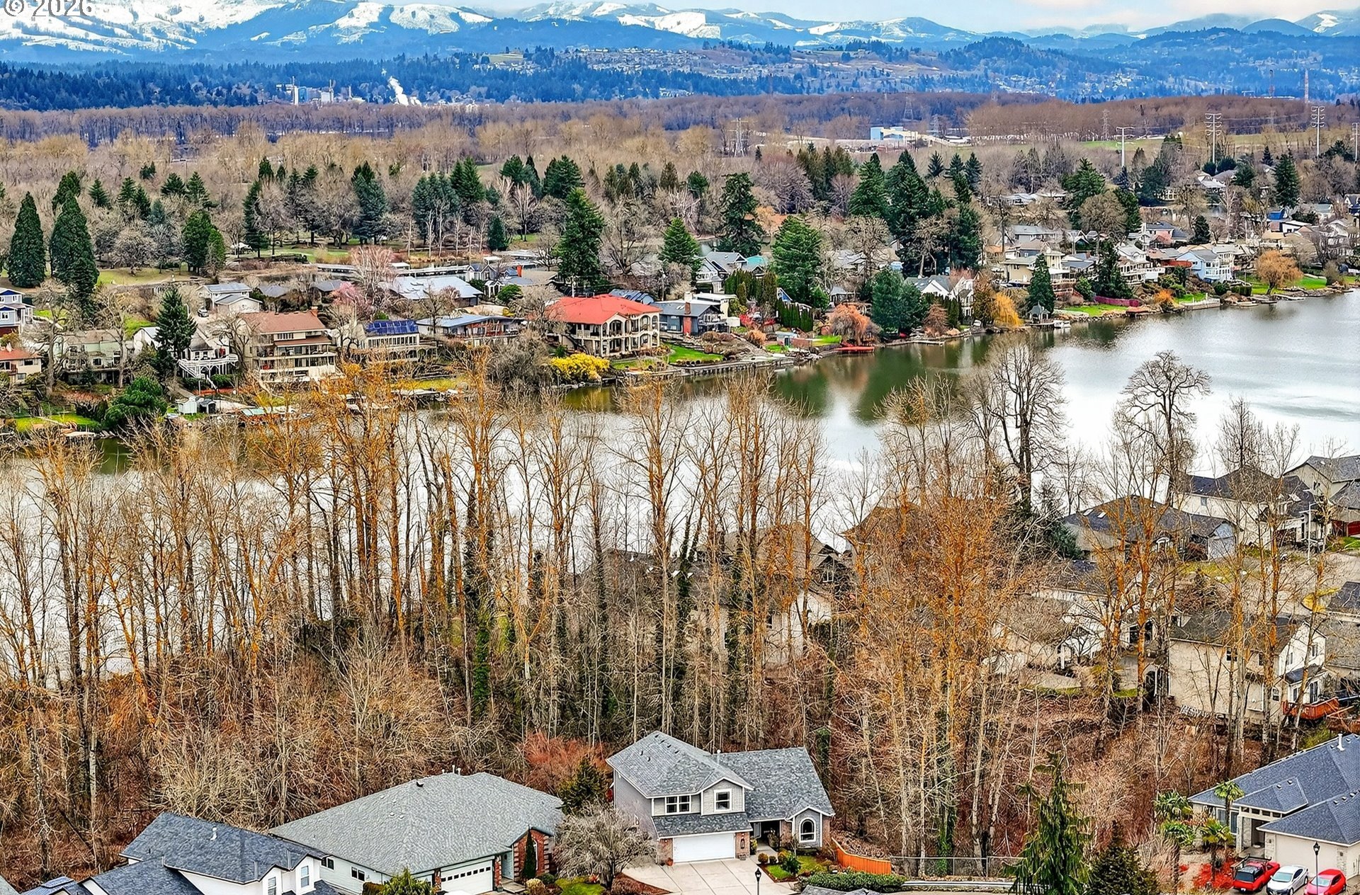 Eagles and Coyotes and Deer... Oh My! Situated on what may be the best non-waterfront lot in the neighborhood, this tastefully finished home offers privacy, tranquility, and seasonal peek-a-boo views of Fairview Lake through the protected wetlands and treed lakeshore area out behind the property. Live, work, and unwind in a home that truly feels like a retreat. Beautifully built, thoughtfully maintained, and ready for its next chapter, the layout is both functional and inviting. The main level features a light-filled great room with vaulted ceilings, a spacious den with French doors, a versatile bonus room, a laundry area, and a half bath. Upstairs, you'll find three bedrooms, each with walk-in closets, and two full bathrooms, providing space (and spaces) for everyone. Entertain year-round and tap into fun inside the '19th Tee', a unique bonus room featuring polished concrete flooring, a counter bar, and a lift-style door that allows guests to step outside and enjoy a swing on the partially covered deck overlooking the backyard and its very own private putting green. It's the perfect zone for relaxing or hosting friends. Over the past decade, the home has seen numerous updates, including a refinished kitchen, bonus room, newer roof, siding, decking, gutters, interior paint, carpeting, hardwoods & custom flourishes throughout. Within birdsong's reach of Fairview Lake and neighboring Blue Lake Regional Park, and just minutes from nature trails, the Chinook Landing boat launch, and the breathtaking beauty of the Columbia River Gorge, this turn-key property is truly an outdoor enthusiast's dream! Conveniently located near I-84, you'll also be connected to two airports, nearby downtown Troutdale, and the city of roses proper. Opportunities like this are rare, so come experience life by the lake in a quietly upscale neighborhood known for its privacy, accessibility, and peaceful setting, by scheduling your visit today!