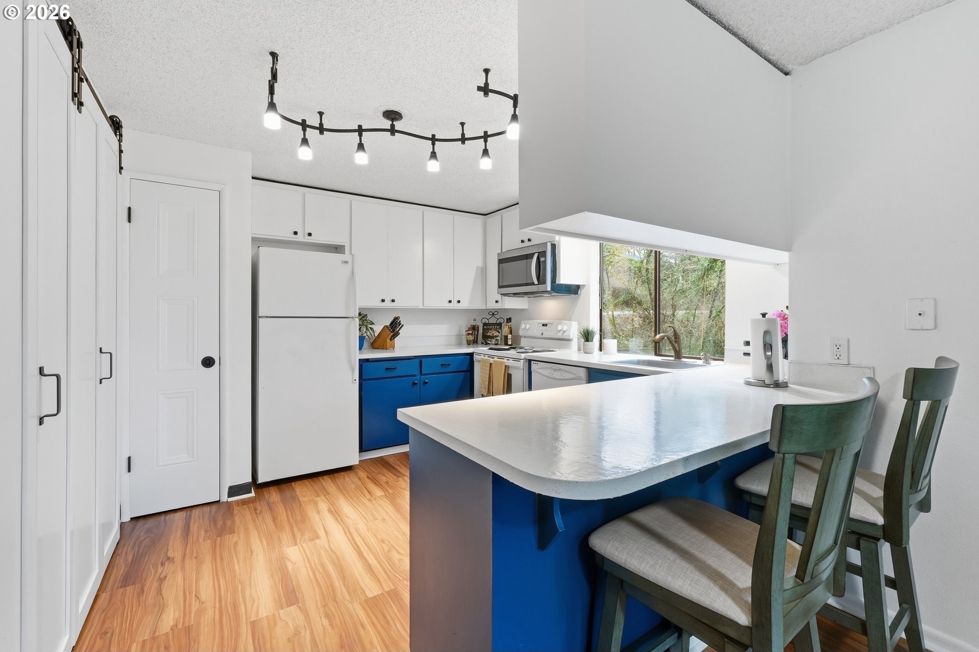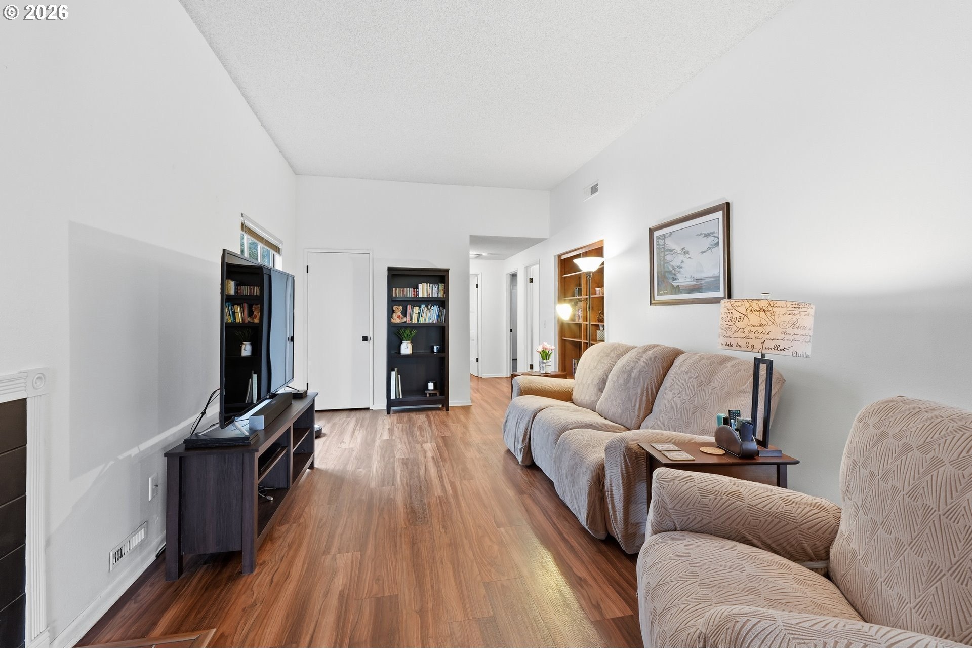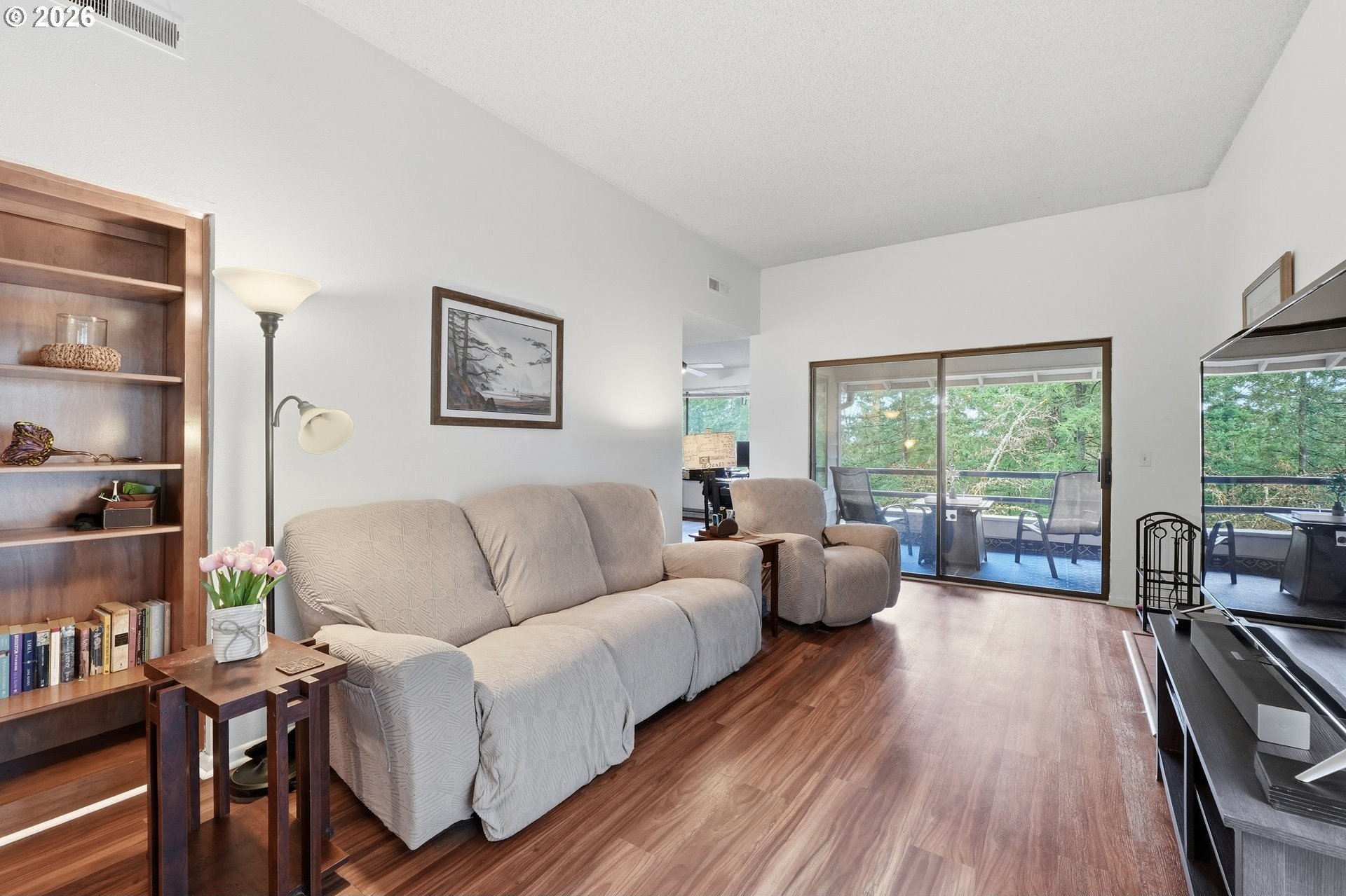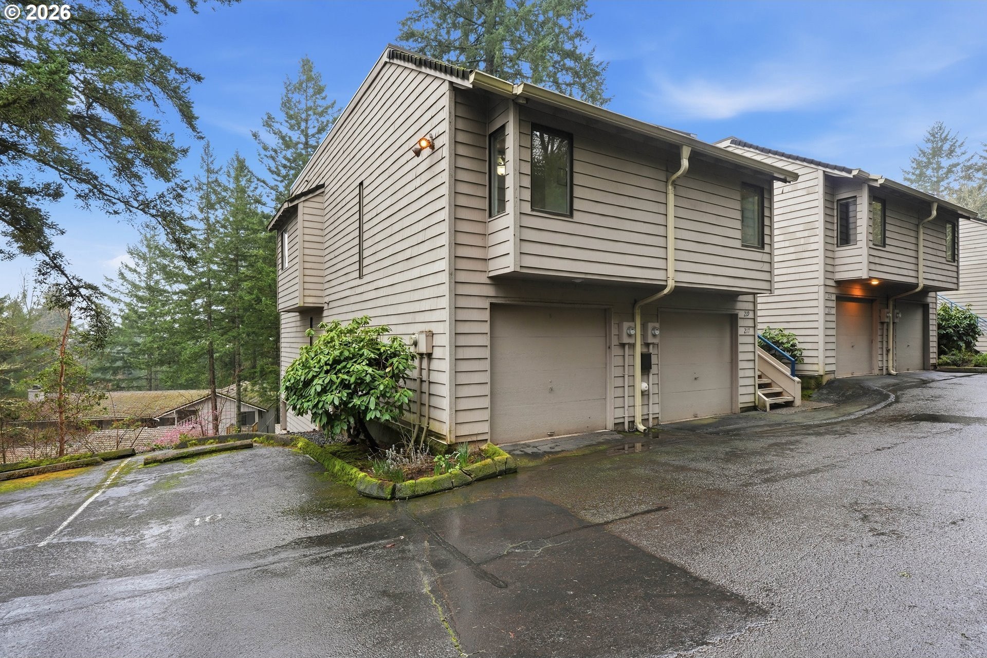 Experience a serene sanctuary in the heart of Lake Oswego's coveted Mountain Park community. This beautifully maintained, upper-level condo offers 2 bedrooms and 2 full bathrooms, blending privacy with vaulted architectural charm and significant recent upgrades.Freshly updated with new laminate flooring and new interior doors throughout, the home feels cohesive and contemporary. The spacious, light-filled living room features high ceilings, a cozy wood-burning fireplace, and an expansive slider leading to a private covered deck-perfect for year-round relaxation. The functional kitchen, complete with an eat-in bar and pantry, flows seamlessly into the vaulted dining area for effortless entertaining.Peace of mind comes standard with a new roof and a primary suite that serves as a dedicated retreat with its own en-suite bath. This move-in-ready home offers a low-maintenance, resort-style lifestyle with unbeatable community perks.As a resident, you'll enjoy full access to the premier Mountain Park amenities, including:Clubhouse & Fitness: State-of-the-art gym, weight room, and tennis courts.Aquatics: Indoor pools, hot tub, and saunas.Nature: Miles of scenic, paved walking and hiking trails right outside your door.This unit includes a one car garage plus additional parking. Conveniently located just minutes from I-5, PCC Sylvania, and the boutique shopping and dining of downtown Lake Oswego. All appliances included. Don't miss this opportunity for updated, turnkey living in a wonderful community!