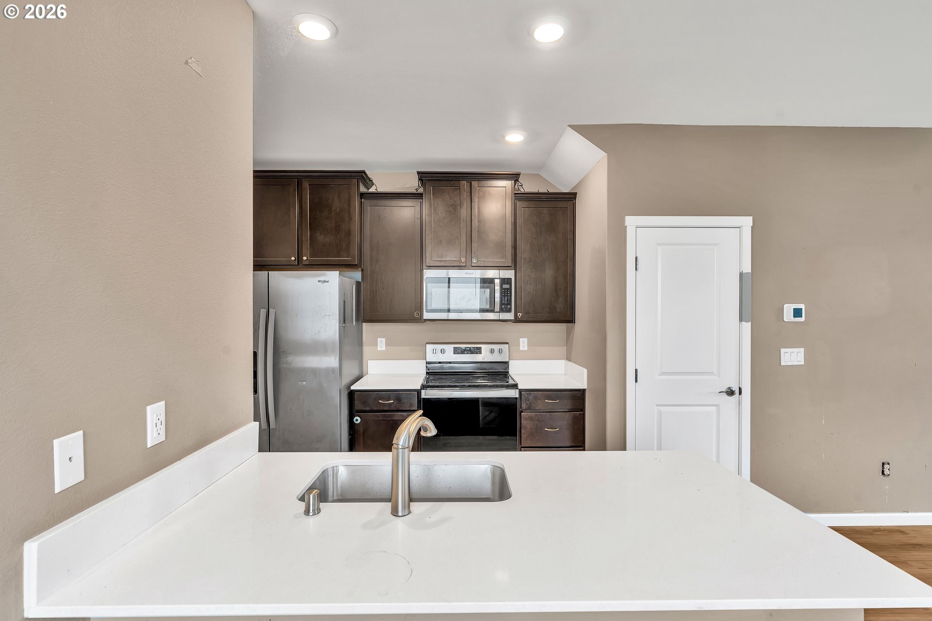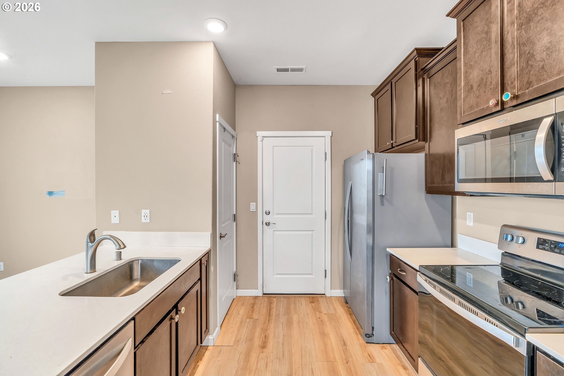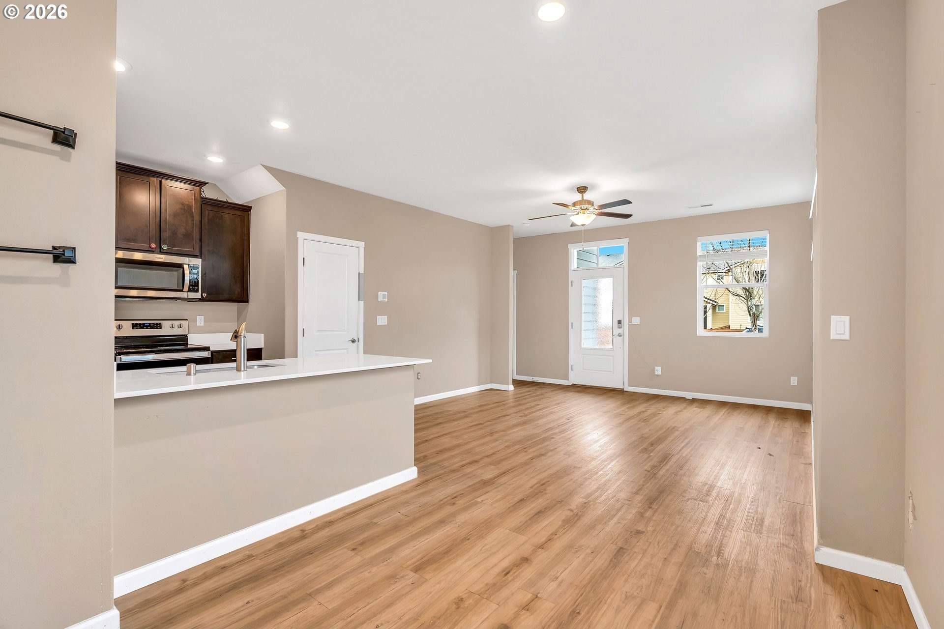 This beautifully designed 2-level townhome offers 3 bedrooms and 2.5 bathrooms with a layout built for modern living. The main floor features modern plank flooring throughout an open entertaining space, including an upgraded kitchen with stainless steel Whirlpool appliances, a bright and spacious dining area, and an expansive great room perfect for gatherings.Upstairs, the private owner's suite includes a luxurious bathroom and a private balcony for relaxation. Two additional bedrooms, a second full bathroom, and a flex room provide versatile space for guests, hobbies, or a home office.Thoughtfully designed for comfort and style, this townhome combines functional living spaces, elegant finishes, and plenty of natural light, making it a perfect place to call home.