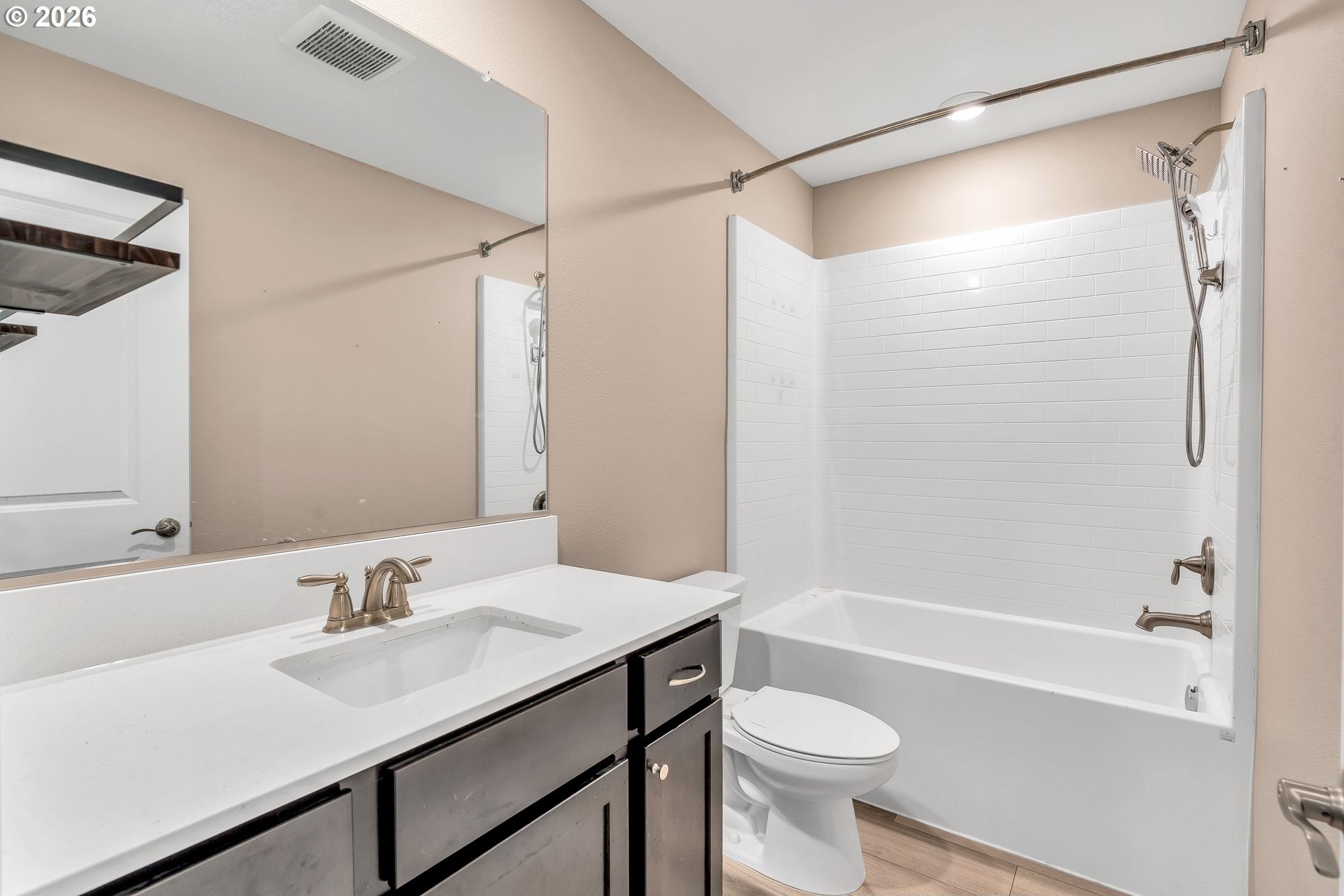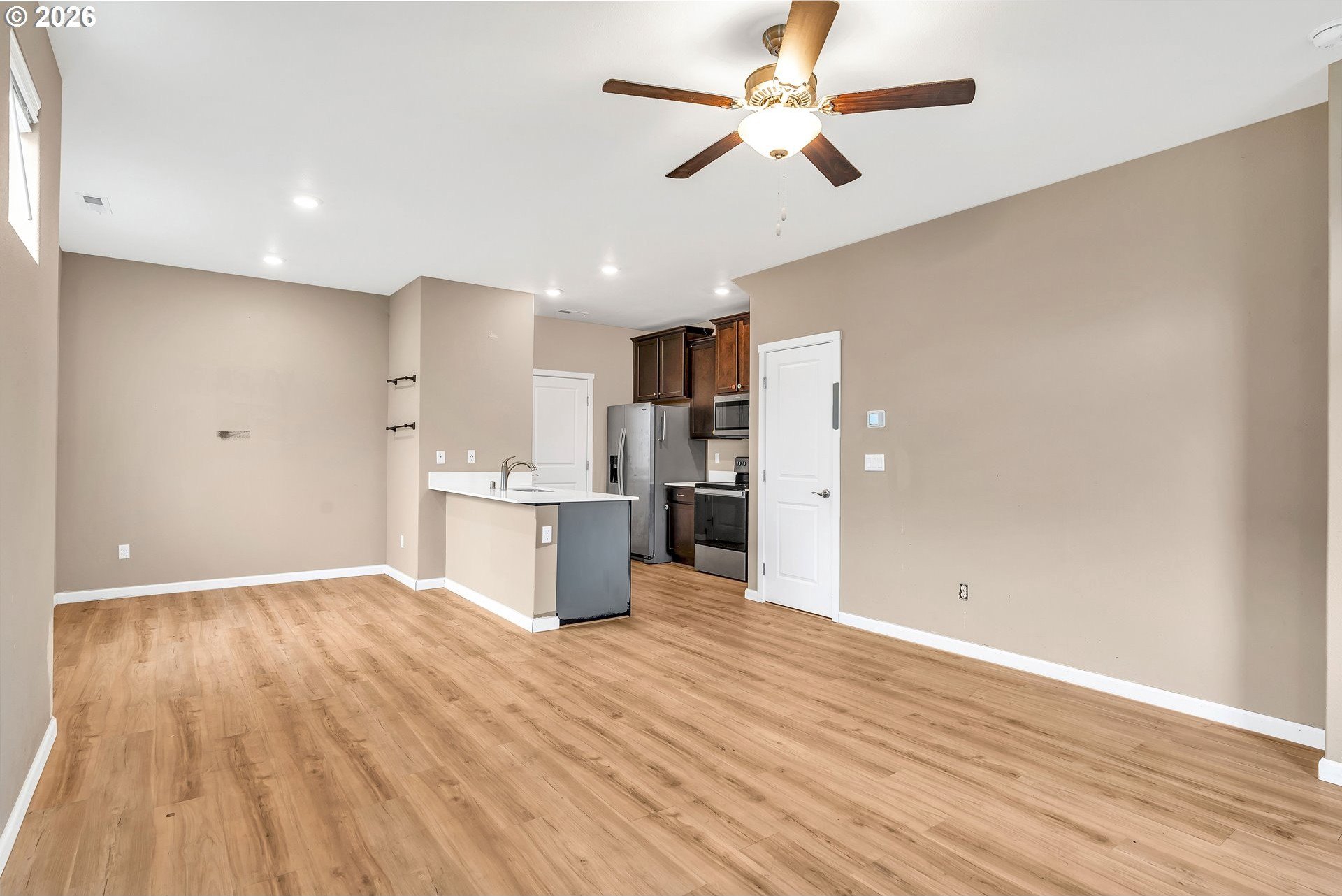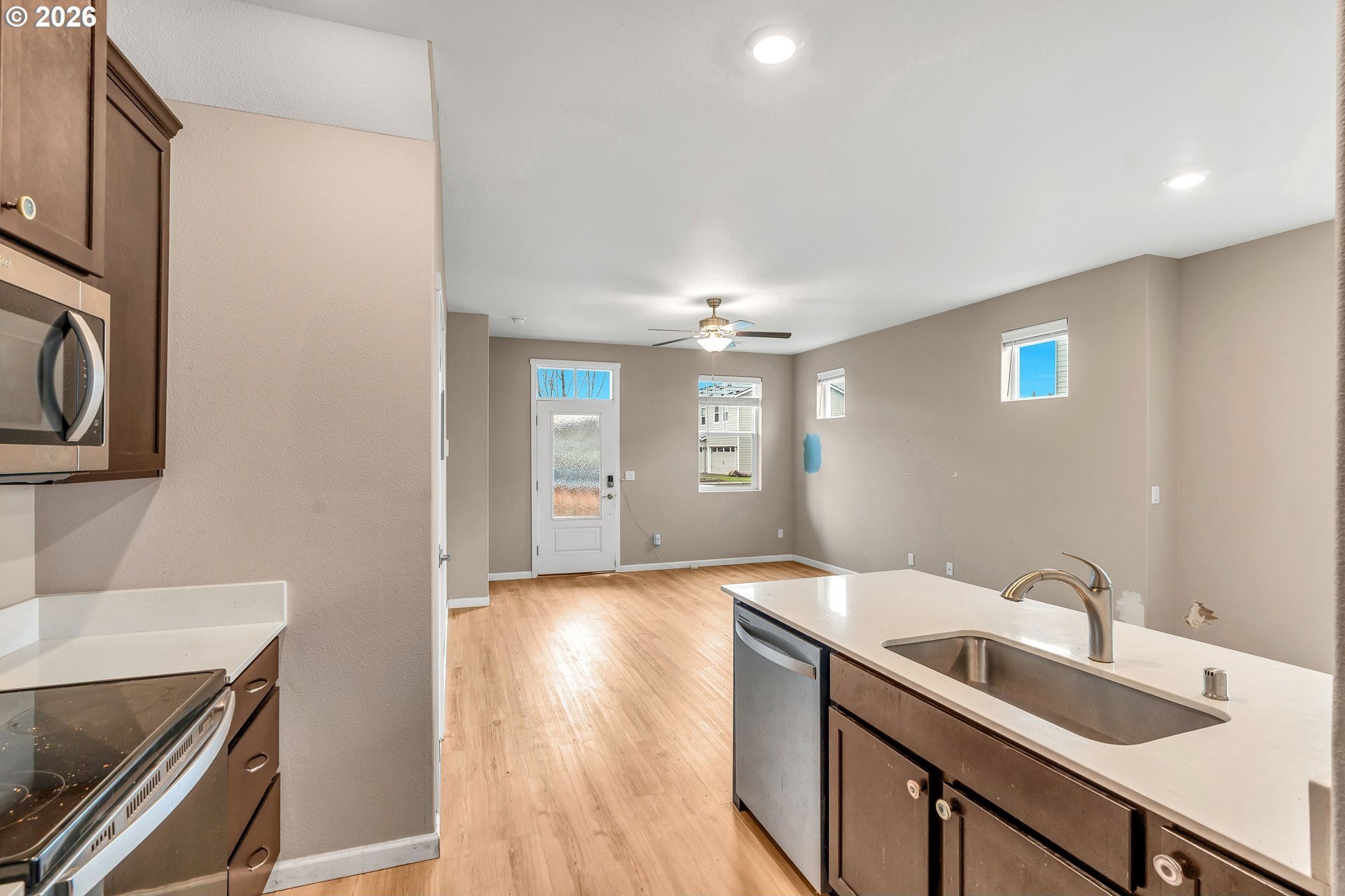 This beautifully designed 2-level townhome offers 3 bedrooms and 2.5 bathrooms with a layout built for modern living. The main floor features modern plank flooring throughout an open entertaining space, including an upgraded kitchen with stainless steel Whirlpool appliances, a bright and spacious dining area, and an expansive great room perfect for gatherings.Upstairs, the private owner's suite includes a luxurious bathroom and a private balcony for relaxation. Two additional bedrooms, a second full bathroom, and a flex room provide versatile space for guests, hobbies, or a home office.Thoughtfully designed for comfort and style, this townhome combines functional living spaces, elegant finishes, and plenty of natural light, making it a perfect place to call home.