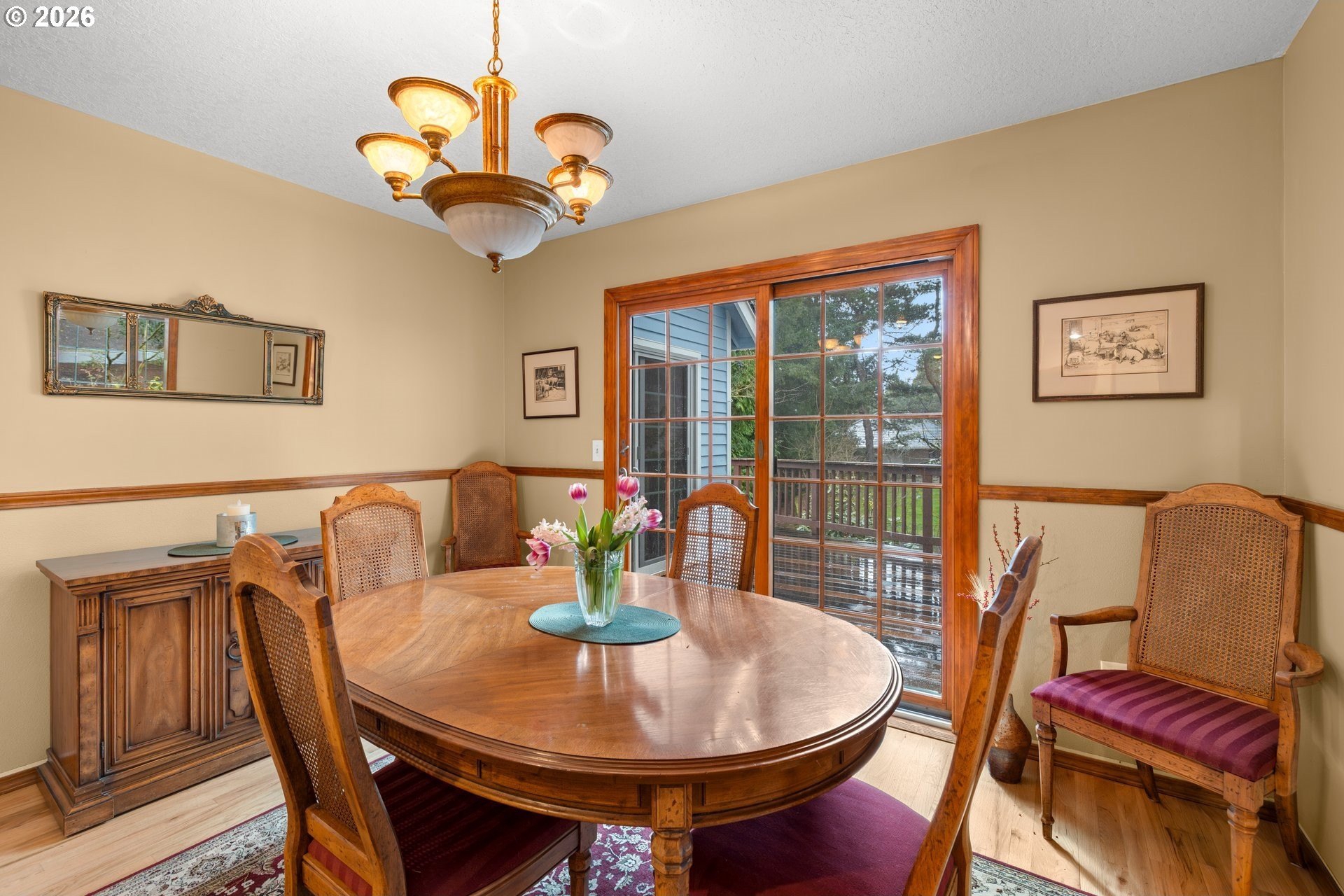 Fantastic Sunnyhill Location! This inviting 4-bedroom home offers a highly desirable layout with the primary suite conveniently located on the main level, complete with a walk-in closet. The vaulted living room features stunning cathedral windows that fill the space with natural light, creating an open and airy feel. A dedicated dining room adds flexibility for gatherings and everyday meals. The kitchen includes an eat-in bar and opens to a cozy family room with a fireplace-perfect for relaxed evenings. Three sliders on the main level lead to an expansive deck, making indoor-outdoor entertaining effortless. Downstairs, you'll find three additional bedrooms, a full bathroom with double vanities, a bonus room with slider access to the backyard, and a separate laundry room. Recent updates include a new CertainTeed roof (2024), a new furnace, and new AC (approx. 5 years old). The easy-care yard and extended property line beyond the back trees offer both convenience and privacy. Located nearby the Lake Oswego Recreation & Aquatic Center, shopping, dining, schools, and freeway access. Low yearly HOA. This home combines comfort, convenience, and an exceptional location-truly a wonderful place to call home.