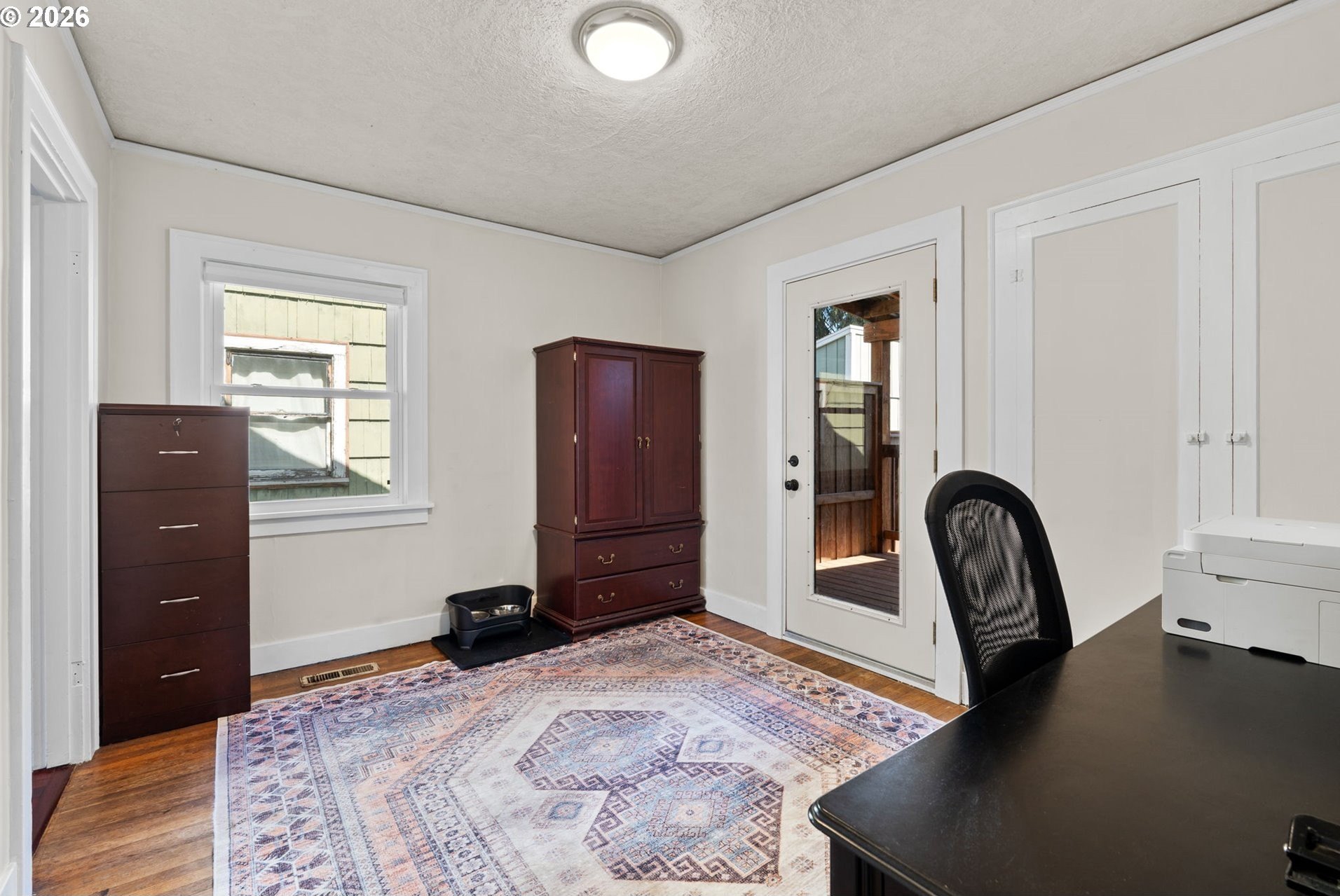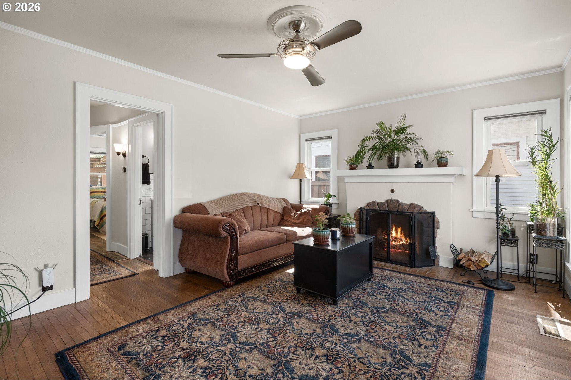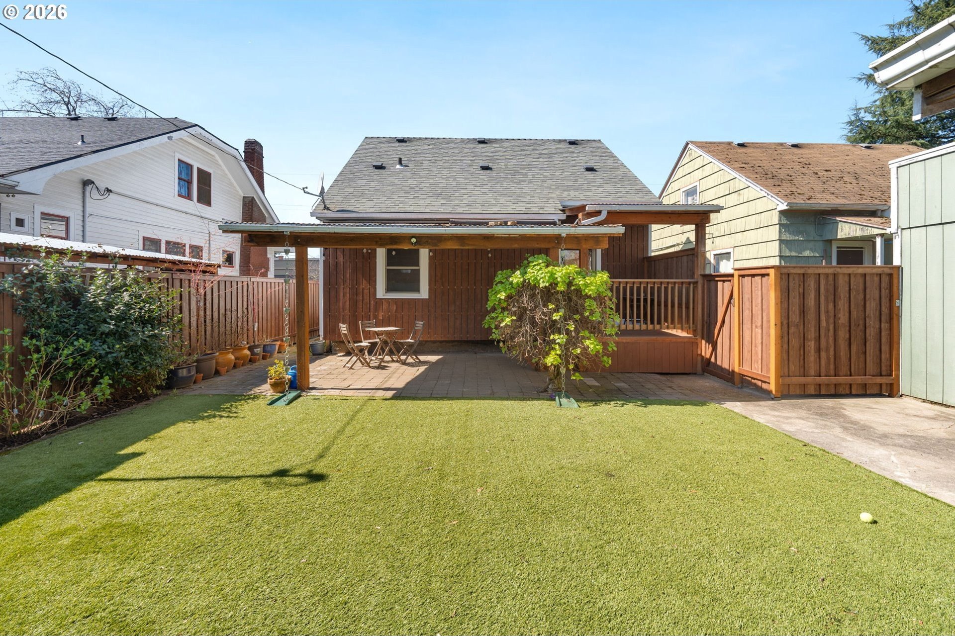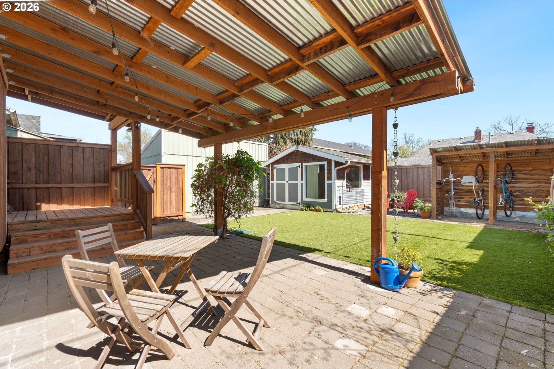 Set on a residential stretch of North Albina, this 1930 English-style home blends timeless character with thoughtful updates. Original details are increasingly rare, and here they shine- Abundant natural light streams from oversized windows. Hardwood floors span the main level, a classic wood-burning fireplace anchors the living space, and built-ins in the dining room add warmth and architectural interest.With four bedrooms across two levels, the layout offers flexibility for various living arrangements. Upstairs, the primary suite features new LVP flooring and a walk-in closet. Both bathrooms have been tastefully updated, including a remodeled main bath with classic subway tile and a tiled lower-level bath with a walk-in shower.The kitchen is remodeled with granite tile countertops and new stainless steel appliances. Cherry wood cabinets and flooring. The full finished basemen is complete with slate tile flooring-provides additional living space ideal for a bonus room, office, or creative studio. A dedicated laundry room adds everyday convenience.Outdoors, a private fenced backyard creates a peaceful retreat, with a deck and covered patio extending your living space year-round. A shop/shed and bike storage add functionality and appeal and the no-maintenance turf yard stays green all year round. With strong bones, enduring style, and room to personalize, this is a home that invites both comfort and possibility. Open Saturday 10-12.