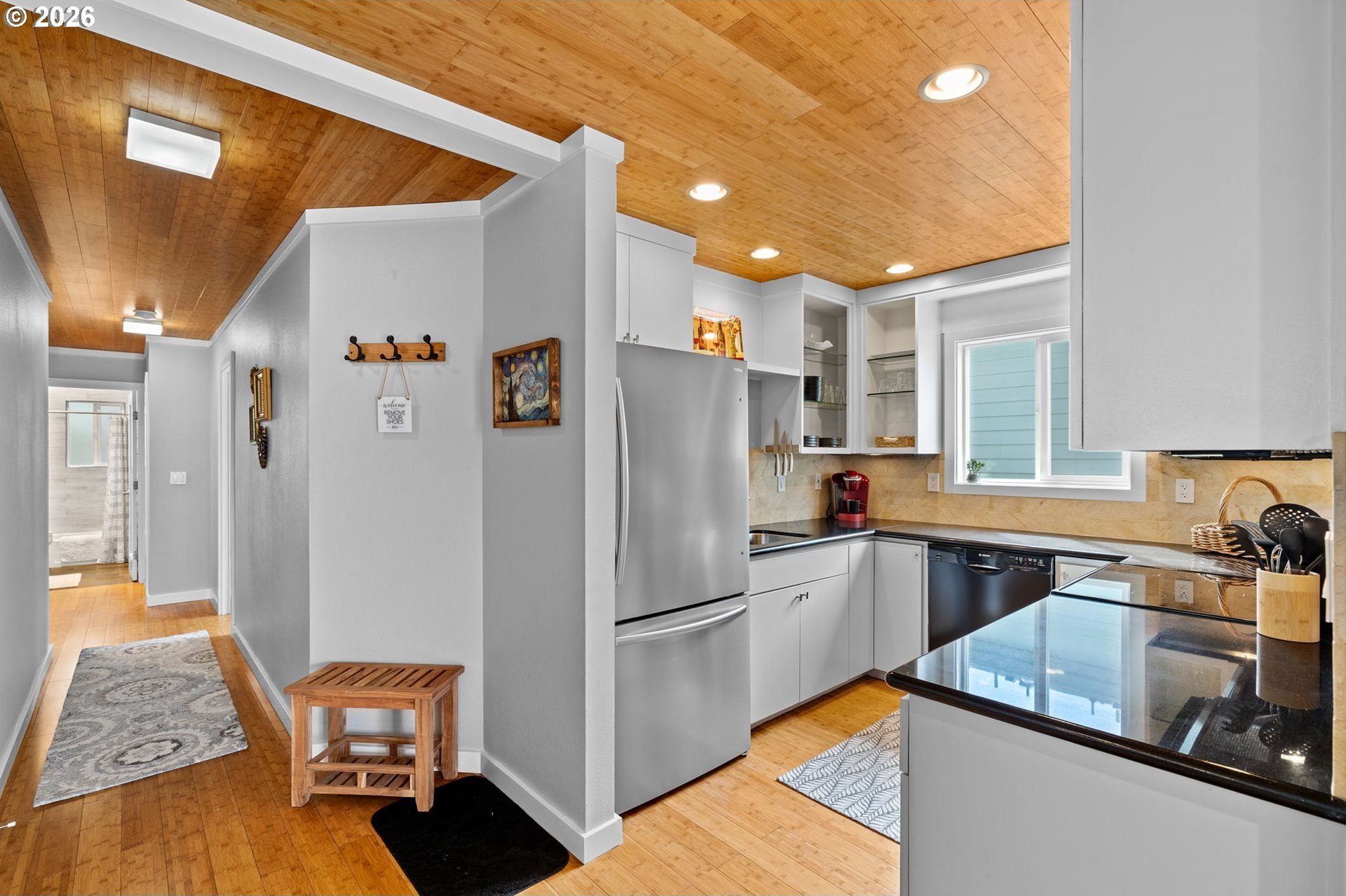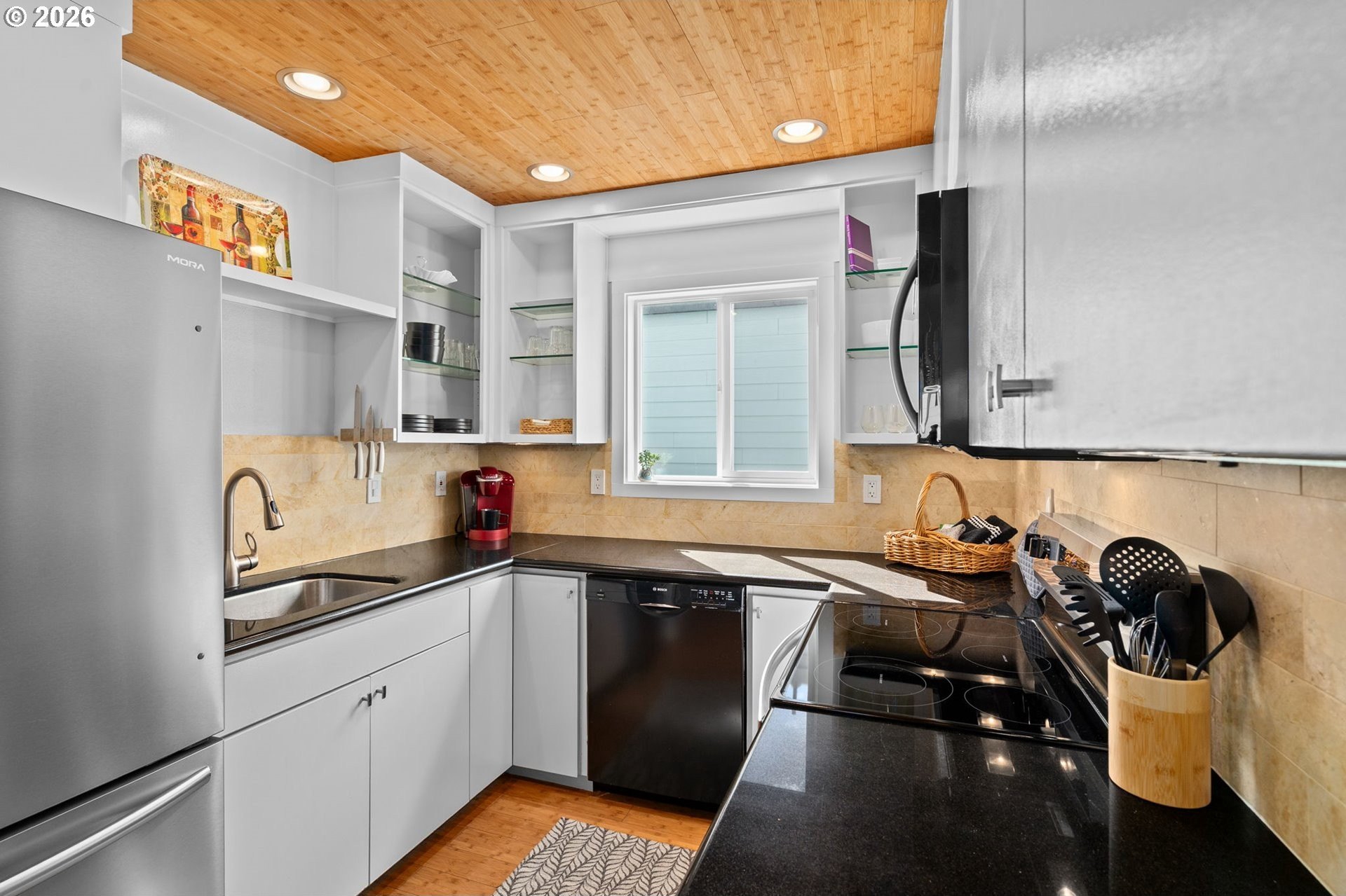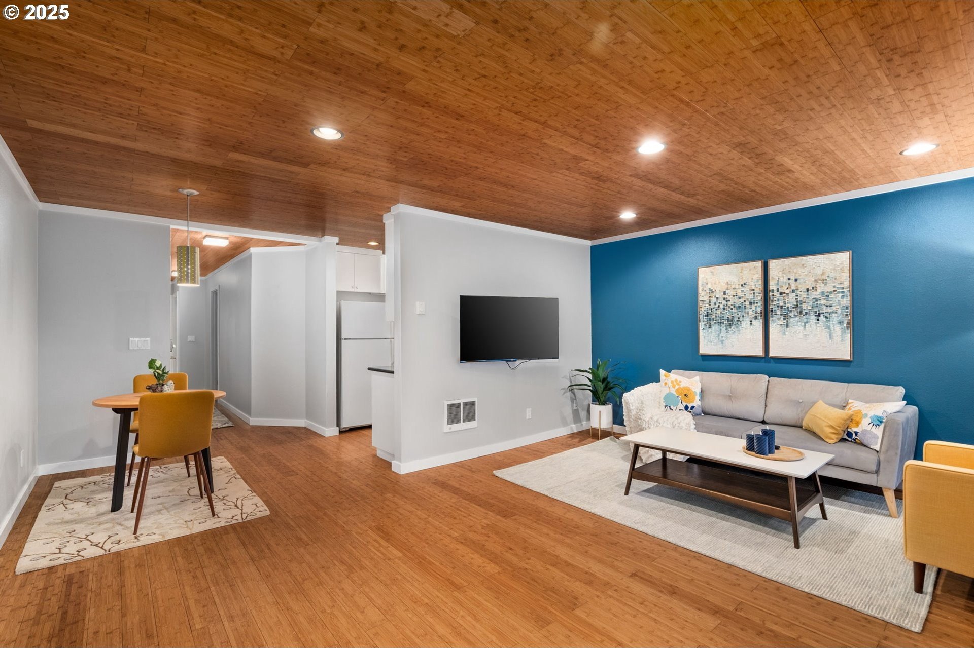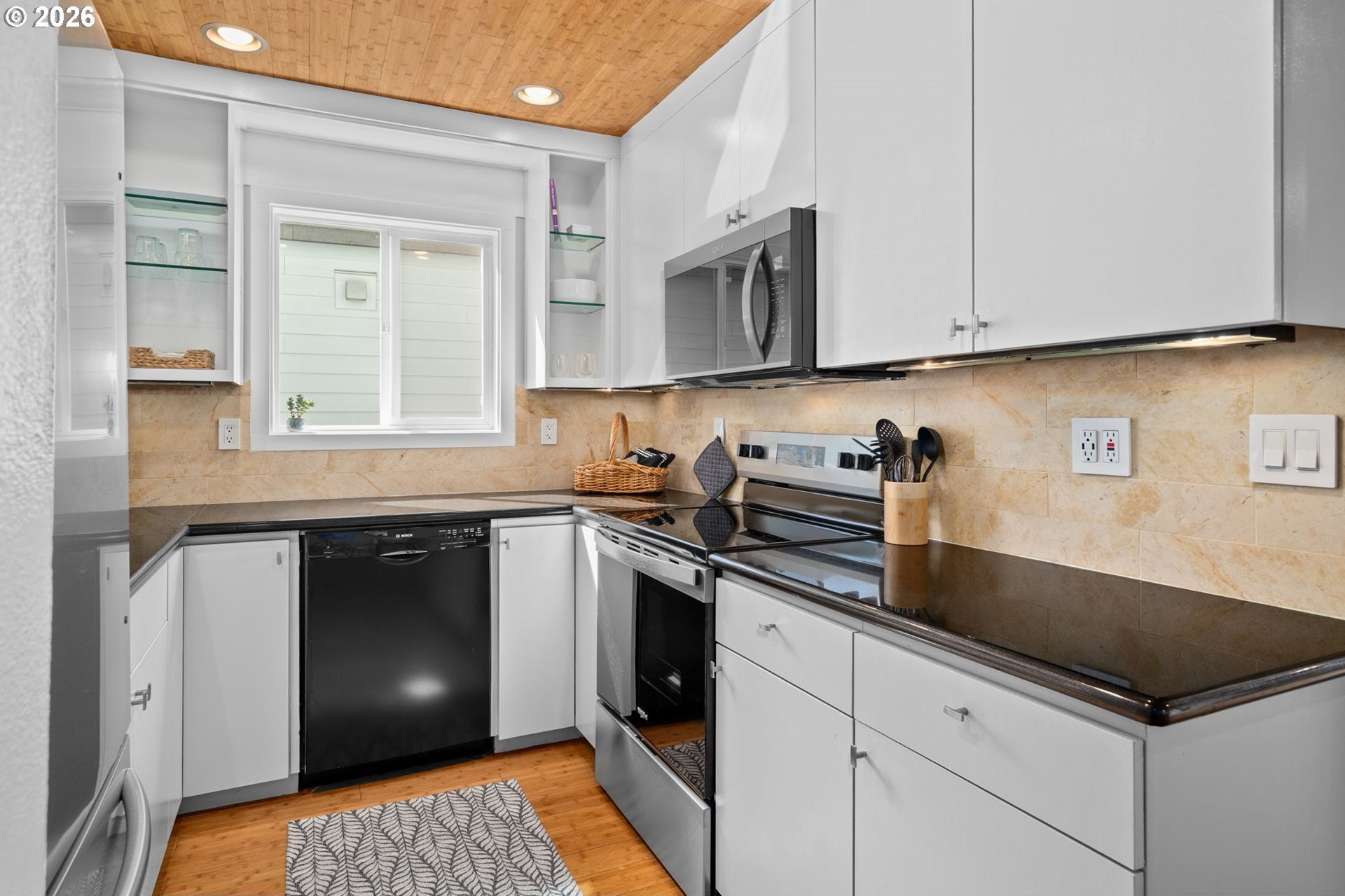 Back on market with a sharp new look-Rare opportunity in historic Rose City Park featuring beautiful West Hills views, deeded parking, and secure keyless building entry. Thoughtfully updated and move-in ready, this light-filled home showcases a new bath tile surround and new appliances, blending modern style with mid-century-inspired charm in a boutique building. Seller credit available to be applied toward an interest rate buydown. Extensively updated with a detailed improvements list available, including recent kitchen, bath, and system upgrades, this home reflects true pride of ownership. The layout extends to a covered balcony with storage-perfect for relaxing or entertaining. The HOA covers water, sewer, trash, exterior maintenance & insurance, hot water and landscaping, offering exceptional value. All newer furnishings are negotiable, making this an ideal pied-a-terre or turnkey retreat. Located minutes from cafes, grocery stores, food carts, restaurants, parks, and neighborhood amenities, this home combines the charm of tree-lined streets with everyday convenience. Pet-friendly (up to two allowed), with no rental cap. Walk Score 85, Bike Score 87.
