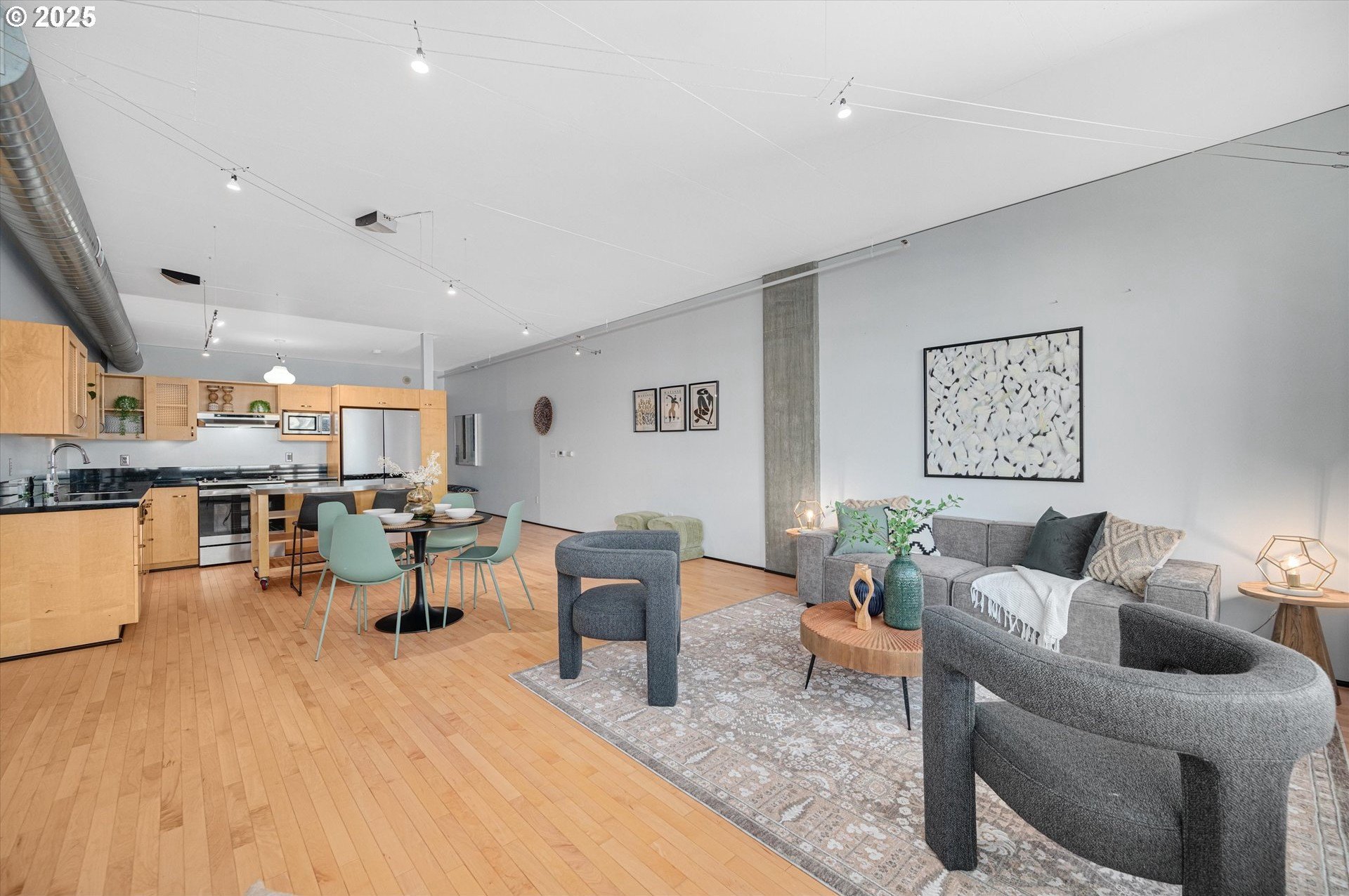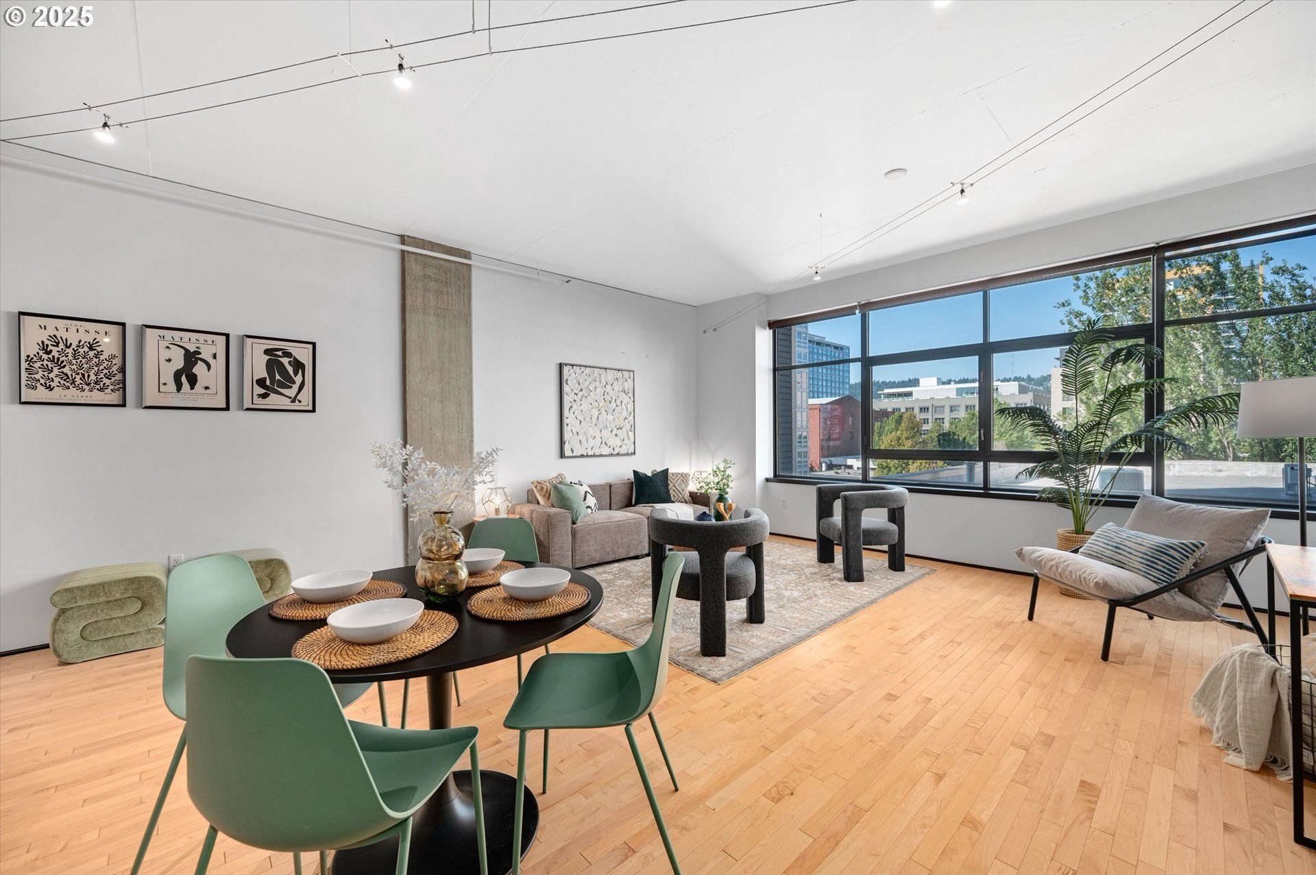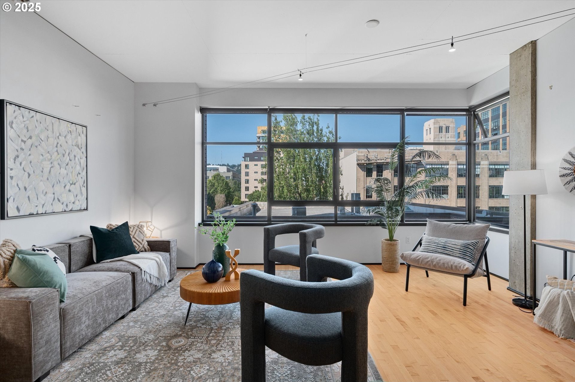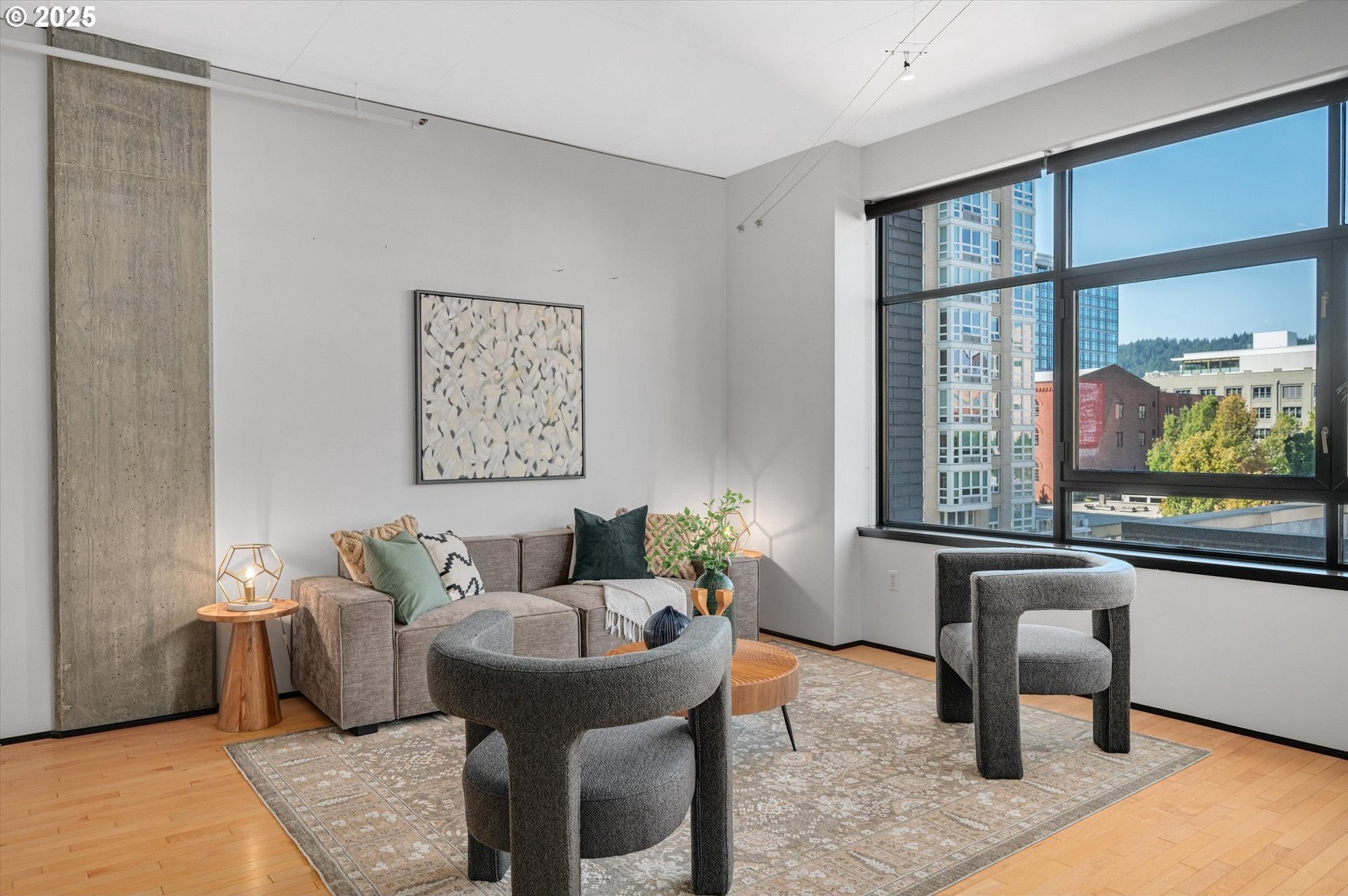 **Unsurpassable value and price** Elevate your lifestyle with this contemporary gem nestled in the heart of the Pearl District. Welcome to an elegant Elizabeth Lofts condo, spanning 1,176 SF and offering the opportunity to make it your own versatile urban haven. Enjoy expansive, 180 degrees of city and West Hills views and indulge in a seamless blend of luxury, entertainment, cultural richness and unparalleled convenience. Immerse yourself in the vibrant energy of the Pearl District, explore boutique shops and savor gourmet meals at nearby restaurants. This condo isn't just a residence, it's a canvas for your lifestyle. Key Features: * Spectacular City and West Hills Views: Embrace the cityscape from every angle, creating a breathtaking backdrop for your urban retreat.* Open-Concept Living: The spacious open floor plan with high ceilings, exposed concrete elements, large living and dining space sets the stage for modern living, with a versatile layout.* Gourmet Kitchen: The sleek kitchen with stainless steel appliances and kitchen island is perfect for culinary enthusiasts, creating a stylish space for cooking and entertaining.*2 Bedrooms: Take advantage of the unique and the only two bedroom layout in the building, providing flexibility to suit your evolving needs.* Bathroom with two sinks. Amenities:* Secure building and convenience of 24/7 concierge services, adding an extra layer of security and luxury to your daily life. * Community room with kitchen, library, bbq and bathroom opens up to a beautiful plaza with trees and historical columns. * Upgrades: New fridge, electric range, dishwasher, washer and dryer. Parking P-216.