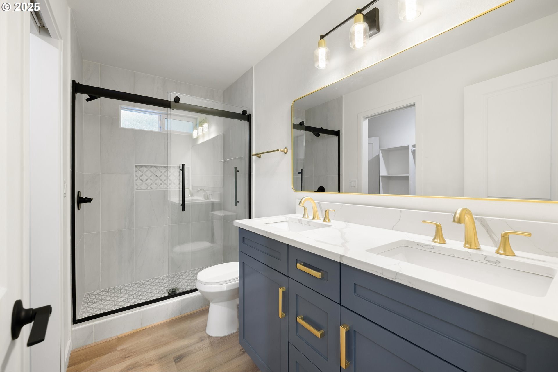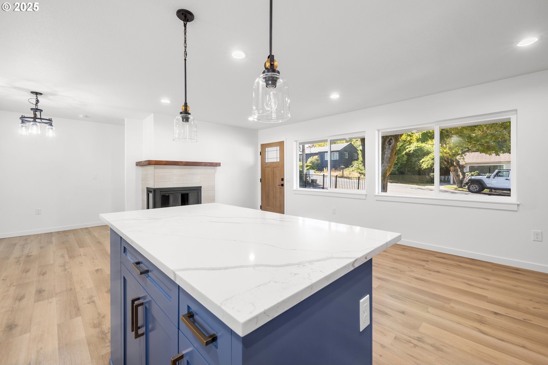 Completely Remodeled Home with Modern Elegance. Welcome to this beautifully remodeled home where no detail has been overlooked. From top to bottom, every finish and feature has been thoughtfully designed to create a stylish and functional living space.Step inside to an inviting open-concept layout that seamlessly connects the living room, kitchen, and dining area, all filled with natural light. A cozy wood-burning fireplace, enhanced by a restored wood mantel, anchors the living room. Elegant wood-accented trim on the walls adds a sophisticated touch, creating a warm yet modern atmosphere. The stunning kitchen boasts sleek cabinetry, a granite-topped island, and high-end finishes-perfect for cooking and entertaining. On the main level, you'll find three spacious bedrooms, including a luxurious primary suite with a double vanity, spa-inspired shower, and generous walk-in closet. The secondary bedrooms are thoughtfully positioned on the opposite side of the home for added privacy. The lower level provides incredible flexibility, featuring a fourth bedroom or flex space, complete with its own full bathroom, custom wood trim accents, and direct garage access-ideal for multigenerational living or guest quarters. With its modern updates, quality craftsmanship, and timeless design, this home feels better than new. Don't miss the opportunity to make it yours!
