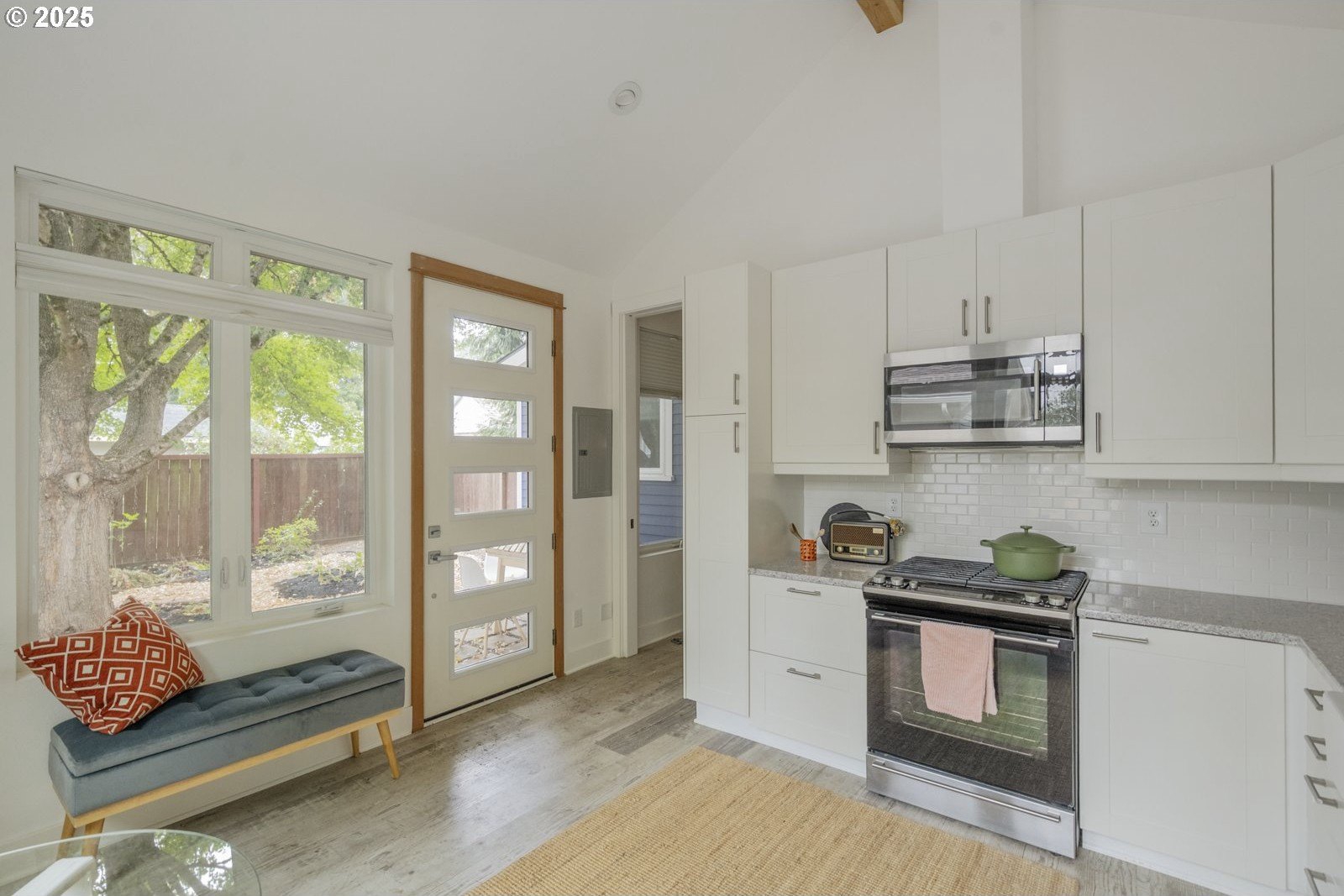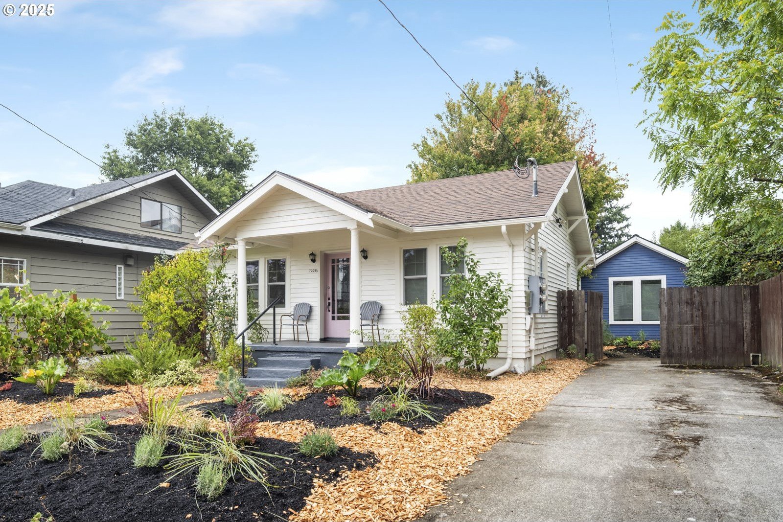 Adorable Arbor Lodge bungalow with stunning detached ADU! Step from the beautifully landscaped front yard into the warm and inviting living room, with open views into the eat-in kitchen. Two spacious bedrooms, a comfortable bathroom, and a large unfinished basement for storage or future potential additional living space make this a comfortable place to call home! Updated systems like a newer furnace (2016) and hot water heater (2024) give you peace of mind. The detached ADU is a showstopper, with soaring ceilings, oversized windows, a spacious kitchen, radiant floor heating, and an on-demand hot water heater. Fully permitted and constructed in 2017 with no SDC short term rental restriction, this space can be a real money maker! Create your dream small compound with your tribe, live in one unit and rent the other, or invest in this hot location, less than two miles from the University of Portland campus, with a walk score of 82 and a bike score of 99! Seller is licensed Principal Broker in Oregon. [Home Energy Score = 7. HES Report at https://rpt.greenbuildingregistry.com/hes/OR10188969]