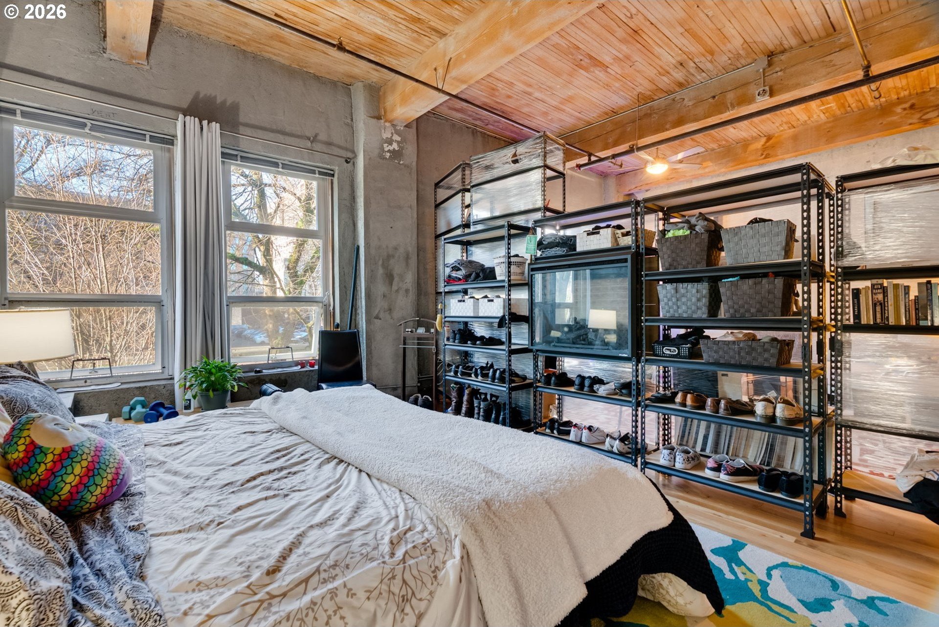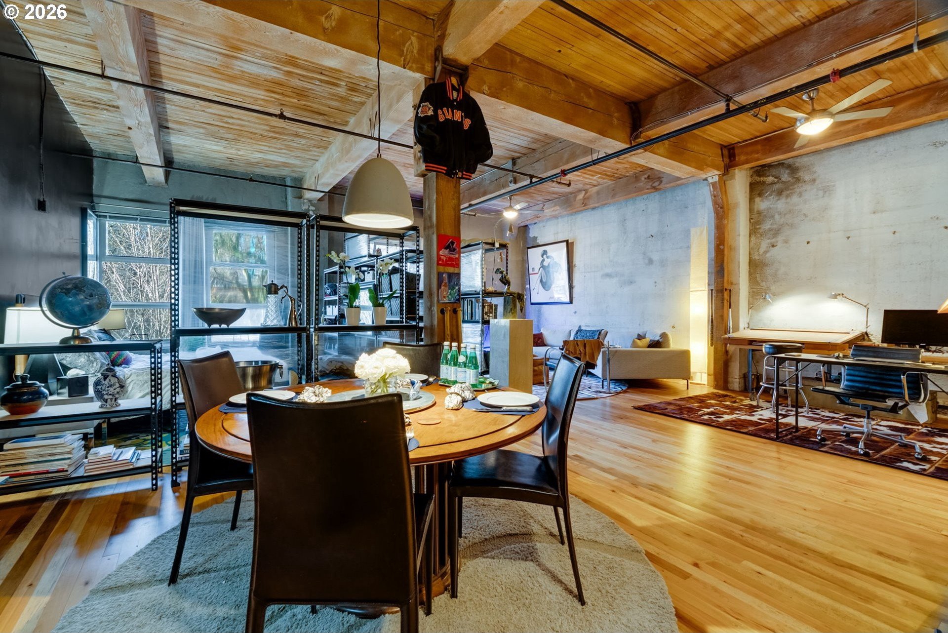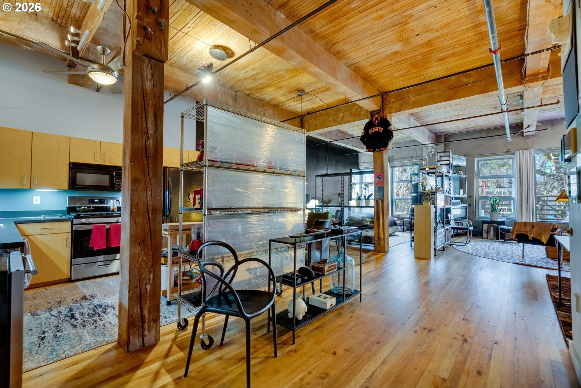 Set within the iconic Flanders Lofts, this vintage loft captures the essence of the Pearl District: timeless, creative, and effortlessly cool. Morning light filters through tall park-facing windows, catching the exposed timber beams and concrete details that give the space its unmistakable industrial soul. Step onto the private patio and you're greeted by the greenery of the Park Blocks and the quiet rhythm of the neighborhood unfolding below.Inside, soaring ceilings and an open-concept layout create a sense of freedom and flexibility. Think refined live/work setup, a gallery-like living environment, or a welcoming place to gather friends for an evening of good food and conversation. The chef's kitchen is made for hosting, while the spa-like bath with a deep Japanese soaking tub offers a moment of retreat at the end of the day.Living here means the best of Portland is always within reach, yet never intrusive. Coffee around the corner. A wine bar after work. First Thursday strolls through nearby galleries. World-class dining, boutiques, markets, and events just steps away. Walk downtown, bike across the city, hop on MAX, or pull into your deeded garage parking when needed. The city becomes an extension of your living room.This is urban living with intention-where sophistication replaces stress, and access replaces excess. A home that honors Portland's industrial past while offering the flexibility and ease of modern city life. Whether you're building something new, working creatively, or simply savoring the energy of the Pearl, this loft offers a rare balance of vibrancy and refuge, right where you want to be.