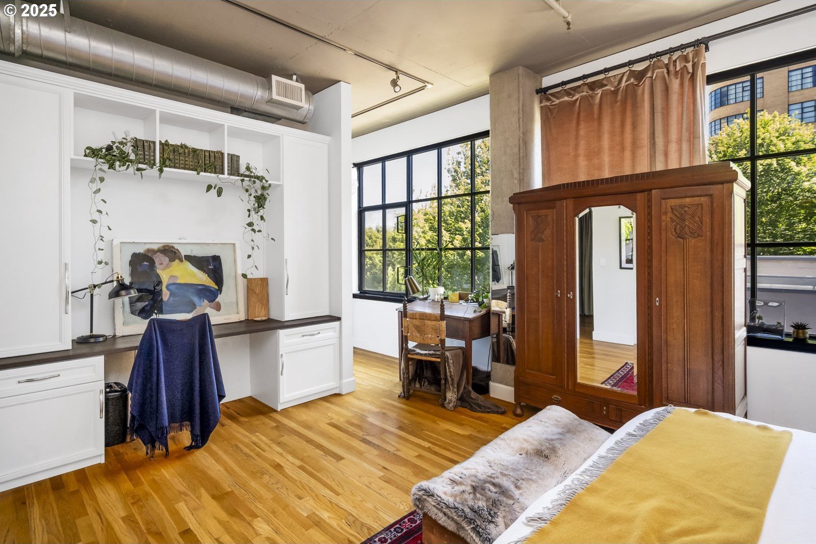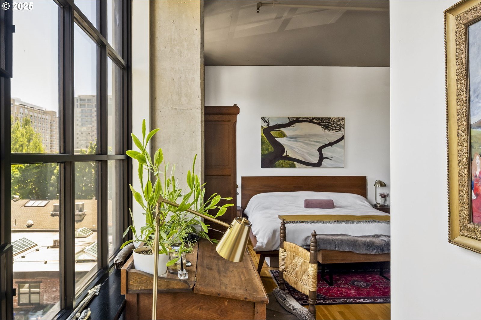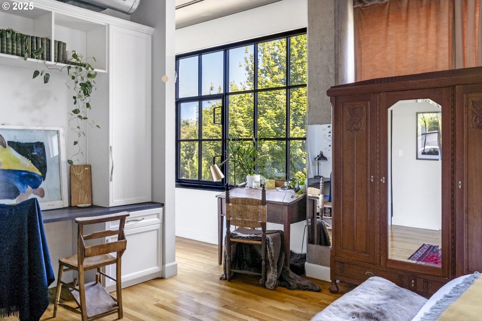 Peaceful Perch Above The Pearl! Have you ever wanted the best of both worlds—a home with boundless opportunities right outside your door that also feels tranquil and serene? If so, this is the condo for you! Leaving the bustling city below, step into this gorgeous 1 bedroom, 2 bath home, and find a quiet sense of ease. With soaring ceilings and expansive double paned widows, the space is wrapped in warm natural light even on those bluesy winter days. The thoughtful layout offers open, airy living with hardwood floors underfoot and the sounds of the city filtered to a whisper—it’s not just quiet, it’s remarkably quiet! A Murphy bed in the living room provides a lovely option for guests and discreetly folds away, freeing up your living space for entertaining. The spacious kitchen feels so inviting and provides a gorgeous space to whip up all your delicious dishes. When you’re ready for coffee in the morning, or something bubbly in the evening, a private balcony gives you a front-row seat to a cinematic city view—a peaceful perch while the city hums below. Ready for a good night’s sleep? Dream of what tomorrow holds in the large and graceful bedroom, complete with ensuite bathroom and built-ins. And, when you’re ready to rejoin the rhythm of the city, just step outside and enjoy the First Thursday Artwalk, a show at The Armory (a stunning historic theater venue), the urban oasis of Tanner Springs Park, and countless amazing restaurants and cafes, all within a few blocks! To make life that much easier, there is also in-unit laundry, attached garage parking, and a dedicated on site storage unit. Come home to the calm and live in the light at this distinctive and absolutely lovely Pearl District condo, a place where you can feel connected, yet completely at peace.