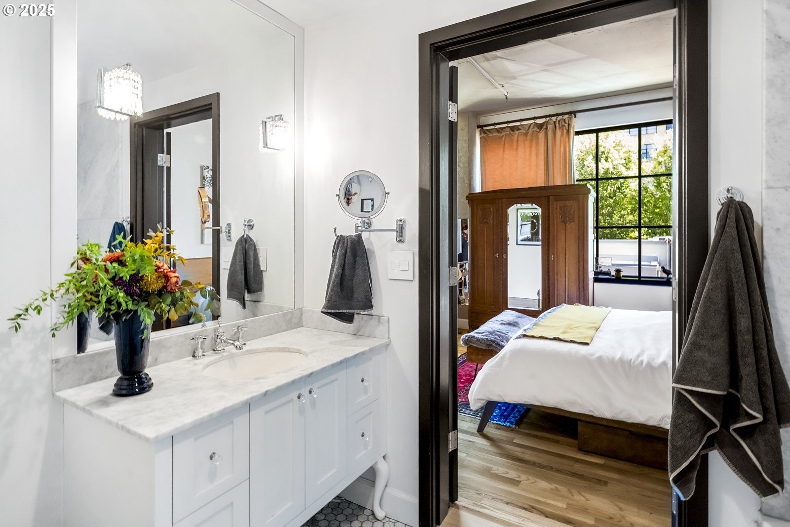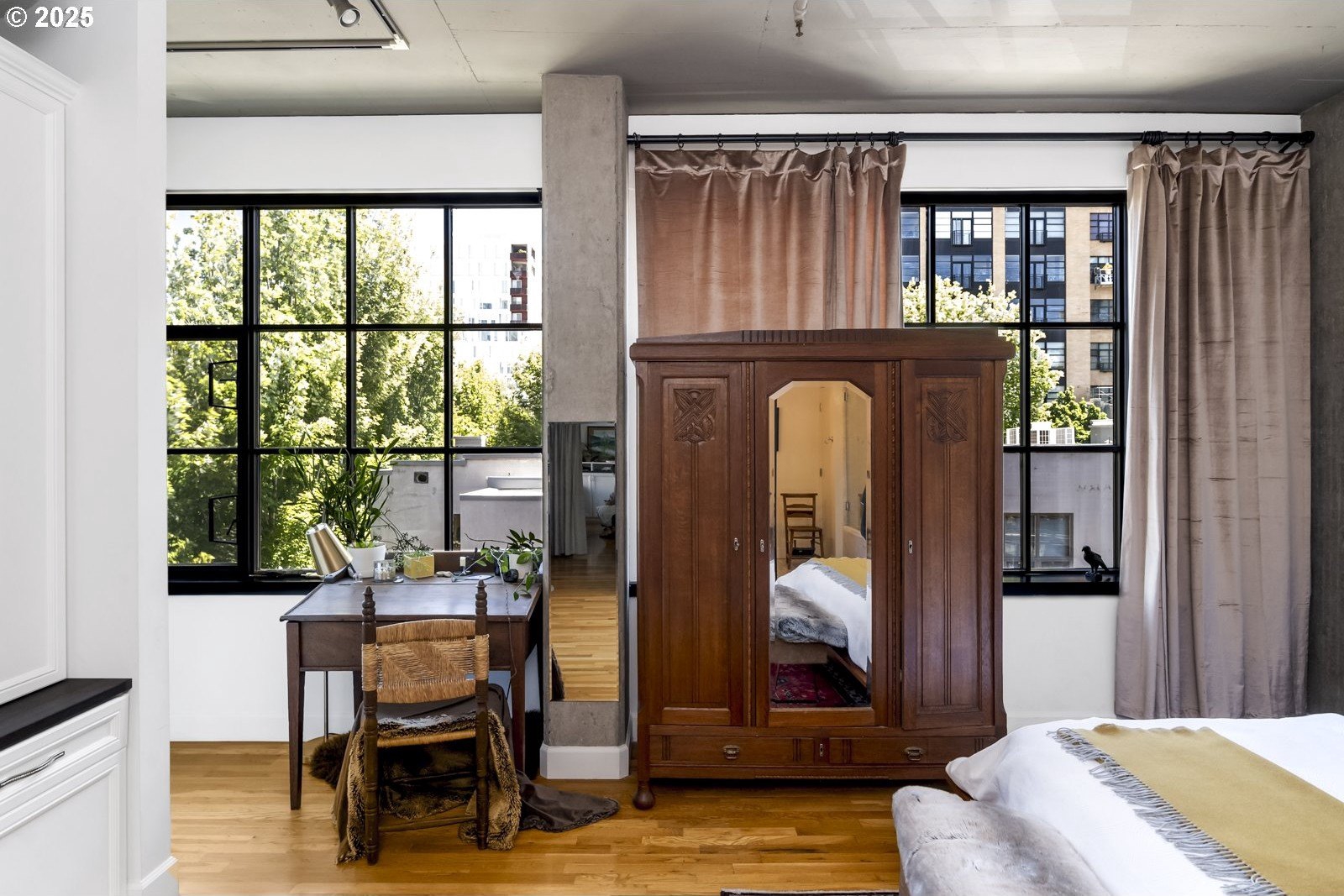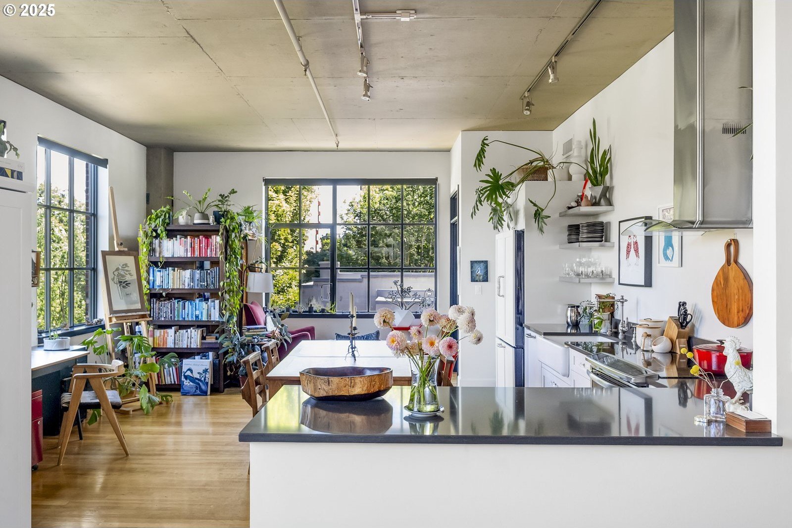 Peaceful Perch Above The Pearl! Have you ever wanted the best of both worlds—a home with boundless opportunities right outside your door that also feels tranquil and serene? If so, this is the condo for you! Leaving the bustling city below, step into this gorgeous 1 bedroom, 2 bath home, and find a quiet sense of ease. With soaring ceilings and expansive double paned widows, the space is wrapped in warm natural light even on those bluesy winter days. The thoughtful layout offers open, airy living with hardwood floors underfoot and the sounds of the city filtered to a whisper—it’s not just quiet, it’s remarkably quiet! A Murphy bed in the living room provides a lovely option for guests and discreetly folds away, freeing up your living space for entertaining. The spacious kitchen feels so inviting and provides a gorgeous space to whip up all your delicious dishes. When you’re ready for coffee in the morning, or something bubbly in the evening, a private balcony gives you a front-row seat to a cinematic city view—a peaceful perch while the city hums below. Ready for a good night’s sleep? Dream of what tomorrow holds in the large and graceful bedroom, complete with ensuite bathroom and built-ins. And, when you’re ready to rejoin the rhythm of the city, just step outside and enjoy the First Thursday Artwalk, a show at The Armory (a stunning historic theater venue), the urban oasis of Tanner Springs Park, and countless amazing restaurants and cafes, all within a few blocks! To make life that much easier, there is also in-unit laundry, attached garage parking, and a dedicated on site storage unit. Come home to the calm and live in the light at this distinctive and absolutely lovely Pearl District condo, a place where you can feel connected, yet completely at peace.
