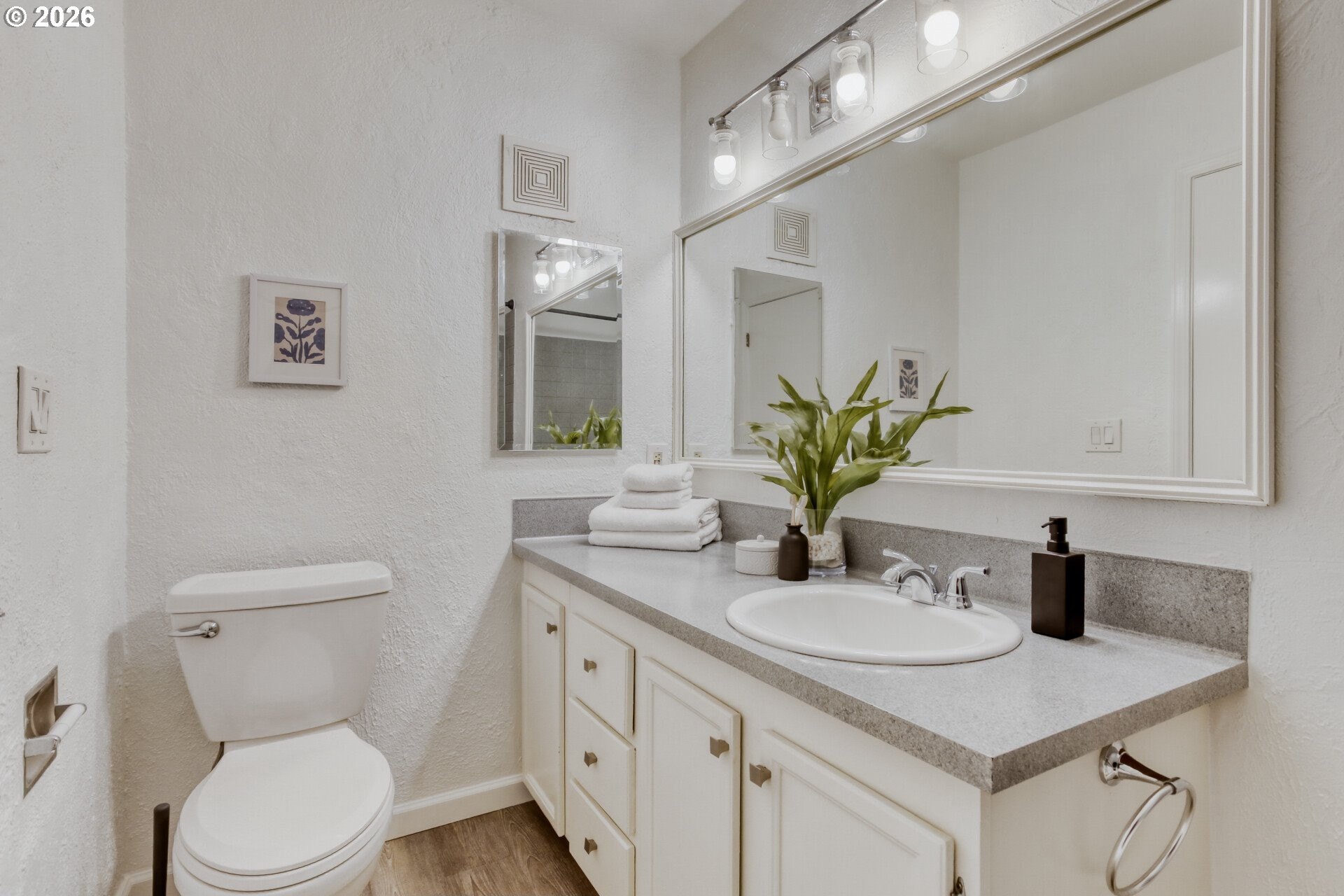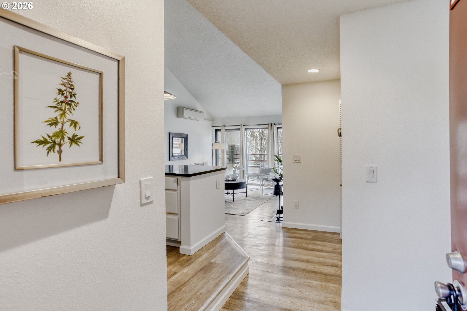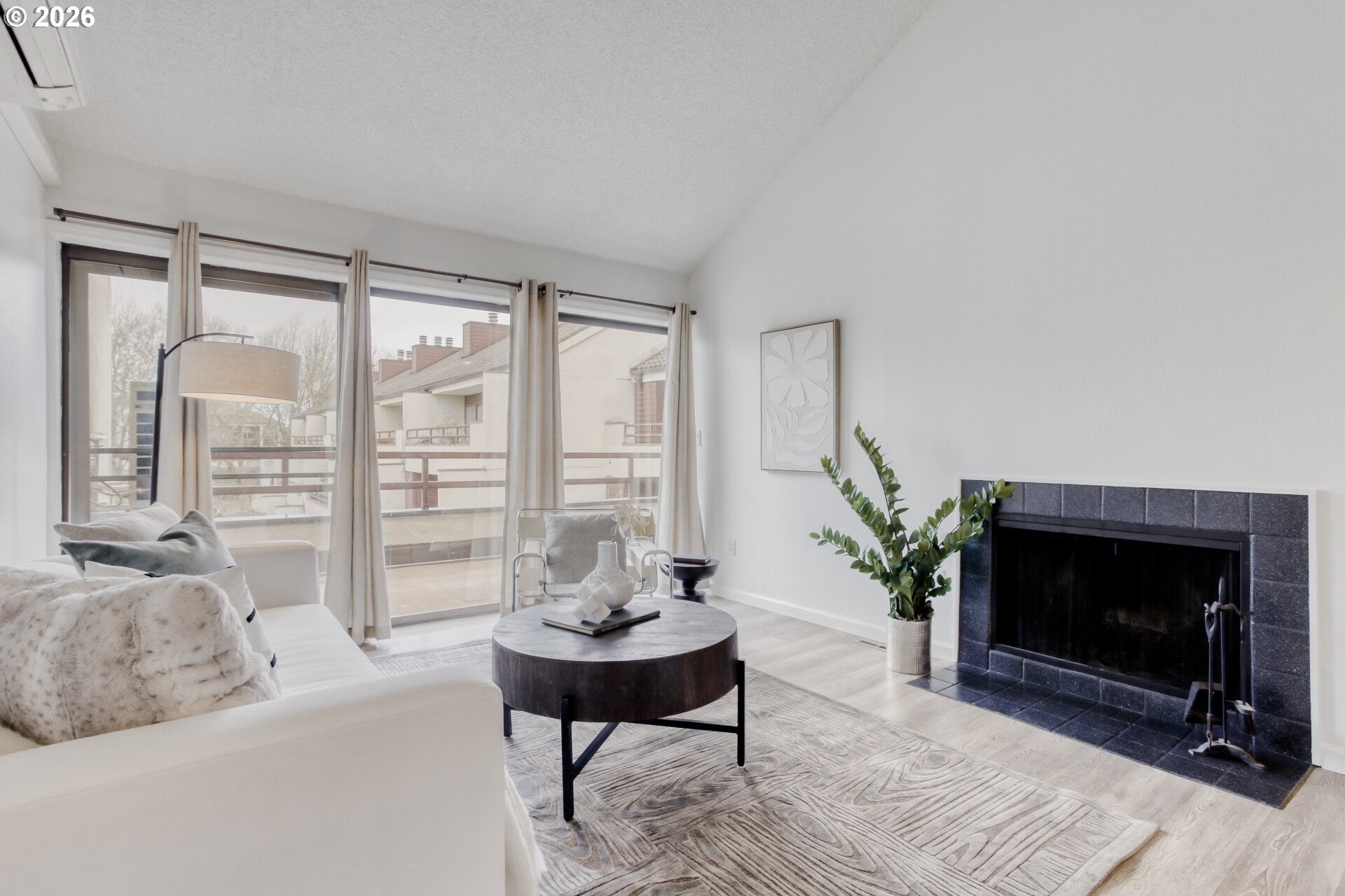 Experience riverfront living at The Landing Condominiums in Portland's sought-after John's Landing neighborhood. This renovated, single-level top-floor condo offers a bright, open layout with soaring ceilings, modern finishes and seamless indoor-outdoor living. Just minutes from downtown, OHSU, Macadam dining and shopping and miles of riverfront trails. The freshly painted interior features an updated kitchen with quartz countertops, classic subway tile backsplash, stainless steel appliances and an eat-bar that opens effortlessly to the living and dining areas. The living room is anchored by a wood-burning fireplace and oversized sliding glass doors that flood the space with natural light and lead out to a spacious private balcony with views of the Willamette River surrounding grounds. The bedroom is a calm retreat with direct balcony access and generous closet storage. Luxury vinyl plank flooring runs throughout the home, complemented by a mini-split heating and cooling system for year-round comfort. Additional highlights include in-unit laundry, a deeded covered carport parking space elevator access. Enjoy resort-style amenities including a pool, hot tub and sauna, with HOA dues covering water, sewer and garbage/recycling. With no rental cap, this home also presents a fantastic investment opportunity. Ideally located near the Willamette Greenway, public transportation including bus lines and the streetcar and the vibrant John's Landing and South Waterfront areas; this move-in-ready condo offers the perfect blend of comfort, convenience and riverfront lifestyle.