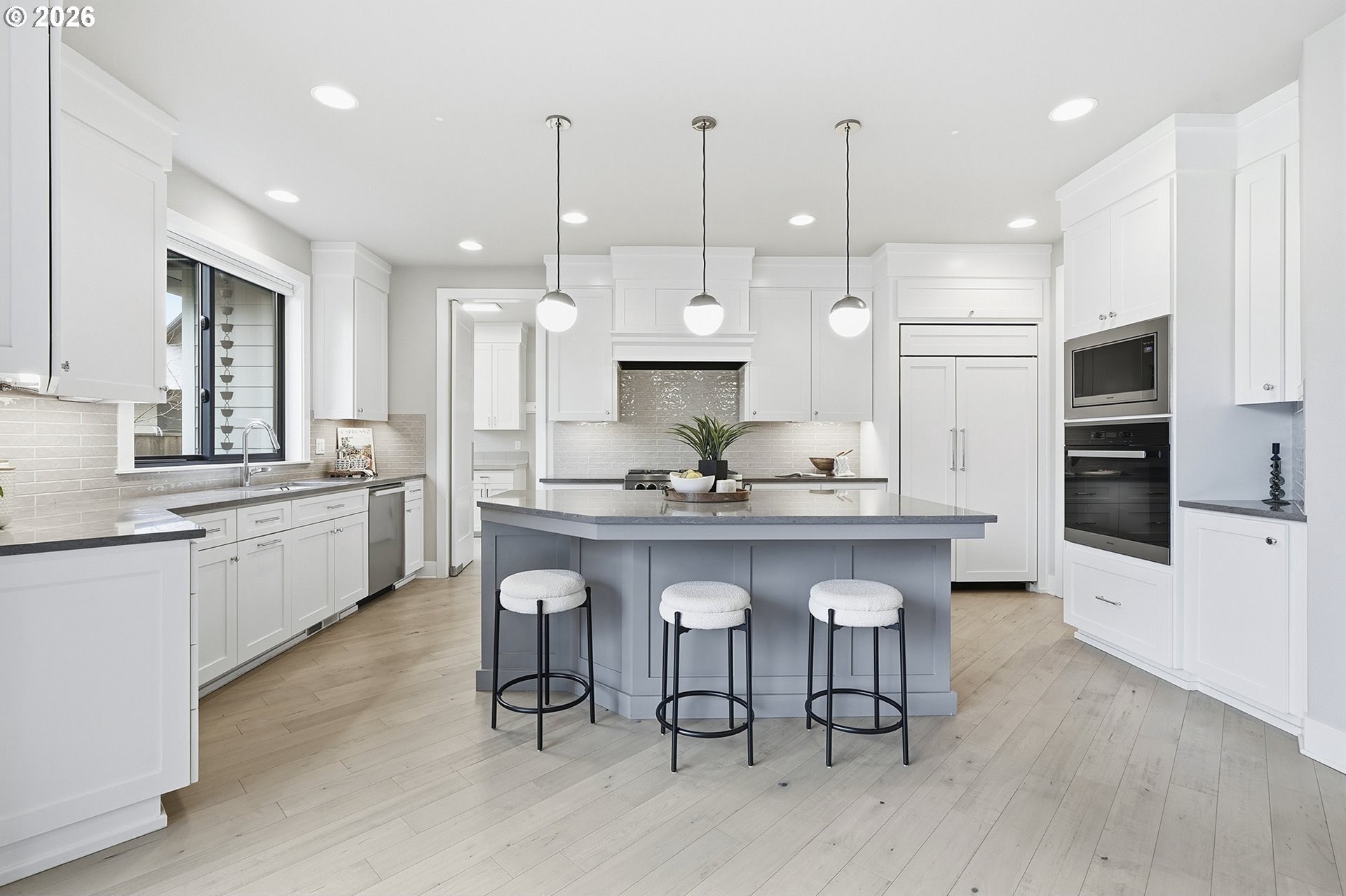 Stunning 5 bed|3.5 bath home by Schollander Development located in the heart of Lake Grove with three Oswego Lake easements. Light and bright floor plan features soaring ceilings, extensive wood flooring, designer fixtures, and exceptional craftsmanship throughout. The primary suite on the main offers a luxurious spa-like ensuite, complemented by a dedicated office on the main with custom built-ins. Chef's kitchen with premium finishes opens to a covered walk-out patio and flat, fenced backyard with firepit, ideal for entertaining. Upstairs includes three additional bedrooms, one ensuite, a large bonus room, and walk-in closets throughout, offering abundant storage and flexible living space. Prime location just blocks to Zupan's, La Provence, dining, shopping, and the Lake Grove Village Center with ongoing main-street improvements. Close to Iron Mountain Park, Lake Grove Swim Park, and top-rated Lake Oswego School District. Easy access to I-5 and downtown Portland. A rare opportunity for luxury, space, and walkable Lake Grove living.