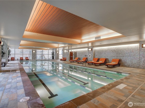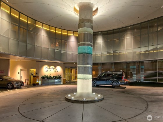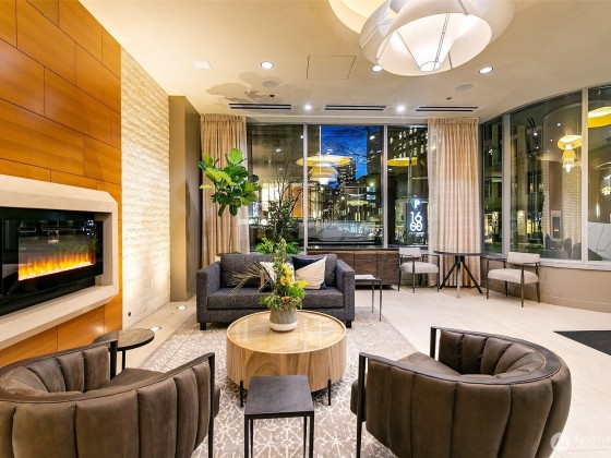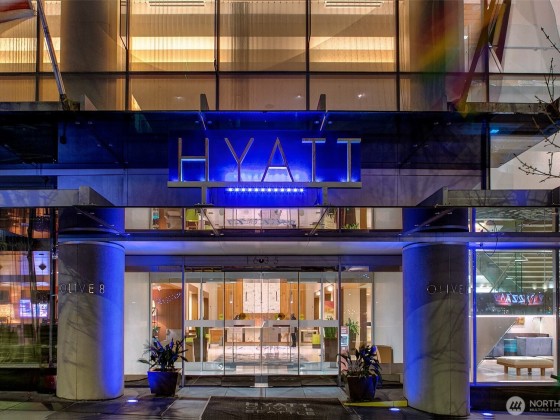 LUXURY living high above the Hyatt Hotel-Stunning 28thoor south-facing jewel, featuring walls of 10ft floor to ceiling windows. Sun drenched by day -dazzling city lights by night. Enjoy dreamy twilight views as the city comes a glow. Gorgeous custom built-ins designed for efficient living room storage. Oversized stone peninsula, Pedini kitchen cabinets, chefs kitchen w/gas cooking. Oversized primary bedroom, with large walk in closet. Premier parking space with dedicated E/V charging station. Enjoy all the benefits of living above the HYATT hotel- Access hotel pool, gym, spa, level 2. Discount to Tidal restaurant and Elia Spa. Owners lounge and dog run, level 18. 1pK/1stg. World-class location, near Amazon,light rail, I-5. NO RENT CAP.