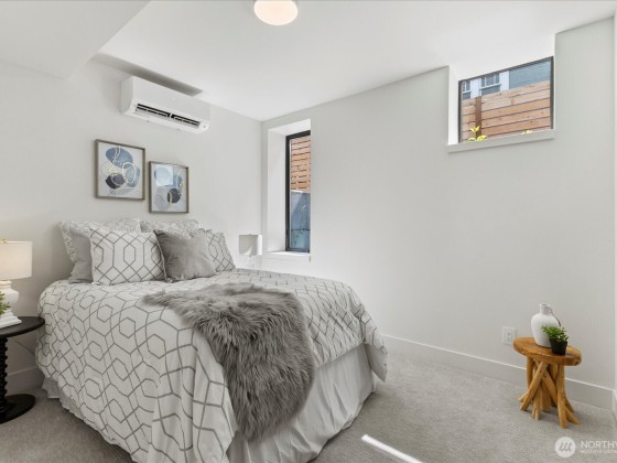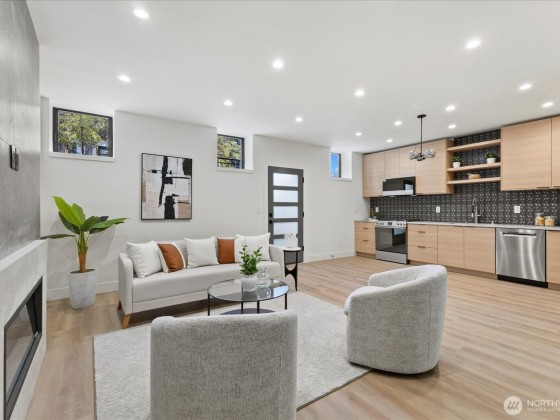 Brand new, high-quality construction on a sunny corner lot, showcasing floor-to-ceiling windows, vaulted ceilings, and rich, designer finishes. The 2,666 sq. ft. layout includes a 4 bed/3 bath main home plus a 2 bed/1 bath lower-level AADU for rental income or multigenerational living. Luxury appliances, stone slab counters, heated bathroom floors, gas fireplaces in each unit, and custom closet options create a tailored experience. Enjoy a covered deck off the great room, covered front porch, and rooftop deck with mountain and skyline views. Walking distance to parks, library, and transit. Built-in entry cabinets, abundant natural light, 6-year builder warranty, and option to purchase each unit separately.