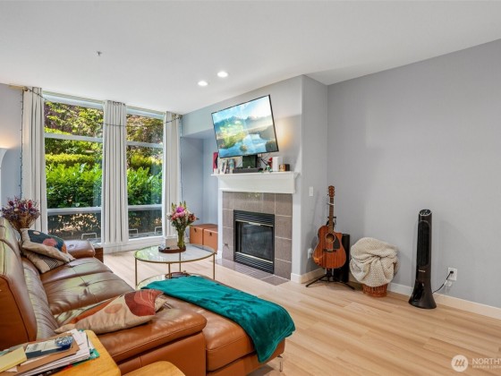 6 MONTHS OF HOA PAYMENTS TO BE PAID BY SELLER! Newly renovated garden-level condo in the award-winning Luna Court! This 2 bed, 1.5 bath home offers a private retreat with floor-to-ceiling windows surrounded by lush greenery—your own cozy hideaway. The expansive layout features a rare oversized kitchen, perfect for entertaining, and a generous primary suite with dual closets and ensuite bath. Enjoy your peaceful patio and a warm gas fireplace. Two side-by-side parking spaces in a secure, well-lit garage keep you dry rain or shine. Exceptional amenities include a top-floor fitness center, community penthouse lounge, and a panoramic balcony with breathtaking skyline and mountain views. Unbeatable location with easy access to entertainment.